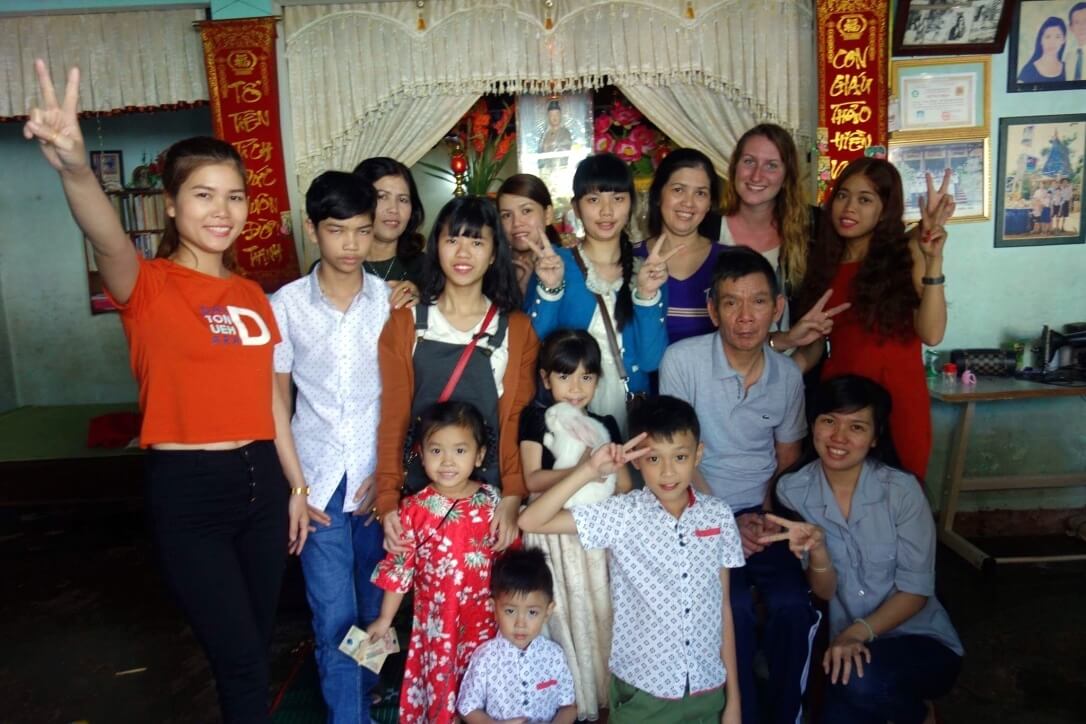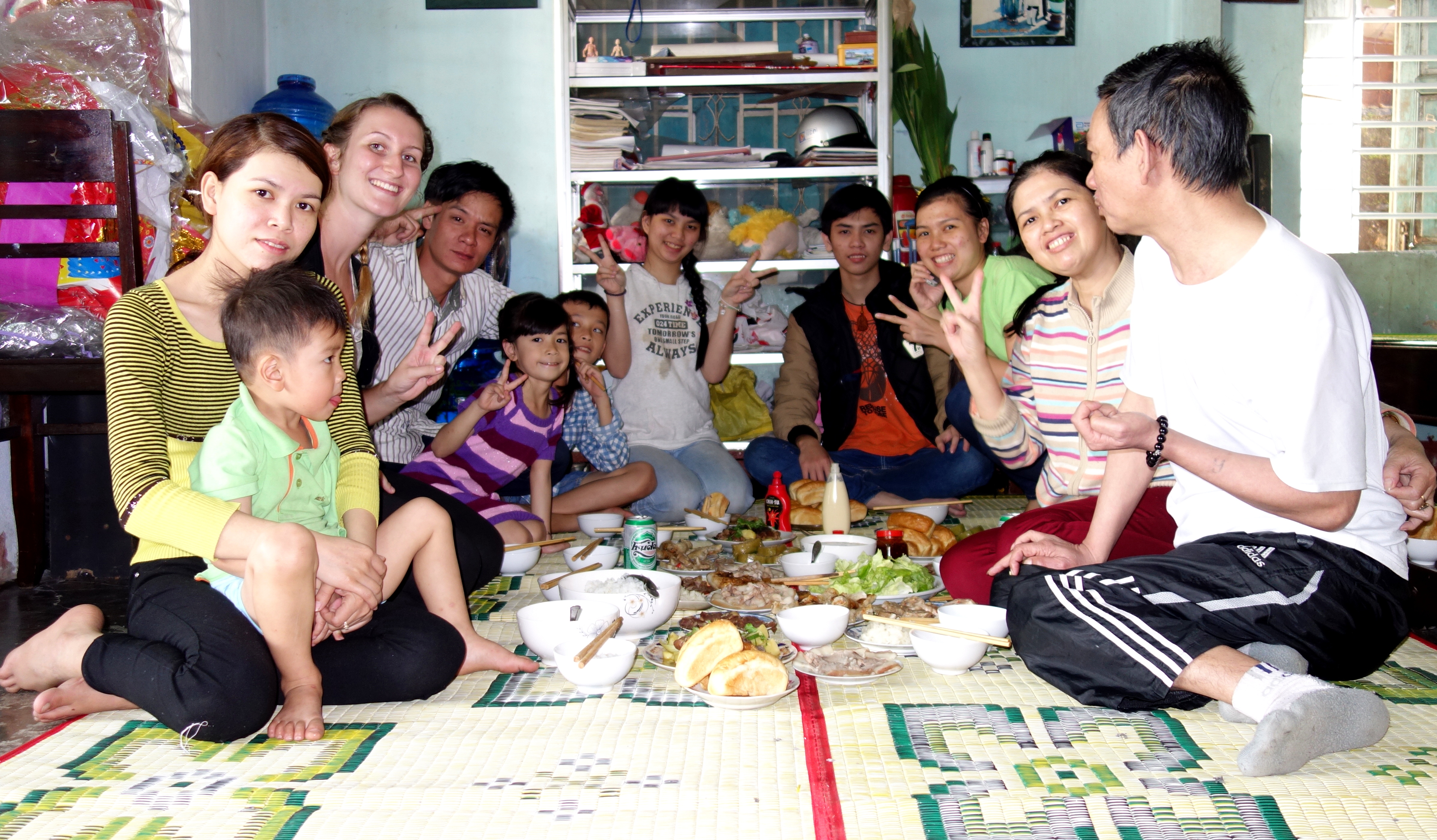 Le 27 Janvier, dernier jour de l’année lunaire, je suis invitée dans la famille de Tam. Extrêmement bien accueillie, j’ai le privilège de partager leur repas de fête. Il y a ses parents, sa sœur aînée avec son mari et leurs 3 enfants, son petit frère et sa petite sœur.