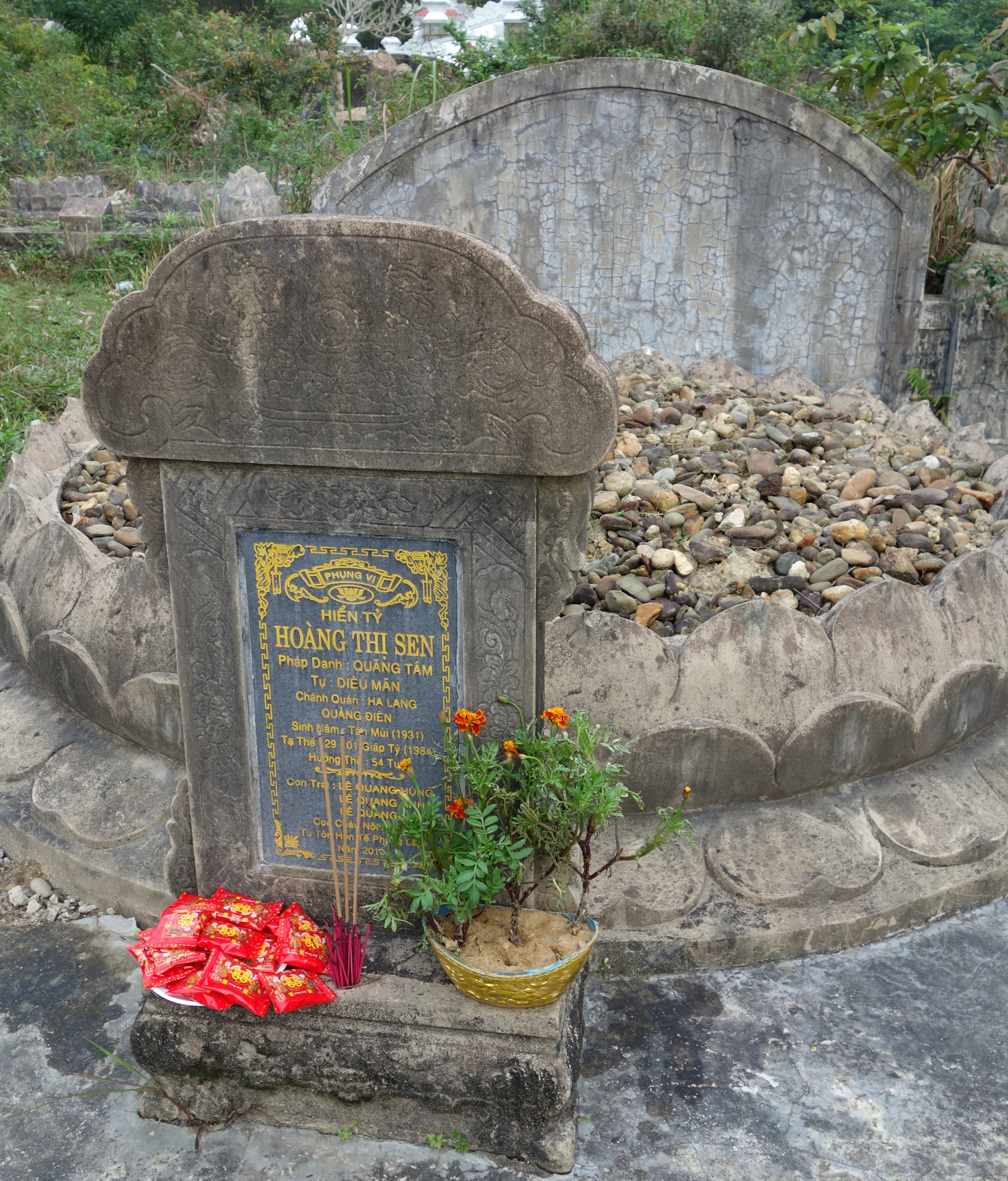 Puis j’accompagne Tam et sa petite sœur au cimetière où elles désherbent la tombe de leur grand-père et celles de leurs frères jumeaux décédés à la naissance. Elles allument ensuite de l’encens et en mettent sur toutes les tombes, pas uniquement celles de leur famille, je trouve ça beau …