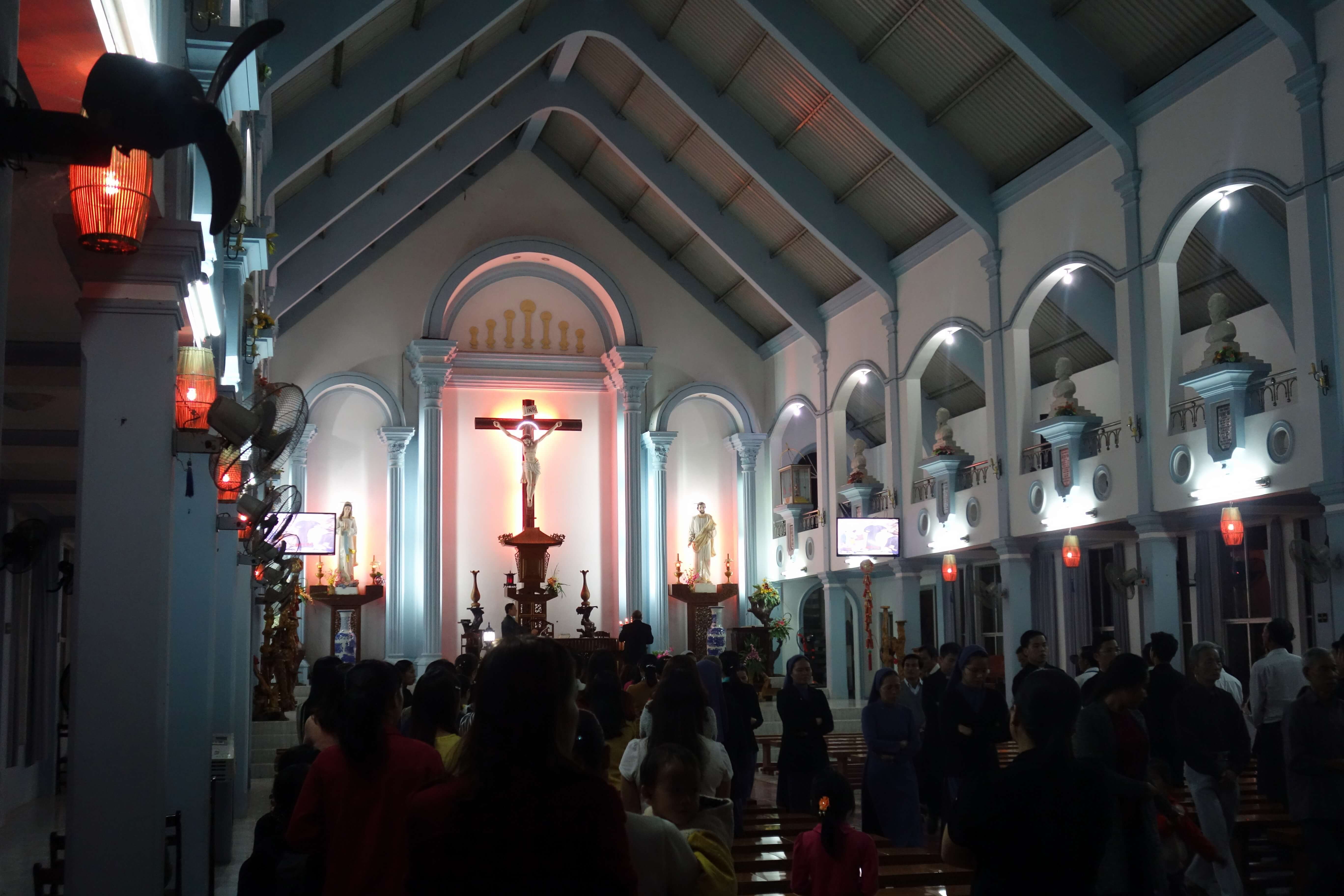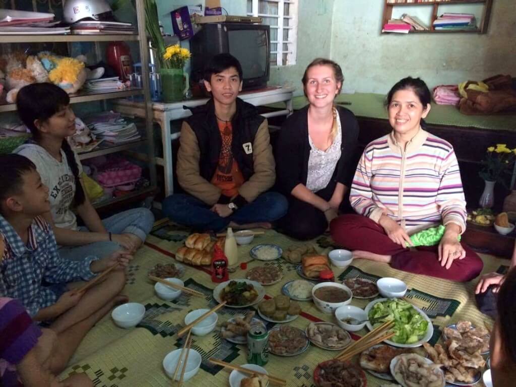 Lorsque l’on rentre chez elle, ses oncles et des amis de son père sont présents, puis, avec Giang nous partons rendre visite à son autre oncle. Tradition du Tết oblige, on fait le tour de la famille ! Nous sommes invités à rester manger et je suis gênée car ils ne me connaissent pas du tout … mais ils ont l’air ravis que je sois là. Giang sert toujours d’interprète et quand sa tante me demande quelle est ma religion, je réponds que ma famille est catholique, un sourire illumine son visage et elle me dit qu’elle aussi.