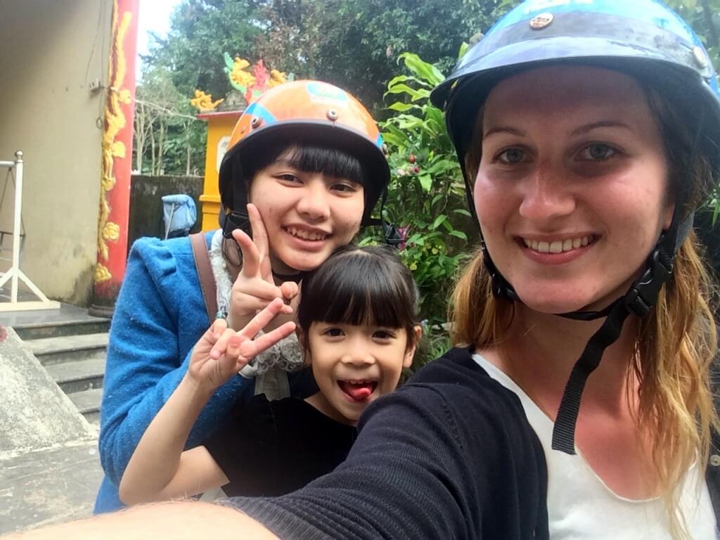 Ma prochaine destination est Dong Hoi pour rendre visite à Trin avec qui je dois travailler au Homestay. C’est à 2 heures de Dong Ha. La maman de Giang décide de m’arrêter un bus. Elle se met au bord du trottoir, face à la 2×2 voies sous son parapluie et arrête tous les bus qui passent. Certains ne vont pas au bon endroit, d’autres arrivent trop vite et doivent faire une marche arrière pour revenir à notre hauteur, certains sont déjà pleins, certains sont trop chers, pas assez bien…. à un moment donné, il y a 3 bus arrêtés en même temps ! On prend toute la largeur de la route ! (Enfin on, vous comprendrez bien que je n’avais pas mon mot à dire…). Puis, la maman me dit : celui-ci c’est bon, monte ! À peine le temps de crier un merci et un au revoir que le bus repartait sur les chapeaux de roues … Après 1 heure de route, le chauffeur s’approche de moi et me tend son portable, je ne comprends pas. Il me dit “your friend” je ne comprends toujours pas… Je dis un “allo ?” un peu sceptique. C’est Giang ! Sa maman voulait s’assurer que tout se passait bien et que j’étais dans la bonne direction. “Euuuh oui tout va bien, merci, il ne faut pas s’inquiéter j’arrive dans 1h !” Une famille adorable ! Je suis invitée à revenir quand je veux …