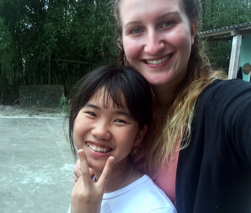 Le lendemain, je suis invitée chez Thuong et Di, deux sœurs qui vivent à la maison des affections. Je les adore ! Elles parlent bien Anglais ce qui nous permet de communiquer facilement. Après 45 minutes de route, dont la moitié au milieu des rizières, je découvre leur maison. Elle est jolie et assez grande ! Leur maman vit ici avec une de leur sœur aînée. Les deux autres sœurs habitent dans d’autres villes. Elles sont 5 filles et leur papa est décédé il y a de nombreuses années. J’aide à la préparation du repas, je défais les champignons qui sont cultivés sous une hutte dans le jardin. Des amis de sa sœur sont ici, ils sont très sympas ! Ils me proposent de jouer aux cartes avec eux, j’accepte mais ne comprends absolument rien aux règles ! Il y a de l’argent en jeu et je gagne un petit peu plus que ma mise, je ne sais pas comment c’est possible…