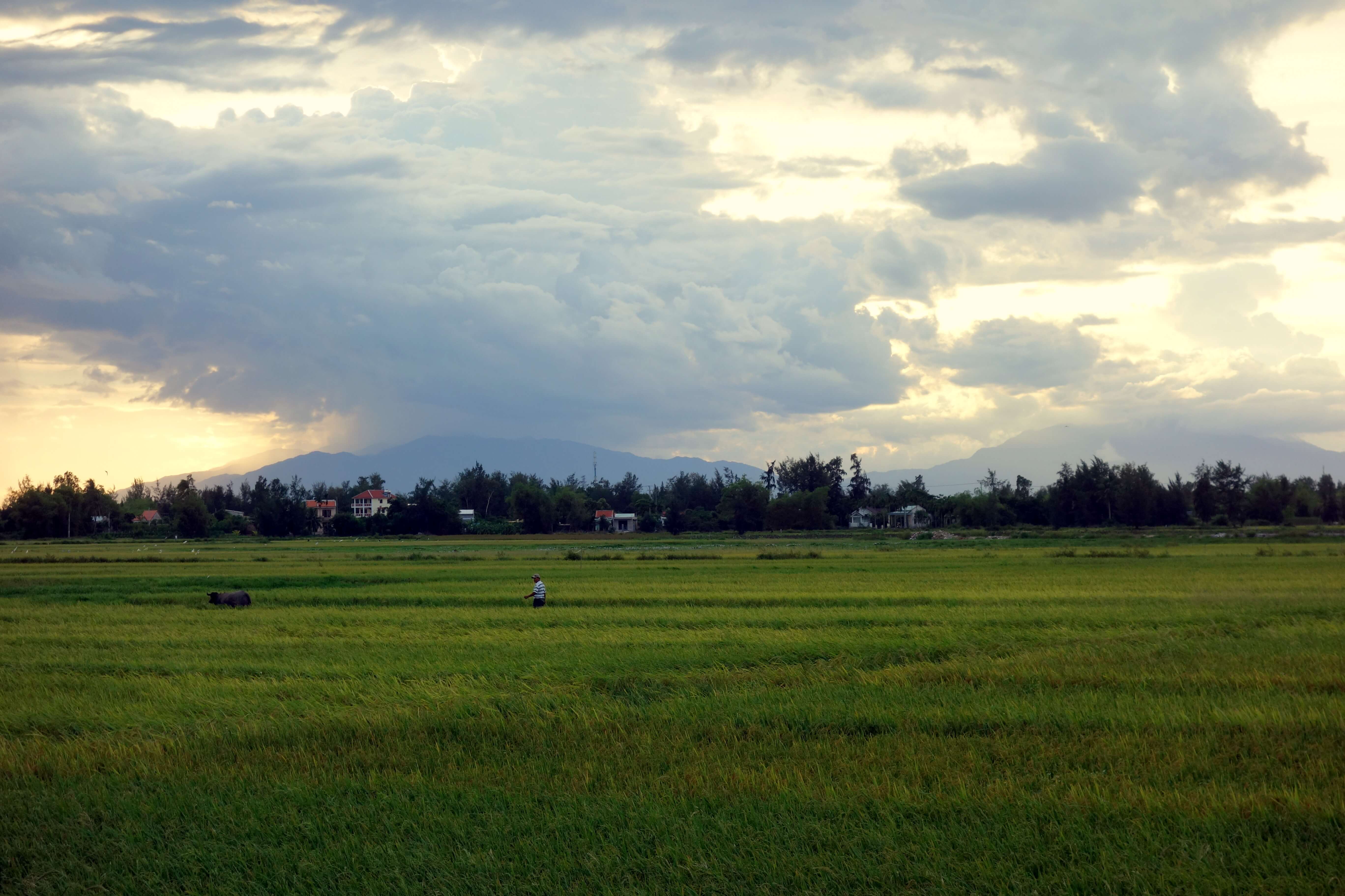 C’est donc avec mon tout nouveau scooter que je pars arpenter la campagne. Tout le monde est bien réveillé par ici, j’aperçois l’agitation du marché. Je suis à la recherche du retour de pêche mais j’avoue ne pas tellement savoir où chercher. Et puis avec tout ça, il est déjà tard maintenant. Après de nombreux sourires échangés avec les locaux, je rentre sur Hoi An prendre mon petit déjeuner.