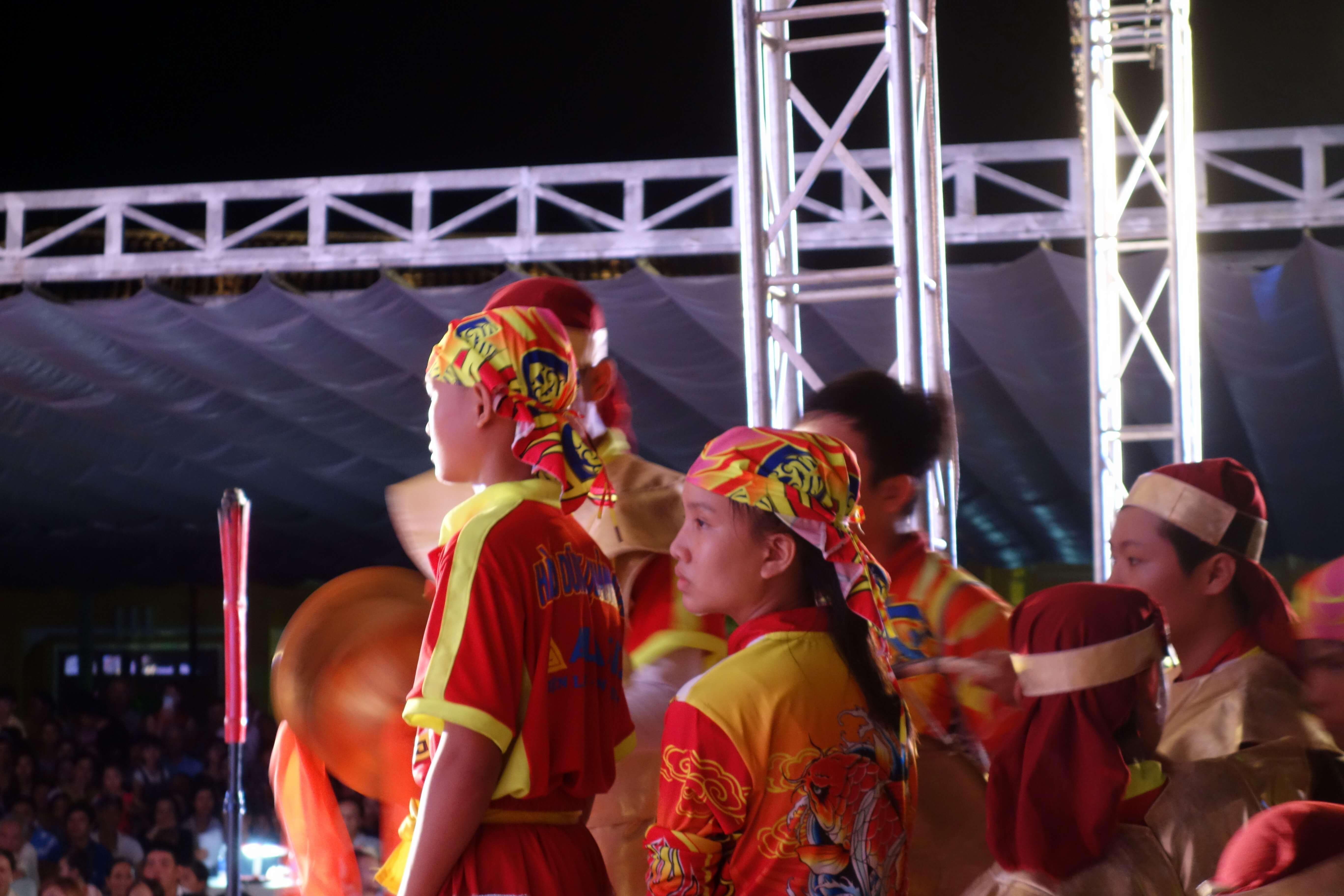 On finit par se retrouver au niveau de la grande scène installée pour l’occasion : un concours de danse de dragons ! Nous ne trouvons pas tout de suite de place pour observer le spectacle, on trouve encore mieux, observer les répétitions des enfants à l’arrière. Ils sont concentrés et répètent sans relâche avant de monter sur scène. A la fin d’une performance, on arrive à se faufiler et récupérer des sièges, on est pile en face ! Et là, la magie opère. Je suis fascinée par cette danse traditionnelle ! Le dragon est parfaitement imité. Parfois un œil cligne, parfois il se penche en avant, saute, relève la tête, cours, s’arrête… Un mélange d’acrobaties très artistique.