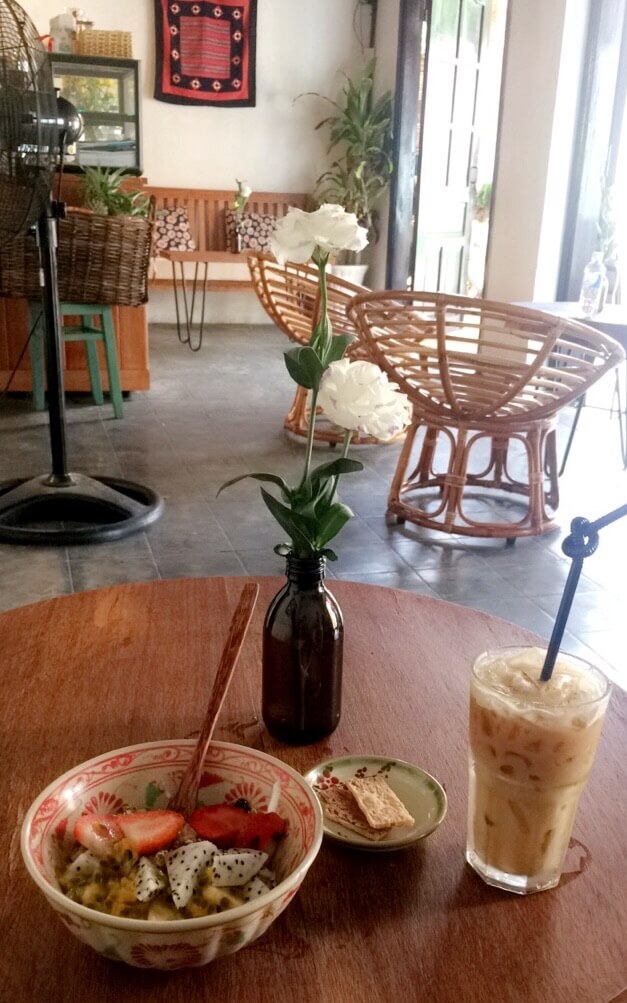 Je dois rejoindre Anais, une française rencontrée sur l’un des groupes de voyage que je suis sur Facebook. Direction le Rosie’s cafe, près du pont japonais. La balade dans le vieux Hoi An est toujours aussi agréable, j’aperçois les lampions dans les rues et j’ai hâte de les voir tous éclairés. Je prends un bon petit déjeuner (un des repas les plus chers que j’ai fait jusqu’ici, mais bon des mueslis ça se mérite !) et en profite pour me reposer un petit peu.