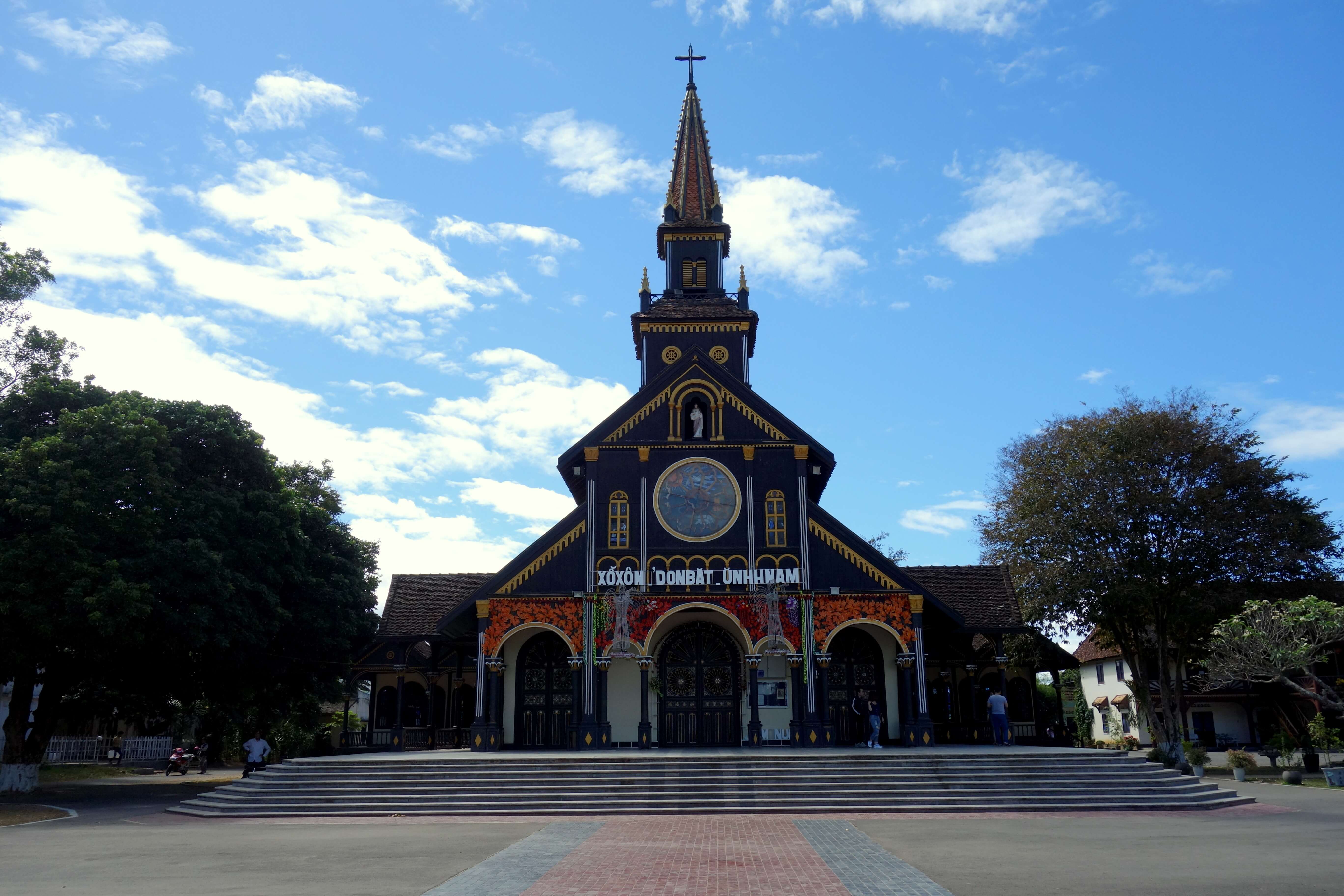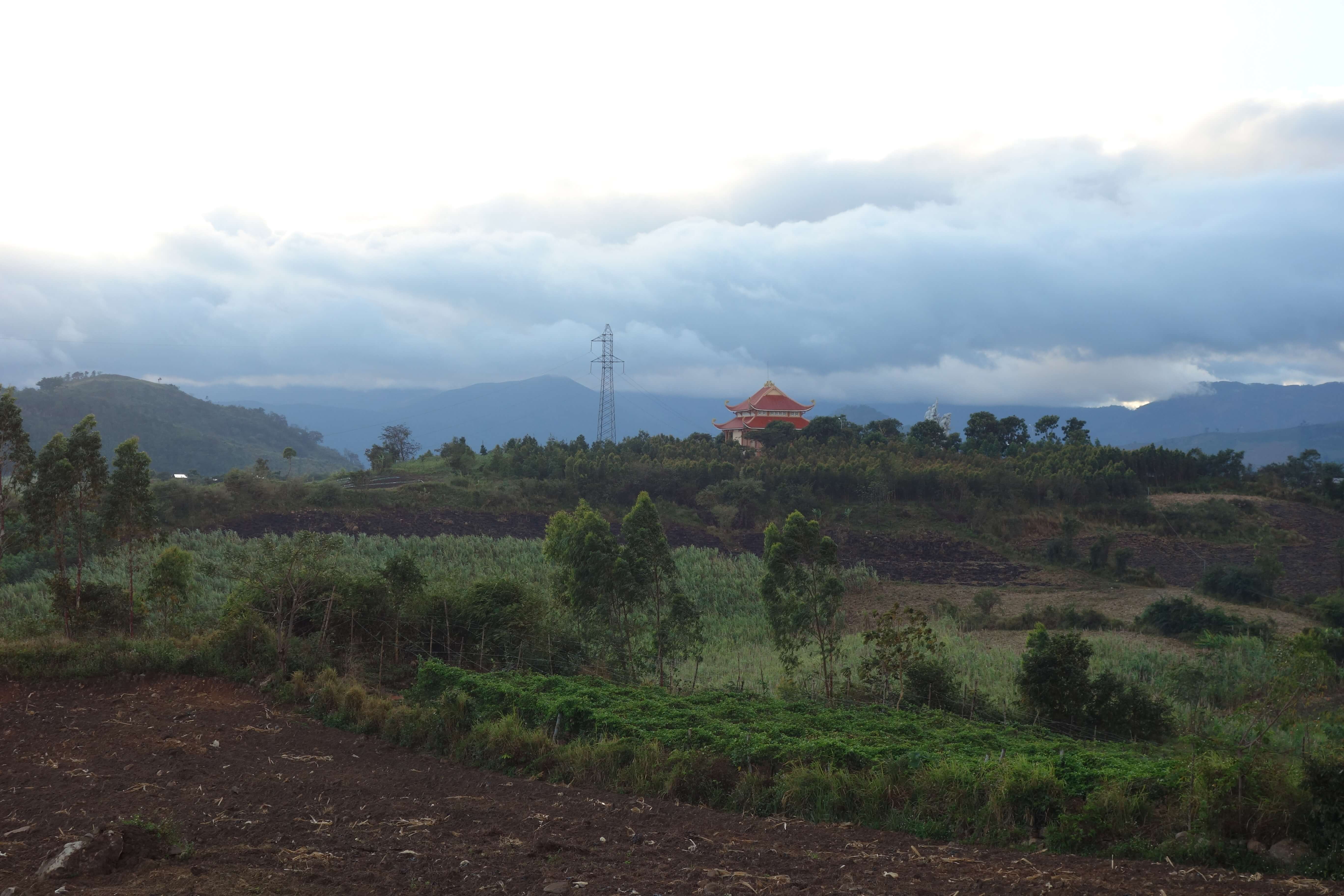 Je suis à 500m d’altitude et ne croise aucun touriste sur la route. Je traverse Pleiku et ça à l’air trop sympa comme ville, moderne mais pas touristique. Tout est en creux et bosse, ça monte et descend sans arrêt. J’ai envie d’y passer une nuit mais n’arrive pas à trouver d’hôtel (ou alors très cher), je ne dois pas être au bon endroit. Je cherche un Nha nghi (homestay) mais sans succès ! (J’en ai vu plus tard sur la route principale en dehors du centre ville). Je décide que ça doit être un signe et continue ma route jusqu’à Kontum comme prévu au départ ! Cette portion de la route est vraiment sympa aussi ! On se rapproche de la montagne sans jamais l’atteindre…
