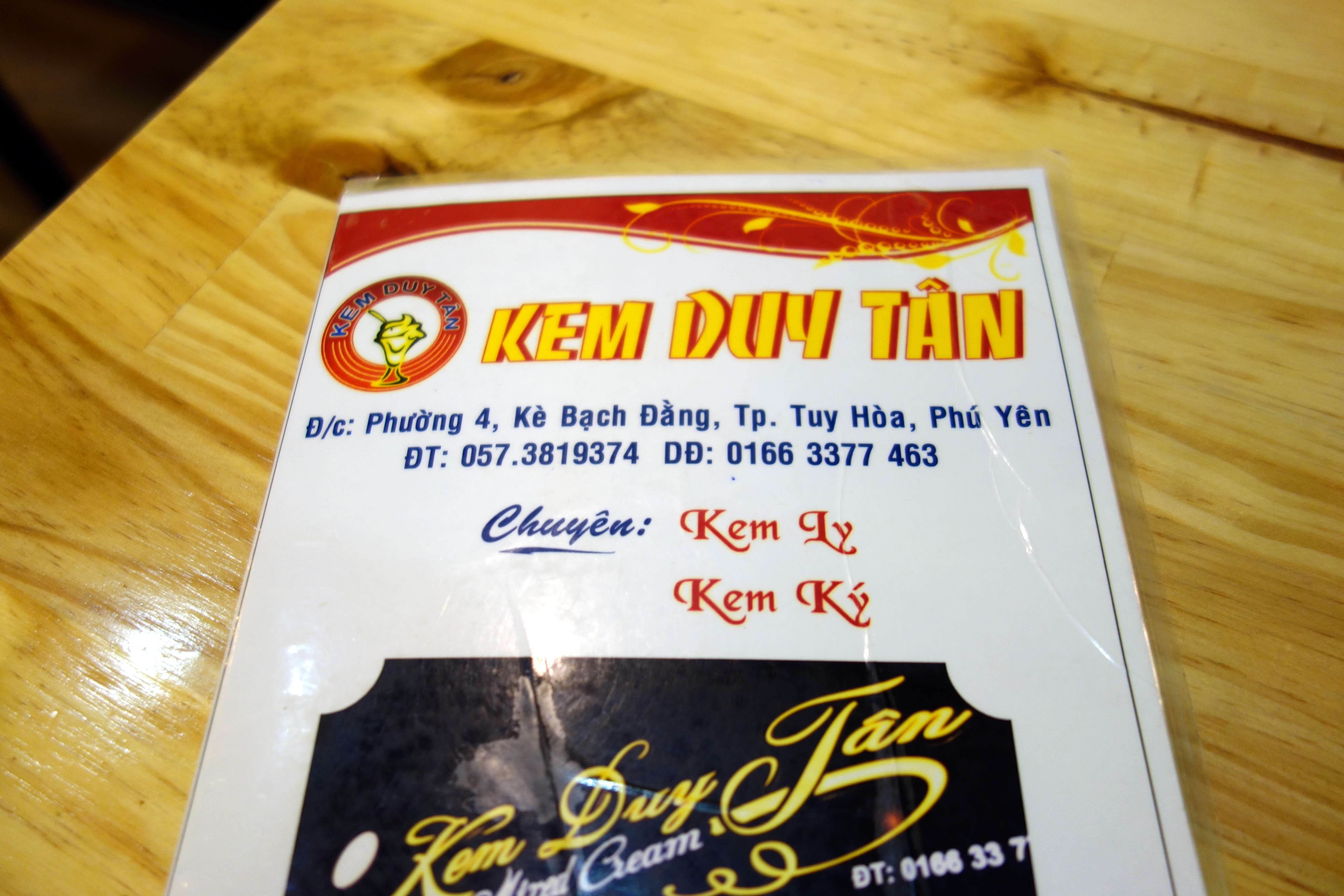 Je suis calée, j’ai déjà trop mangé ! Mais Ngang insiste pour que l’on aille tester une glace que l’on ne peut manger qu’ici : un Kem trong dua flan. Une glace à la noix de coco et une crème caramel, mmmmmh !