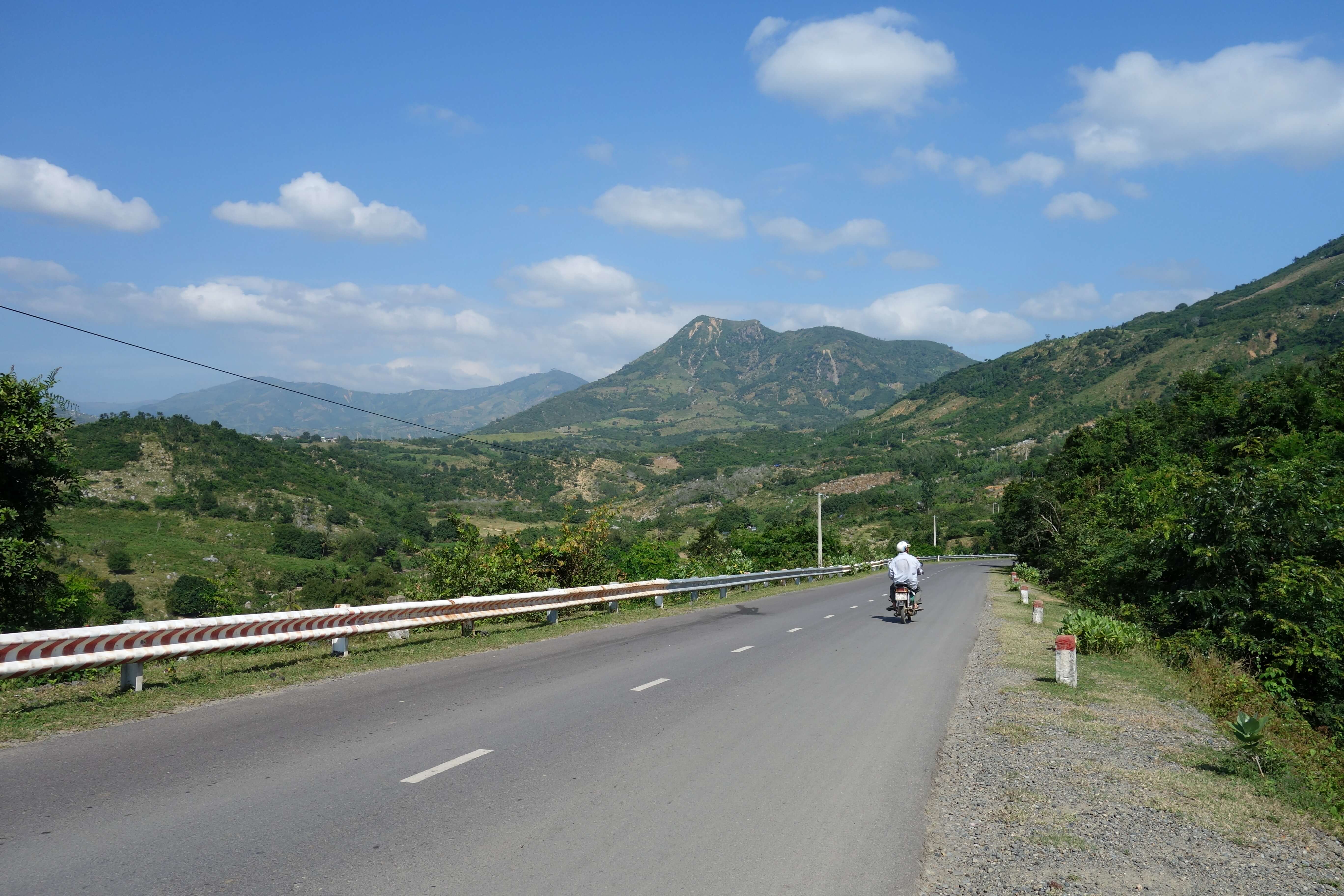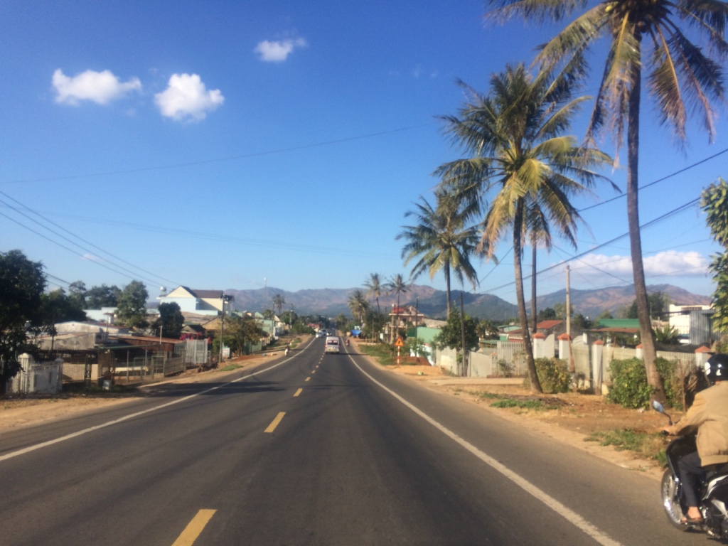 Les paysages entre Tuy Hoa et Cam Ranh (au Sud de Nha Trang) sont superbes. On est en haut de la falaise et on voit la mer en bas, des petites plages. De l’autre côté c’est la montagne, les rizières toutes vertes. On est vraiment entre la mer et la montagne !! J’ai envie de m’arrêter partout mais je dois continuer de rouler.