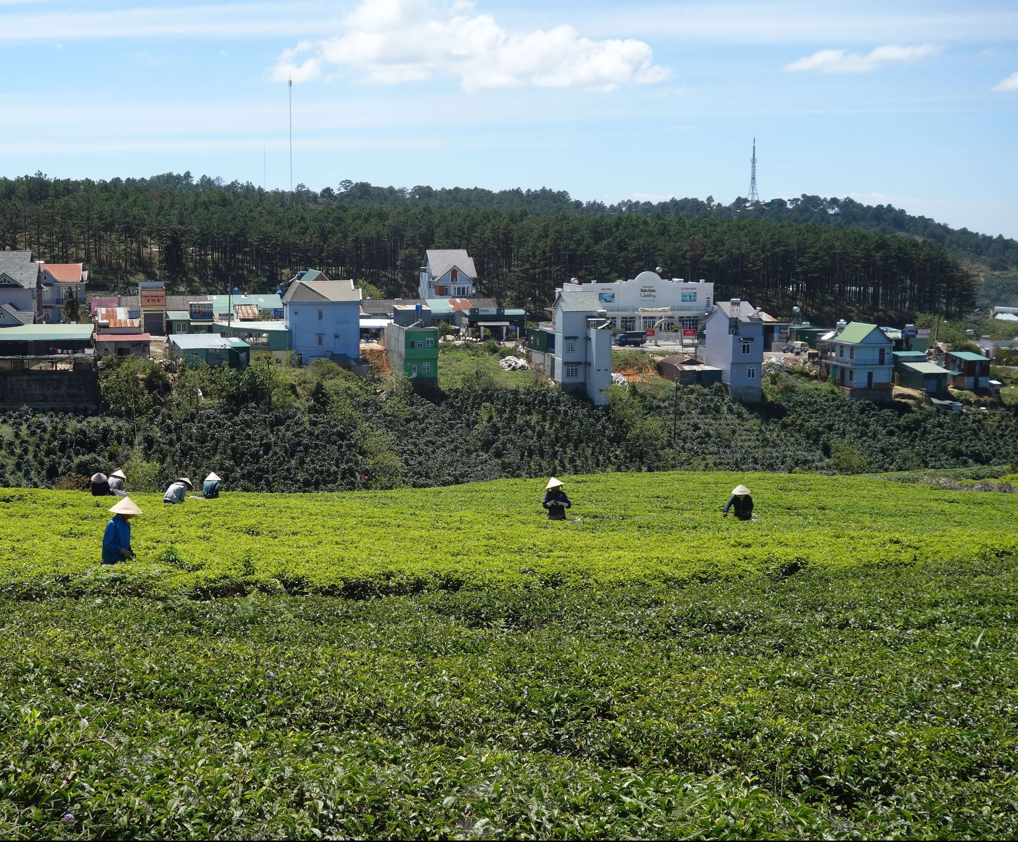 Ne sachant pas trop comment occuper ma journée du lendemain, je décide de me rendre à Lang Biang, au sommet de la montagne. D’après Maps.me, il y a une route pour monter jusqu’en haut et les 2 derniers kilomètres se font à pied. Je roule pendant un long moment, depuis le centre-ville j’admire les paysages, traverse de petits villages et quand j’arrive enfin au pied de Lang Biang, surprise !! Seuls les vietnamiens sont autorisés à monter au sommet en scooter. Nous, touristes, devons prendre une jeep (et donc payer le trajet en plus de l’entrée du parc !). Il en est hors de question. Par principe, fierté et radinerie, j’irai à pied !! On m’annonce 6km, ça va ! Je trouve la femme qui garde les motos un peu insistante « vous devez être revenue avant 17h !! » Ce qui me laisse 3h30, je me dis que ça va être tranquille, après tout, ce ne sont que 6km !