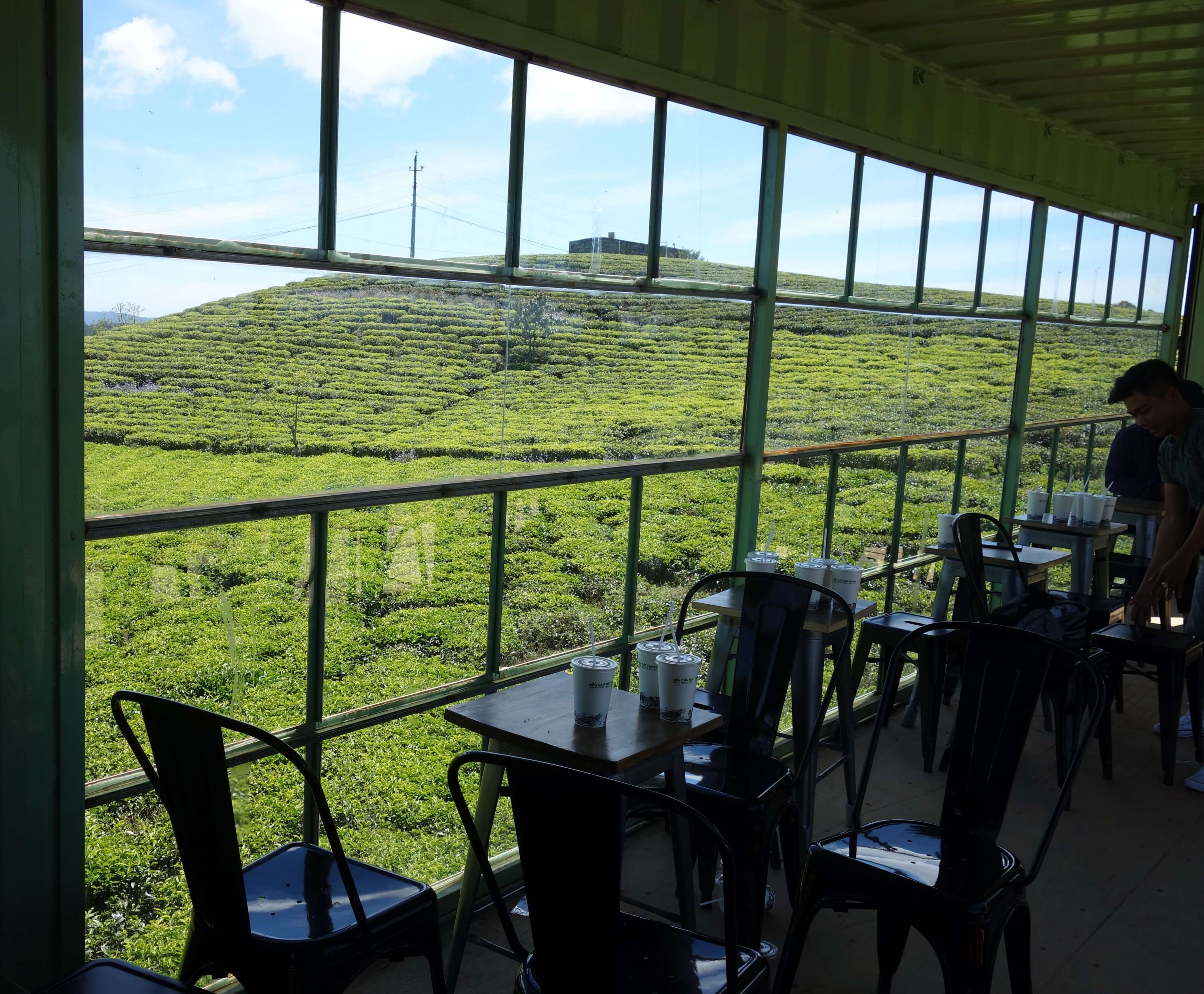 Je m’arrête sur la route pour voir une plantation de thé. A ce moment là, je suis à 1600 mètres d’altitude ! La vue est incroyable, j’en reste sans voix. Je déguste bien sûr un thé avec un petit gâteau dans un genre de cabane en baie vitrée.