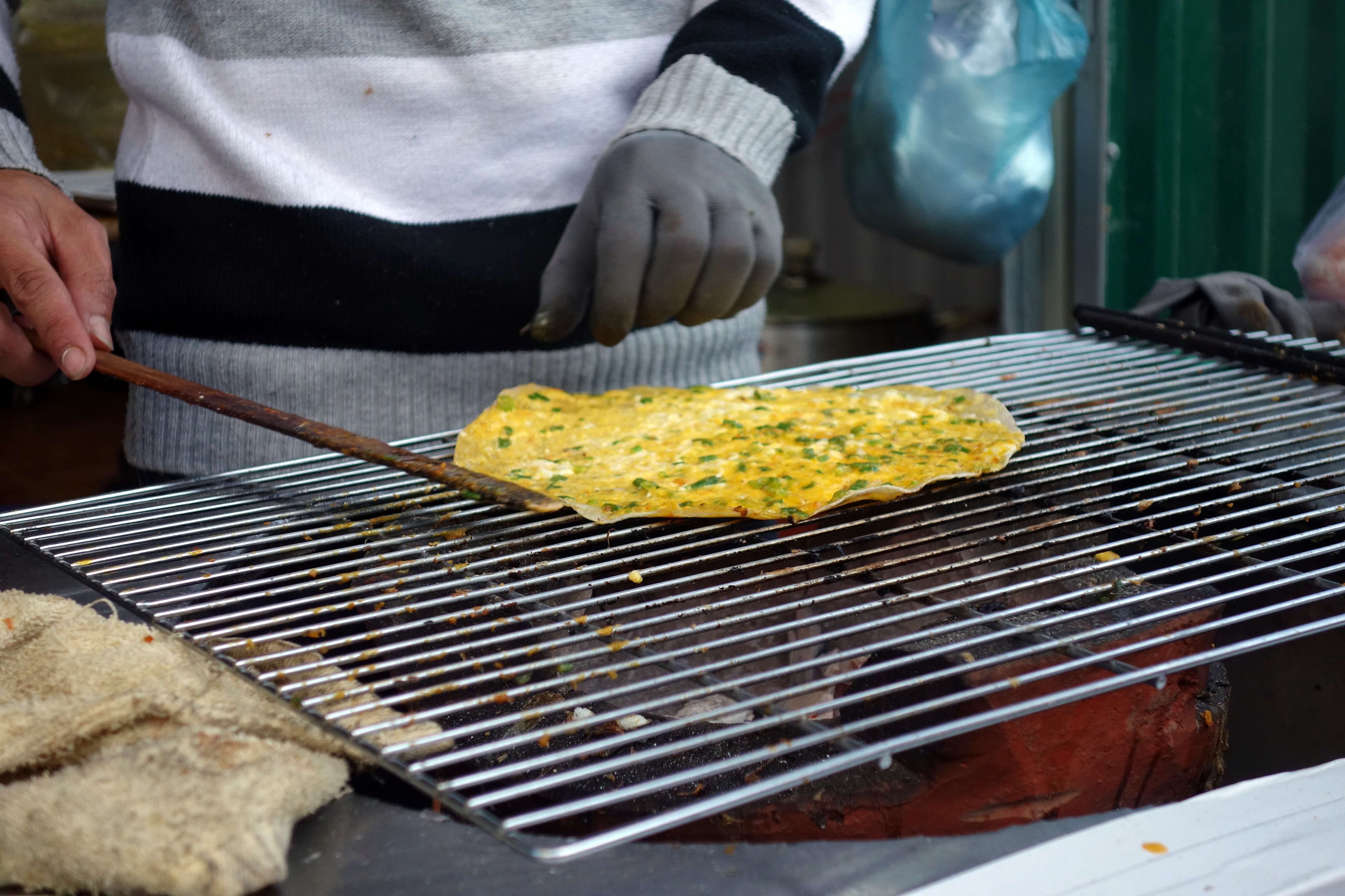 J’ai repéré un resto bondé au bord de la route, et à la carte c’est des Banh xeo ! J’adore ça, je suis trop contente. C’est un genre de crêpe à base de farine de riz fourrée avec des légumes, du soja, des crevettes …