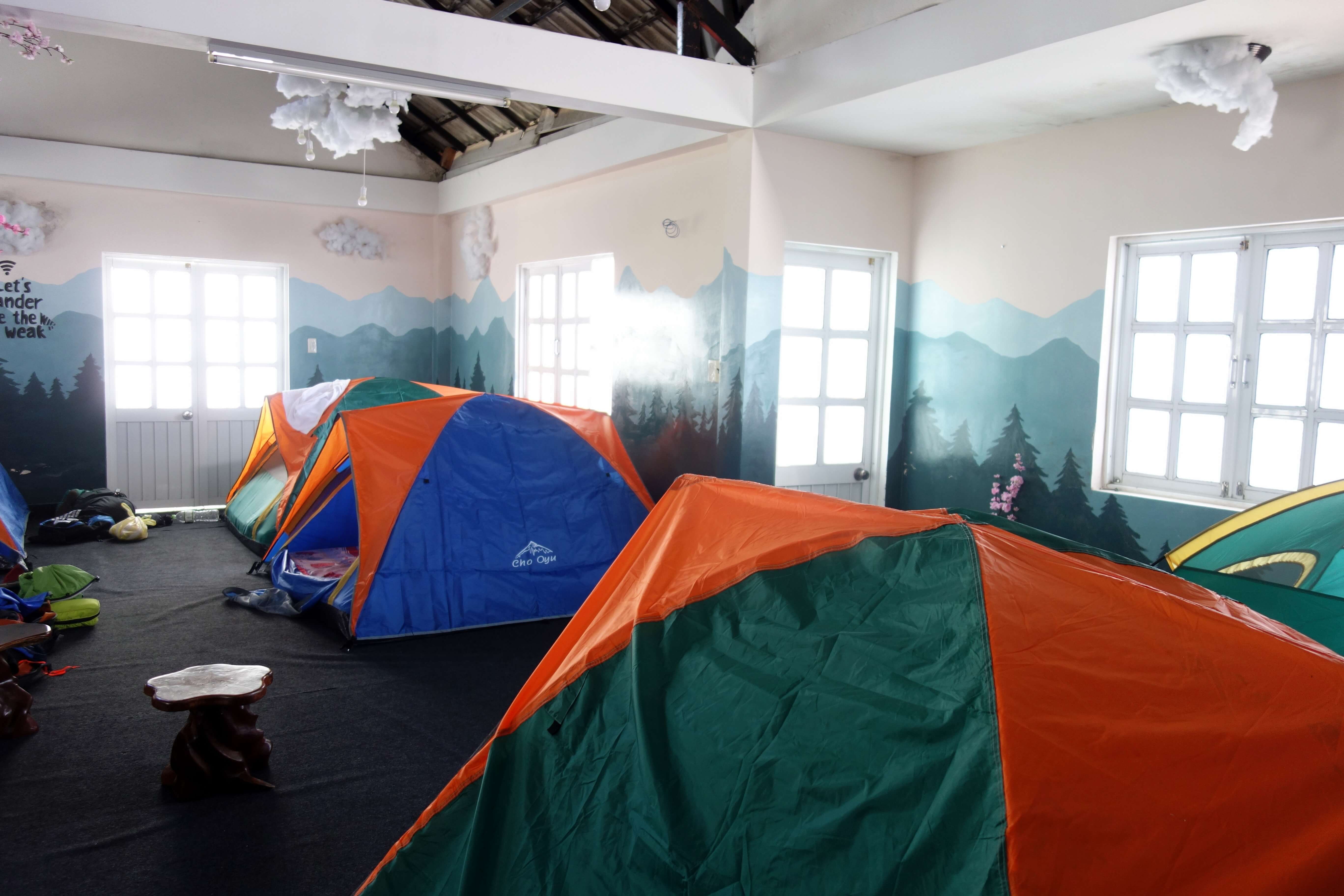 J’avais entendu parler de cette auberge bien particulière et elle était définitivement sur ma « to do list » de voyage !! Une nuit en camping mais à l’intérieur ! Je trouve le concept super sympa. La pièce est joliment décorée et le personnel super sympa ! Ils ne sont que deux en fait à gérer cette auberge, ils ont tout construit eux-mêmes il y a quelques mois… C’est encore tout récent !