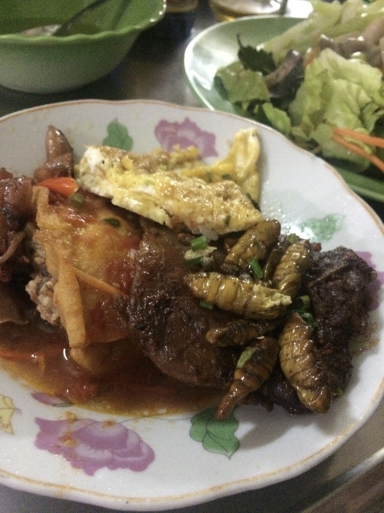 Je rencontre 4 filles qui sont mes voisines de tente, après avoir rapidement fait connaissance on décide de manger ensemble. On goûte des insectes, un genre de larve, au restaurant, aucune idée de ce que c’est ! Le goût n’est pas mauvais mais la texture est plus gênante !!
