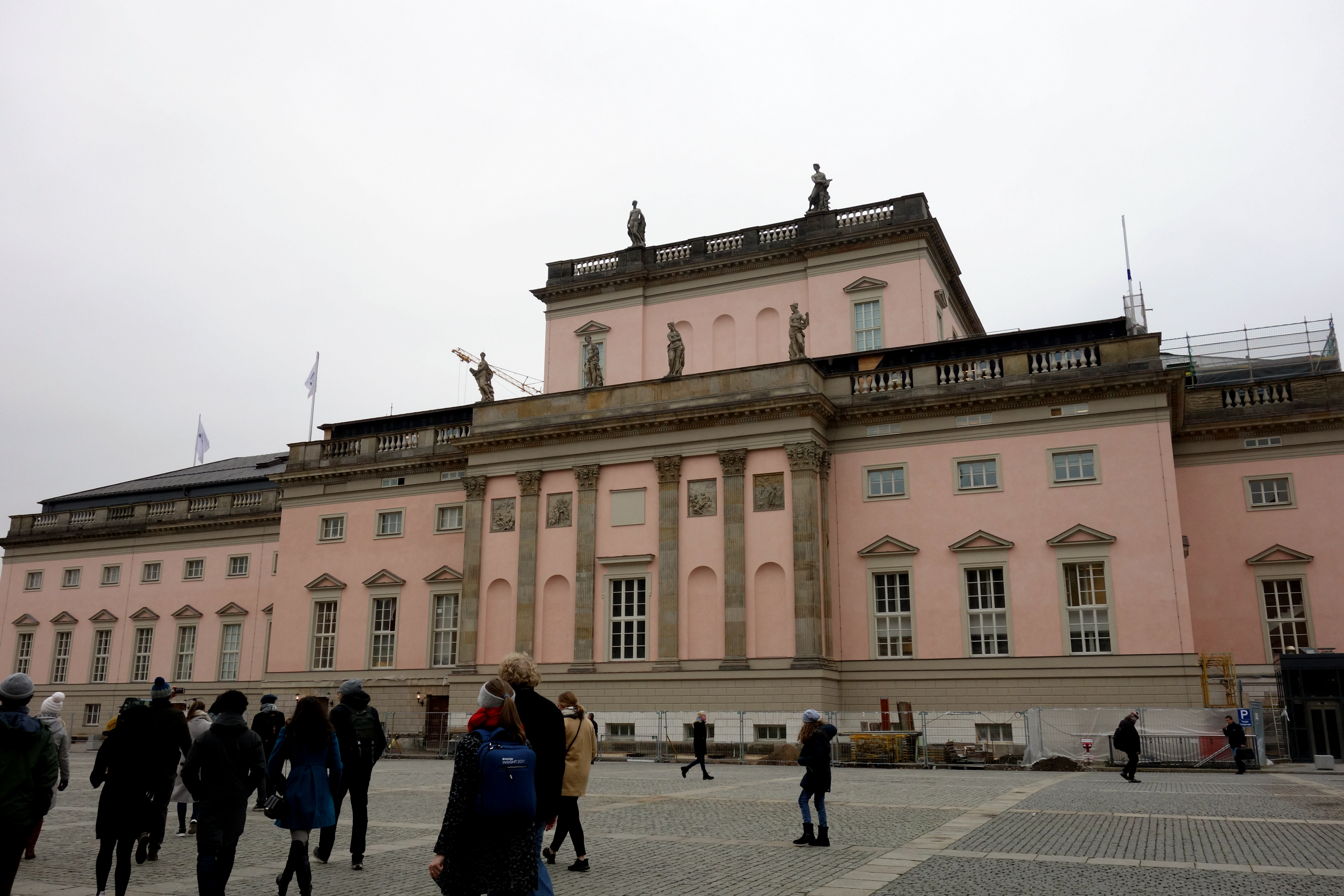 La place suivante est Bebelplatz le guide nous arrête sur une plaque en verre. Sous nos pieds, des étagères vides à perte de vue ! Encore un mémorial pour rappeler les dizaines de milliers de livres brulés en 1933.