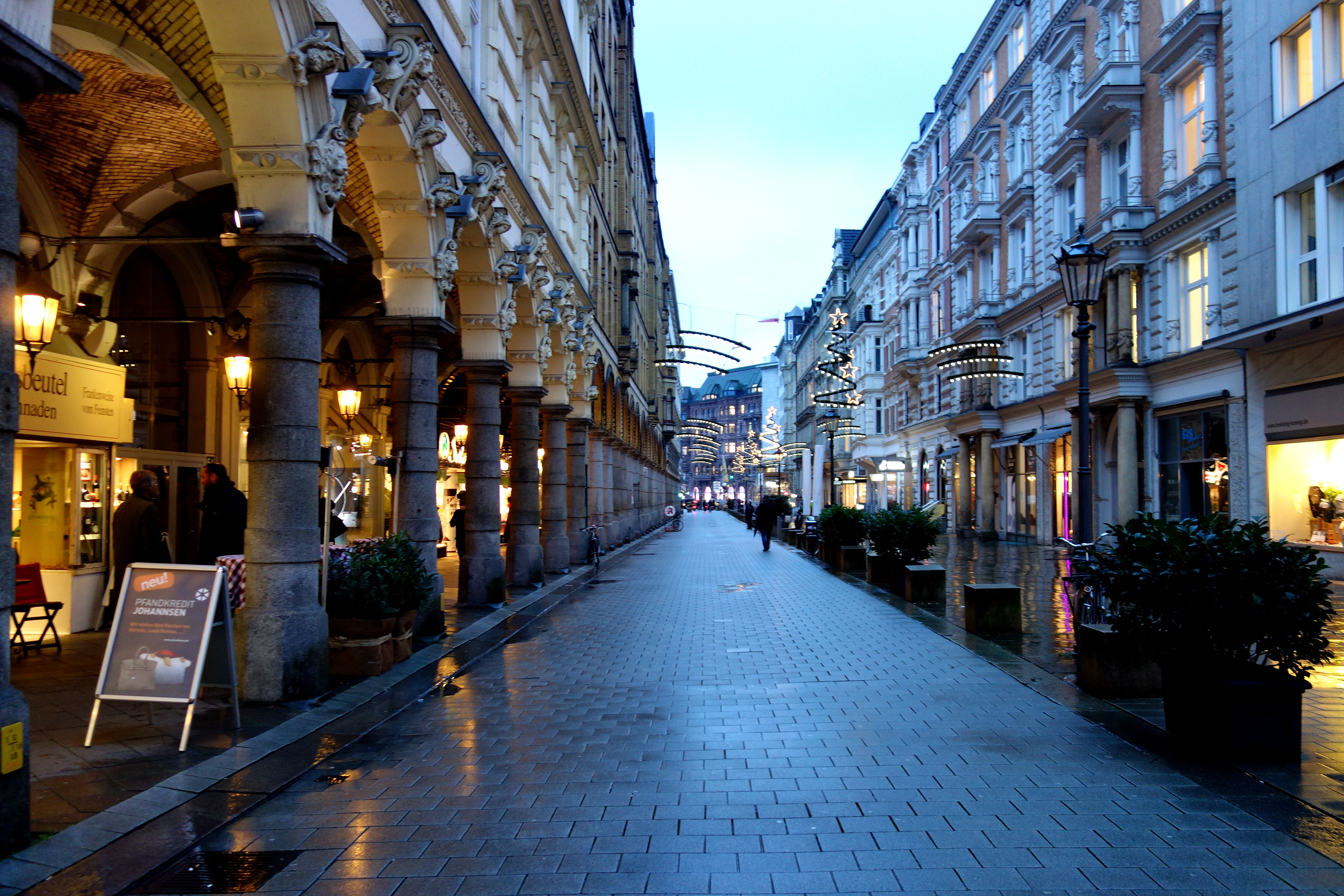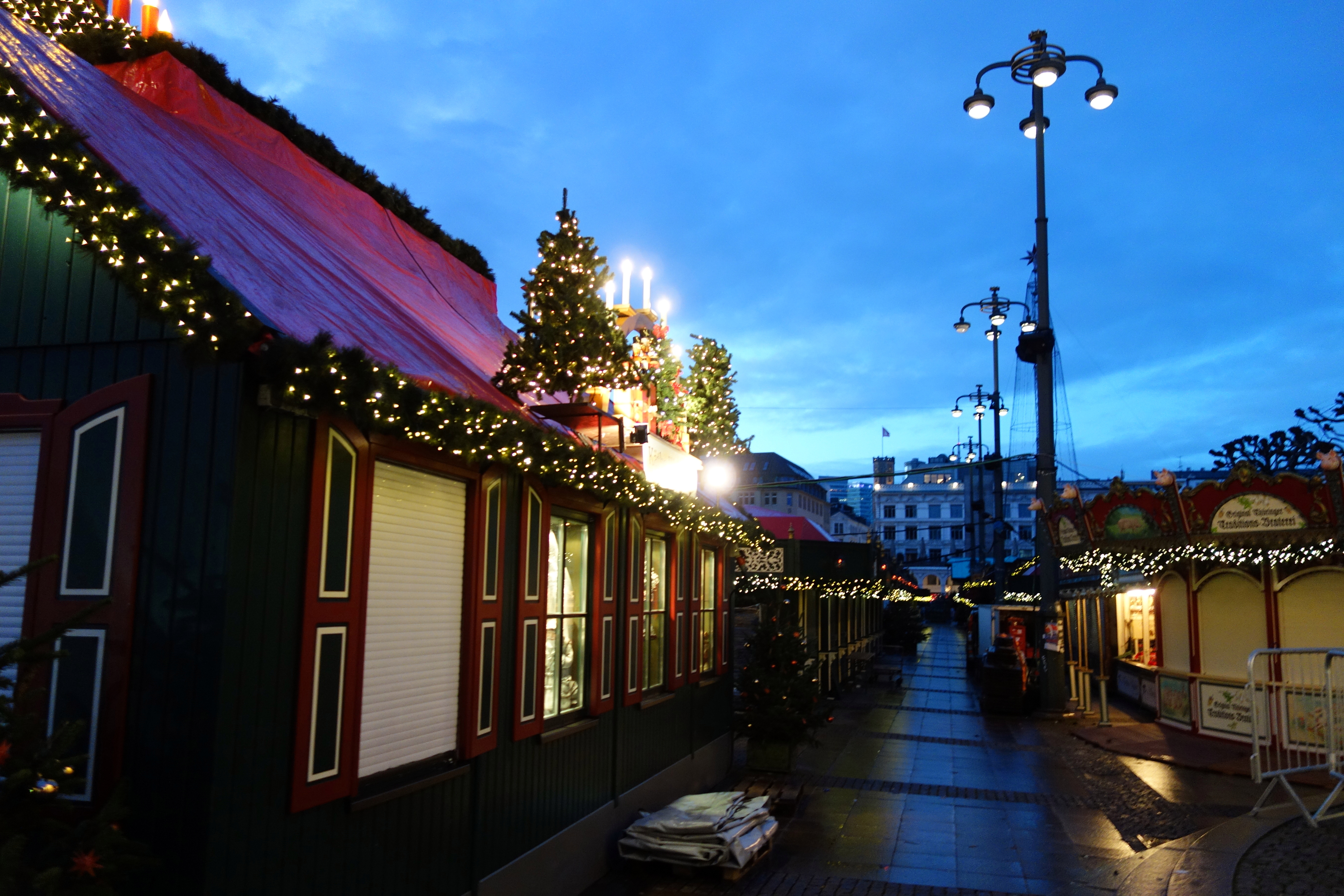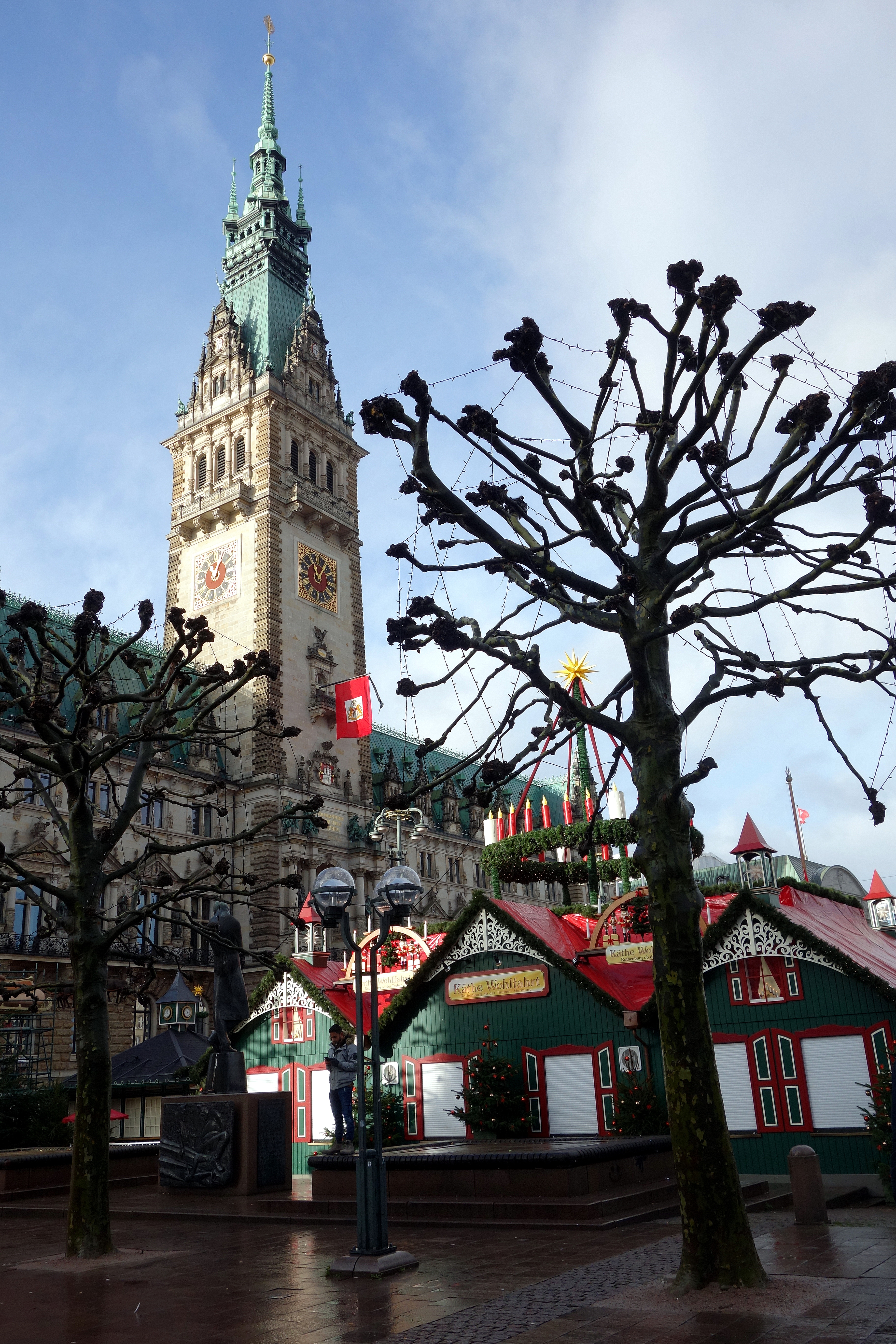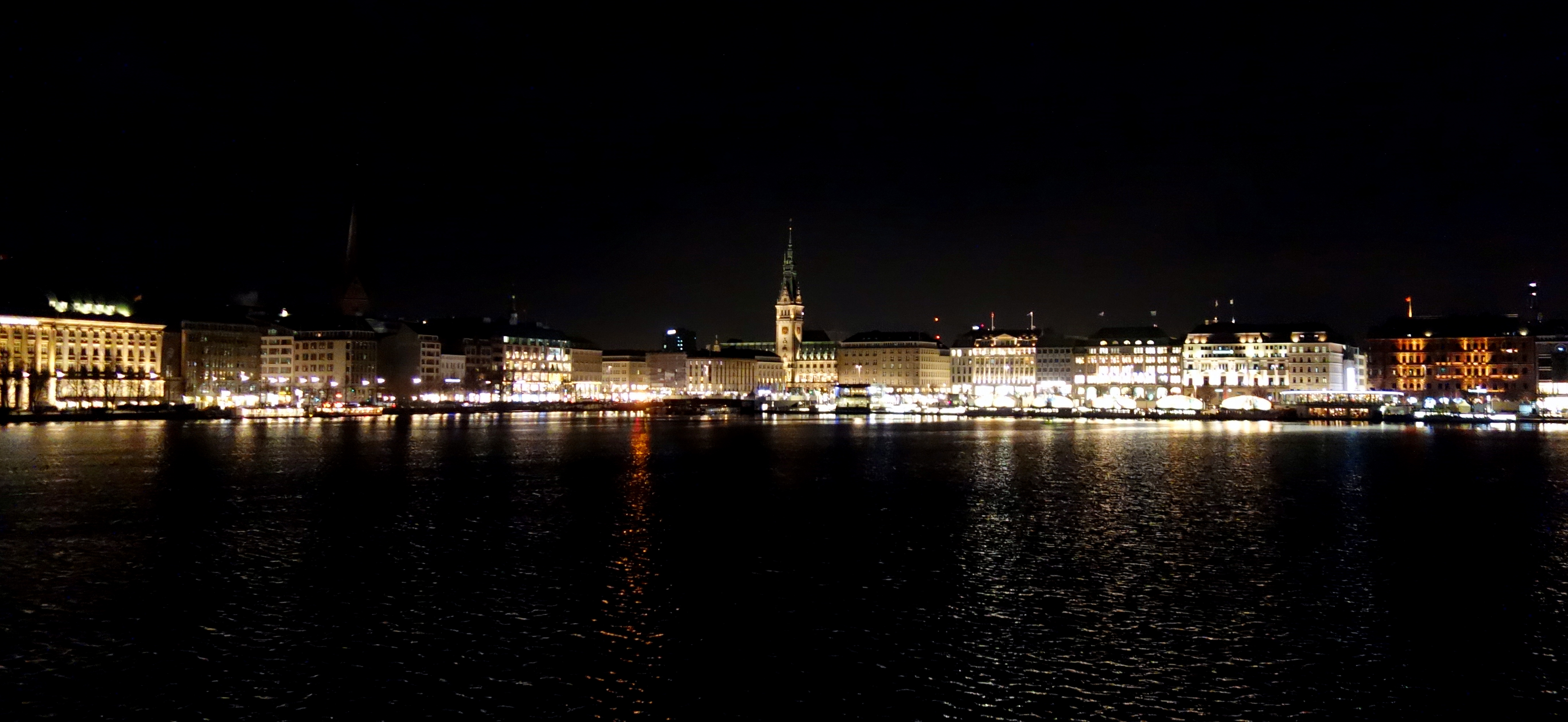 Je découvre la gare, les marchés de Noël, le Rathaus (hôtel de ville), les artistes de rue et surtout, les galeries le long du port, les lumières qui se reflètent dans l’eau, c’est magnifique ! Je rentre émerveillée à l’auberge, contente de faire escale dans cette ville !