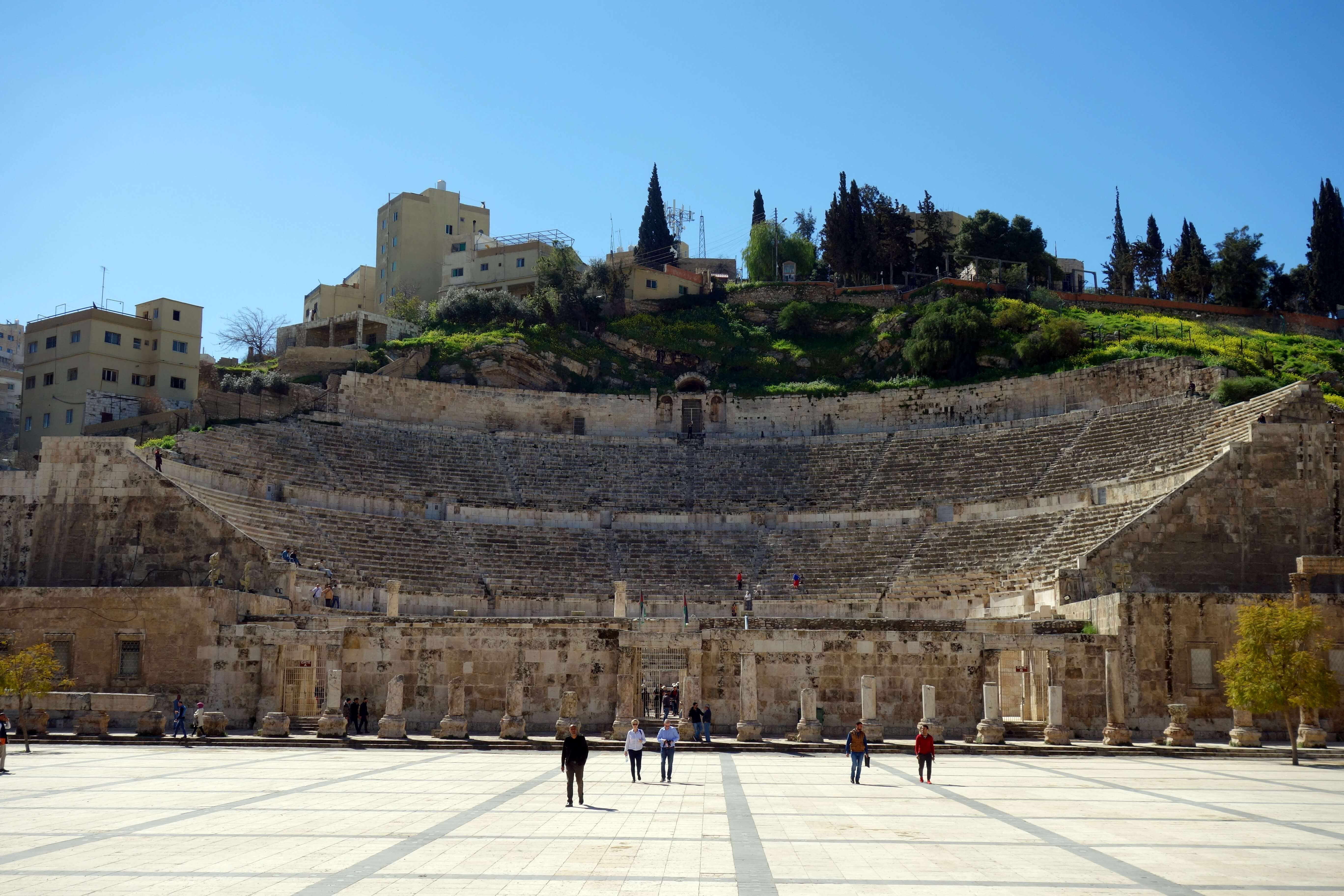 Suite à cette invitation inattendue et totalement ininteressée, je me rends  à l’amphithéâtre romain. Bon c’est un amphithéâtre comme un autre, je monte jusqu’en haut et m’assieds sur les marches. Quelques minutes plus tard, une jordanienne s’installe à côté de moi.