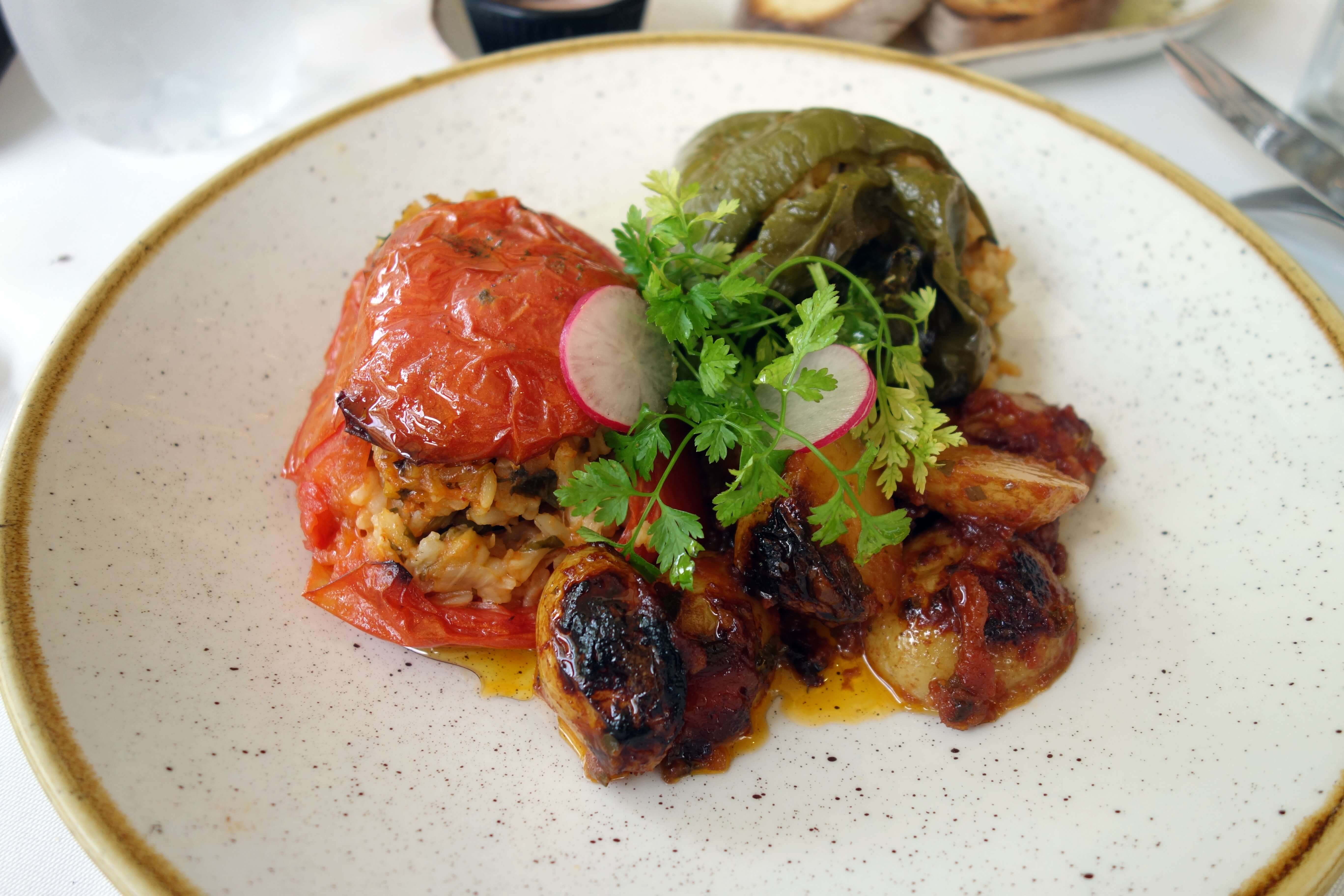 Le restaurant Yasemi est hyper original !!! J’adore la décoration vintage, le feu de bois dans la cheminée, l’escalier en colimaçon, les plantes un peu partout, le buffet sur lequel on peut voir tous les plats faits maison…. ils sont tous à 5€ ! Donc on en prend 3 différents à se partager. Une salade de lentilles, une salade de betterave rouges aux pommes et aux noix et un dakos, mélange de fêta, tomates et pain grillé. On se régale !!! La dame grecque rencontrée la veille à la soirée traditionnelle est là également ! On avait complètement oublié qu’elle nous avait recommandé de venir ici car ses amis musiciens y jouaient un concert ! Sacrée coïncidence !!