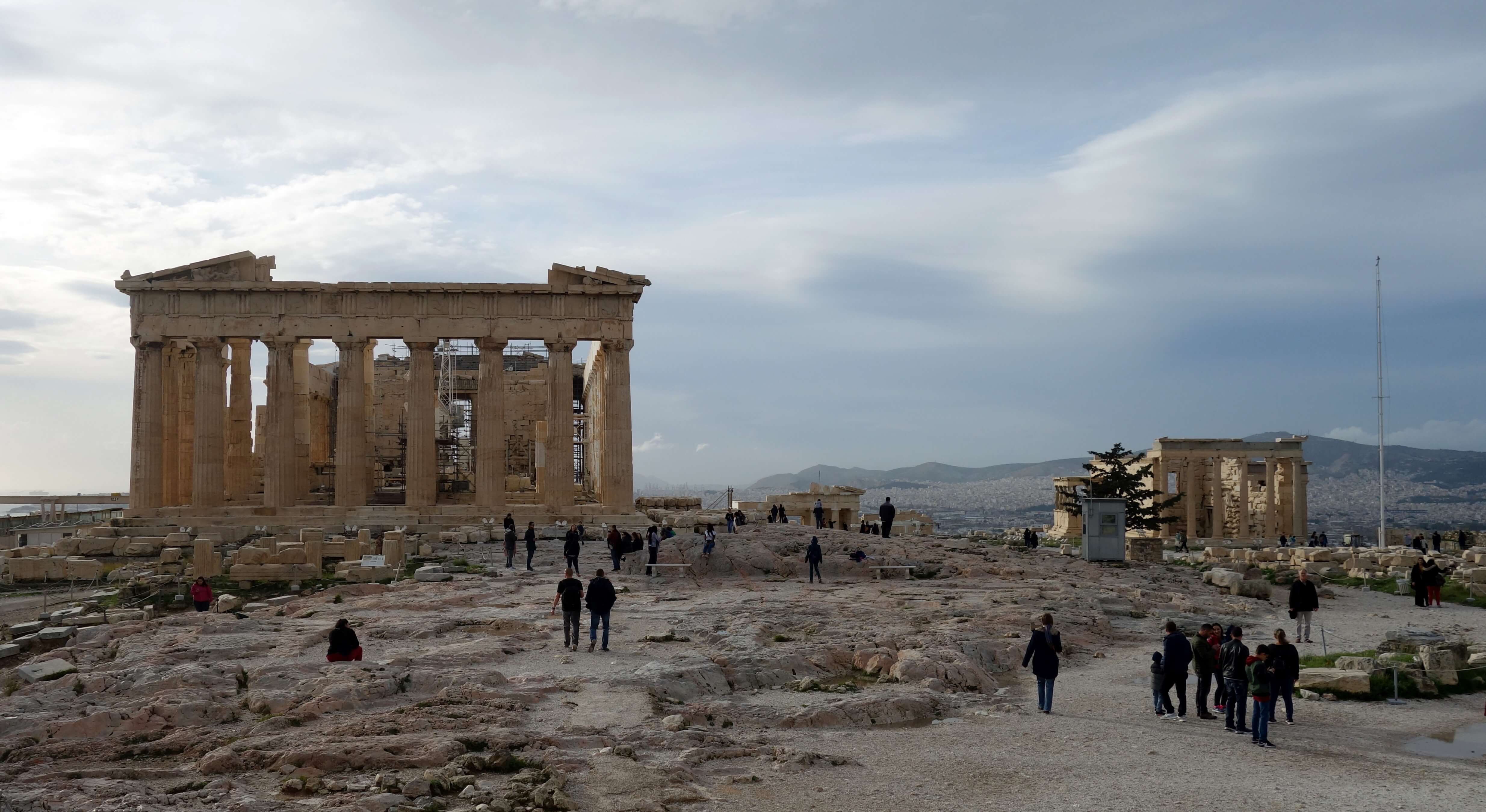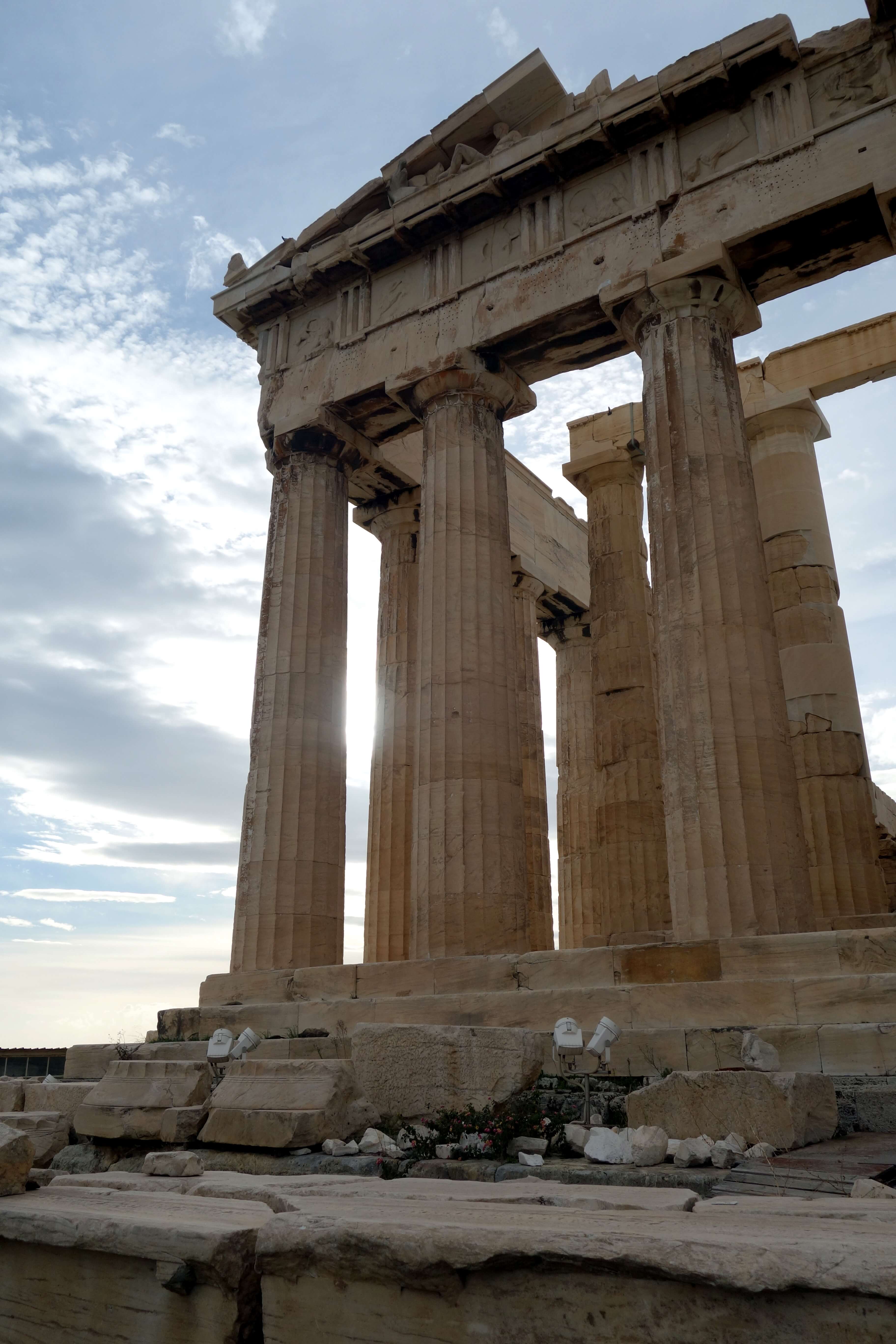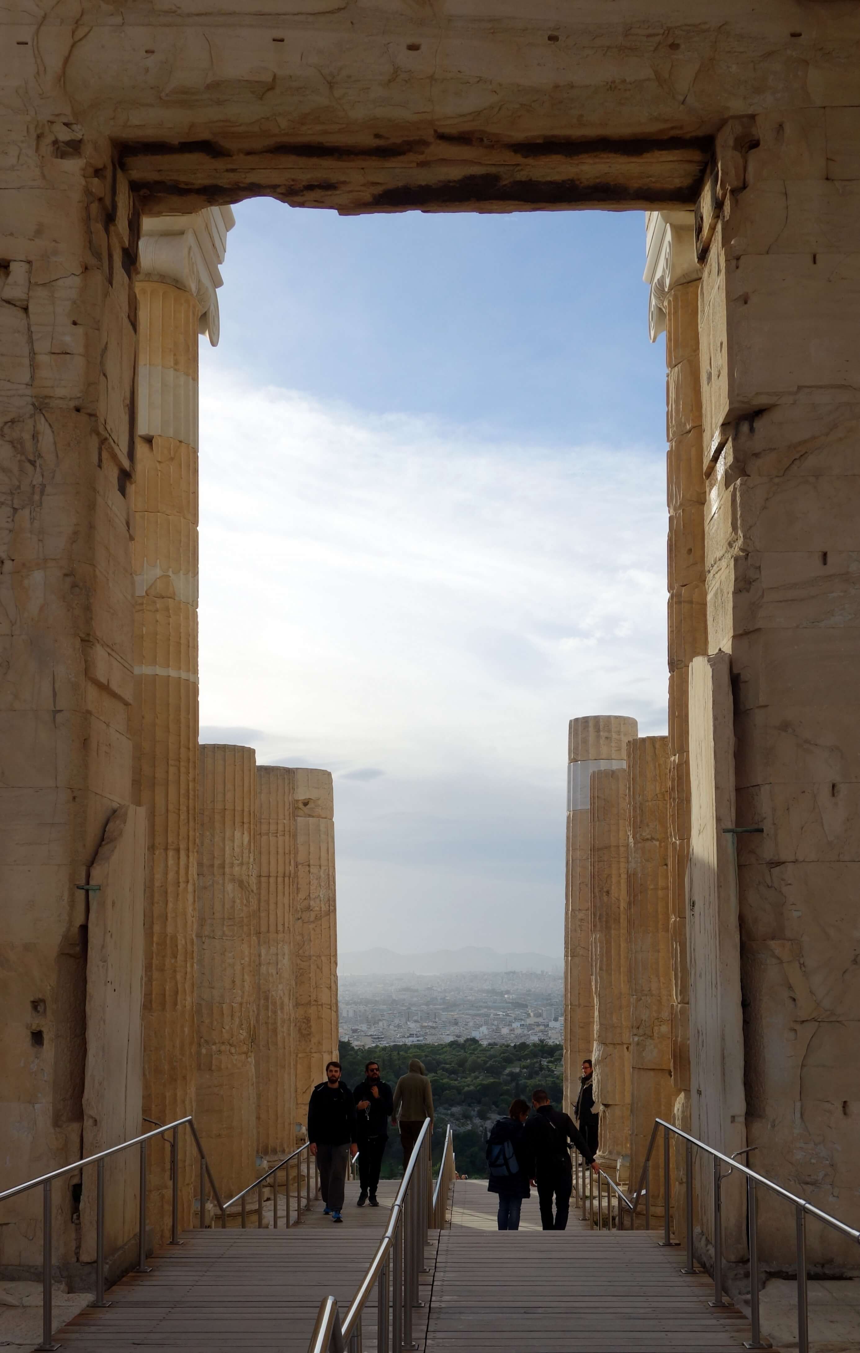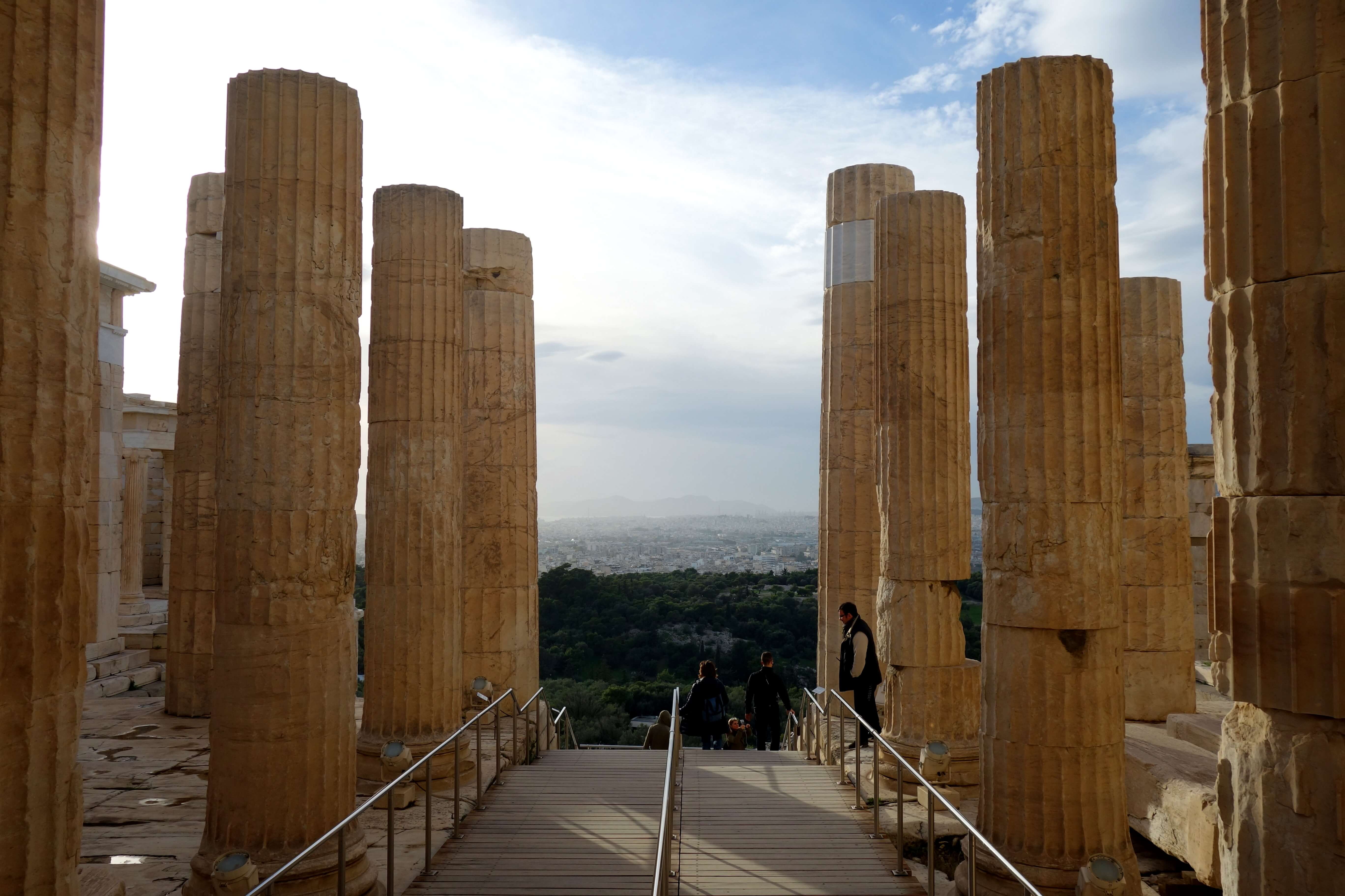 J’atteins l’entrée de l’Acropole, d’immenses colonnes m’indiquent que je suis arrivée. Le temple en l’honneur d’Athéna Nike domine à l’extérieur.
