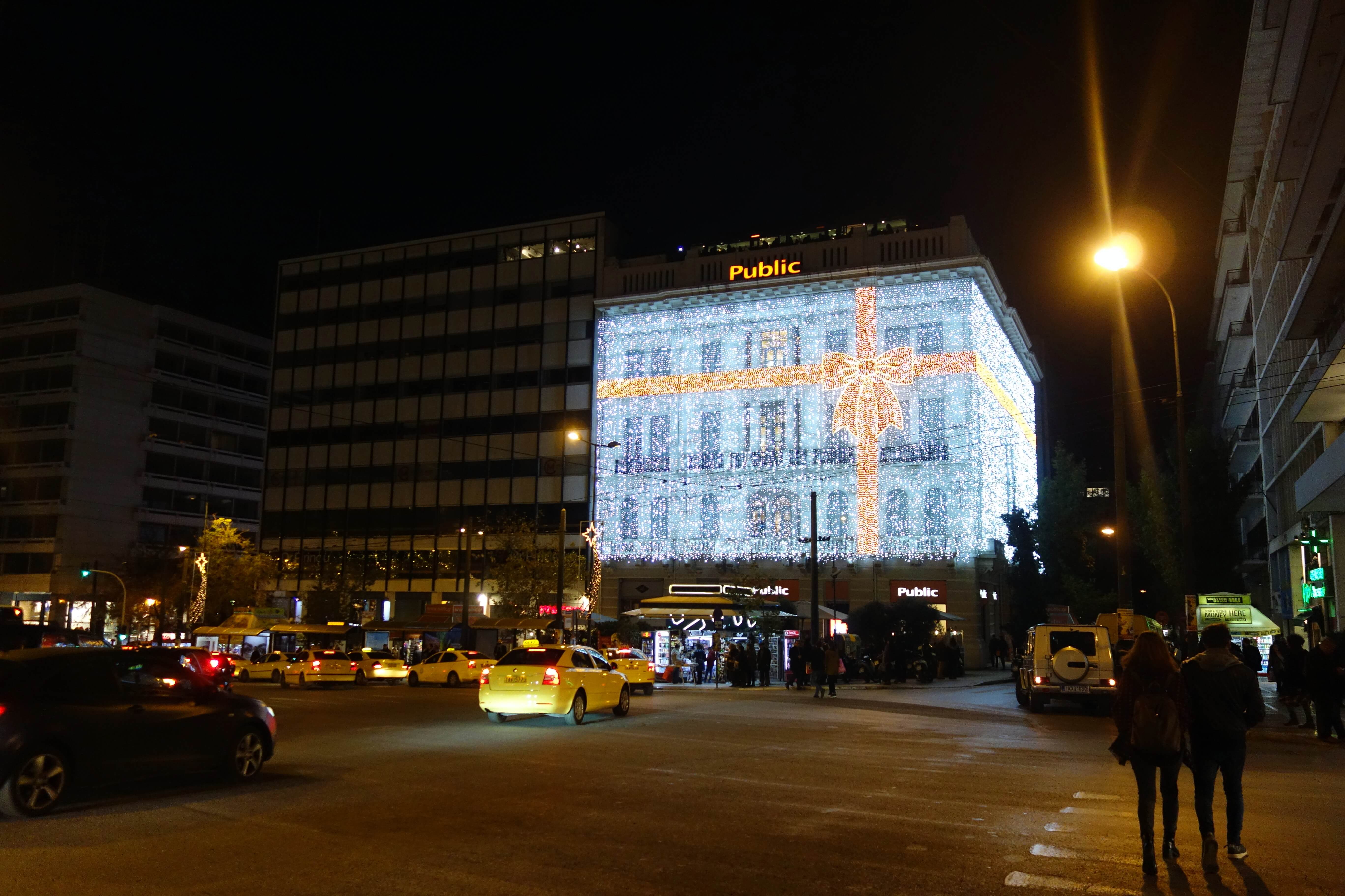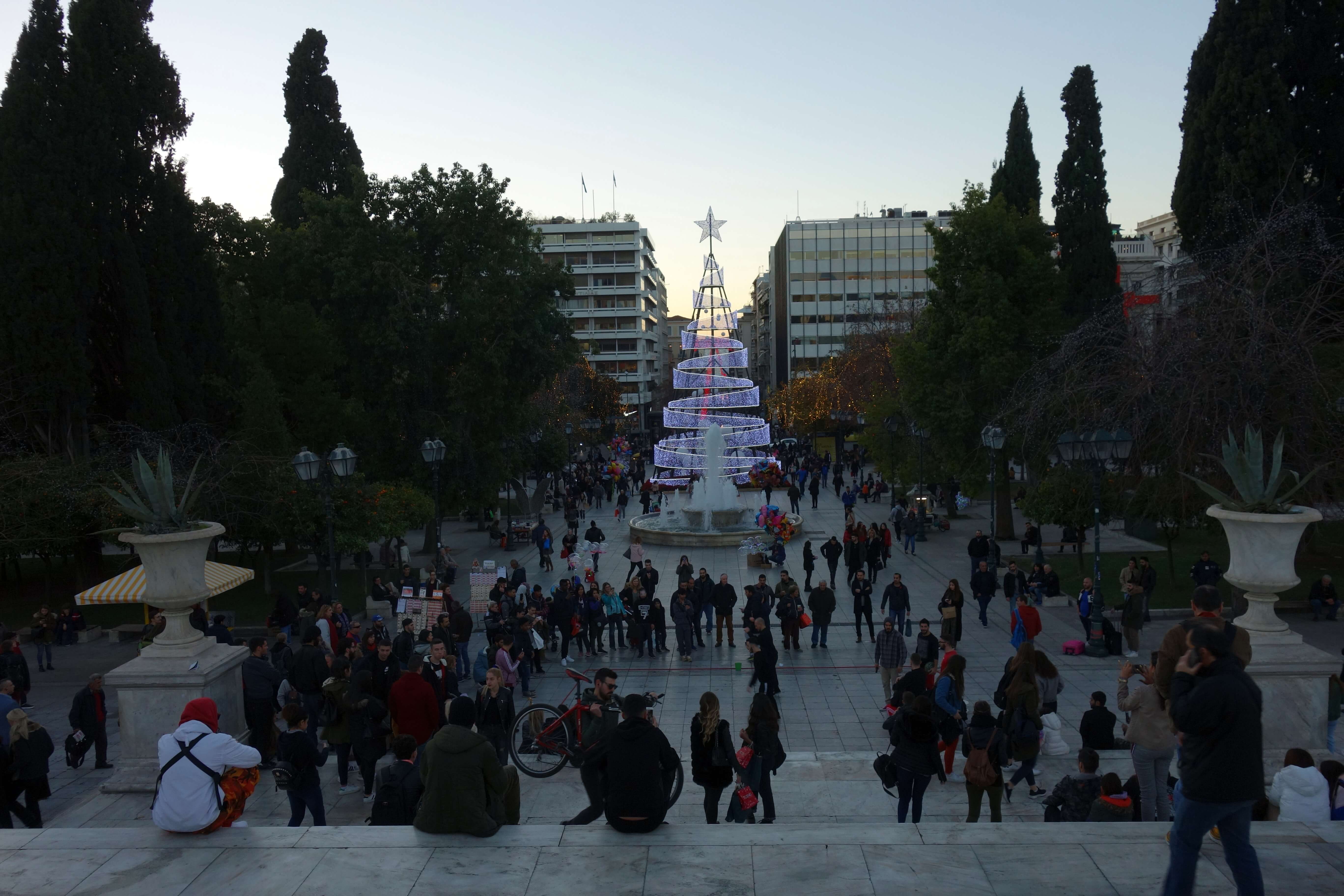 Nous redescendons en traversant le quartier du shopping, la rue Ermou, mauvaise idée un samedi soir, il y a énormément de monde ! Les décorations de noël rappellent que nous sommes en décembre, difficile à croire alors qu’il fait si bon !