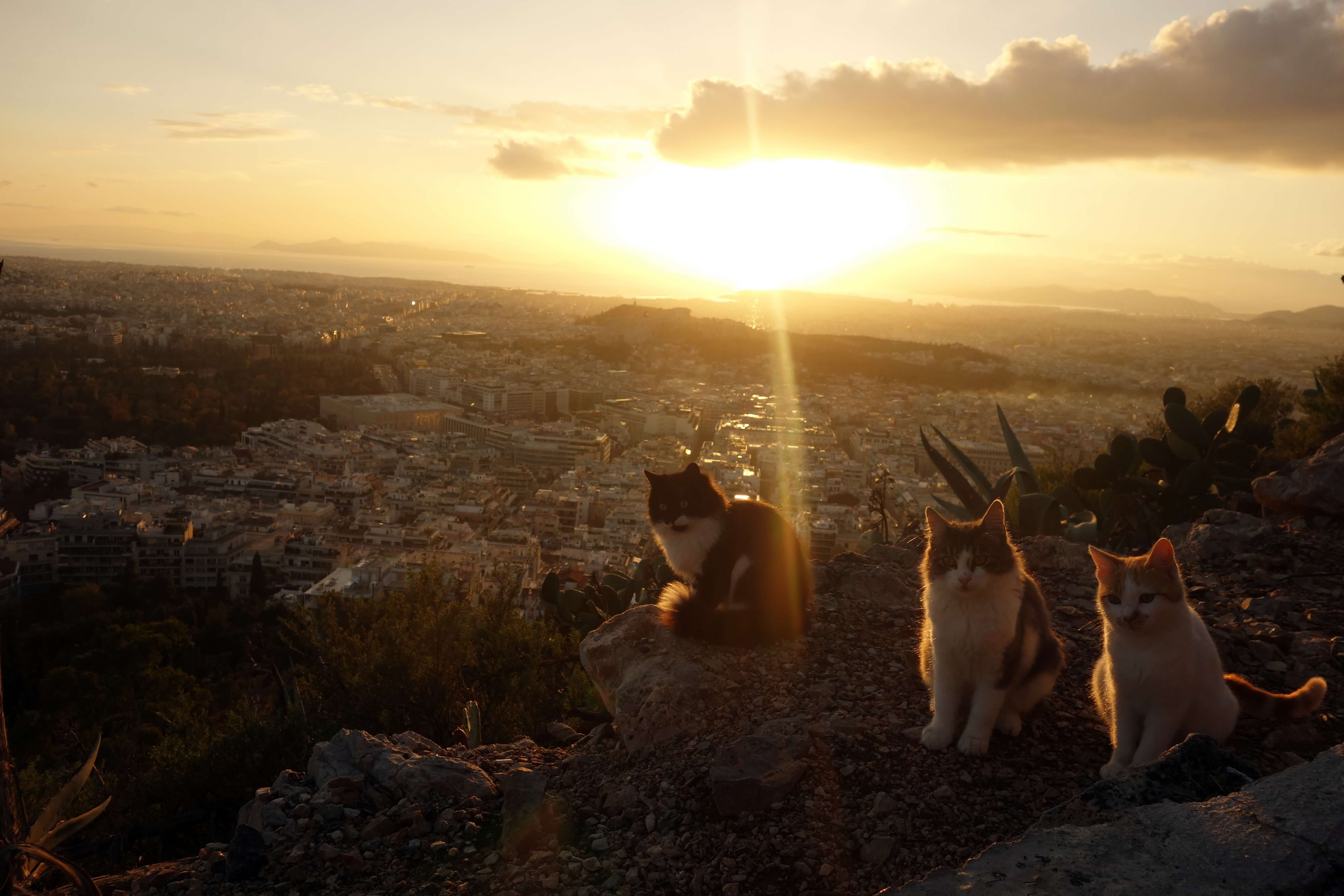 Le lendemain, je pars à la découverte d’Athènes grâce à un free walking tour. Je ne recommande pas forcément celui que j’ai fait, mais il paraît que celui de Nikos est vraiment bien ! Je découvre pendant 3 heures la ville, tombant instantanément sous le charme : les ruines archéologiques partout, l’architecture des habitations, les plantes à tous les coins de rue et les millions de chats qui se promènent en toute liberté dans la ville, l’animation dans les rues, la gentillesse des grecs ; la météo est des plus agréables pour un mois de décembre (17 degrés et grand soleil !)