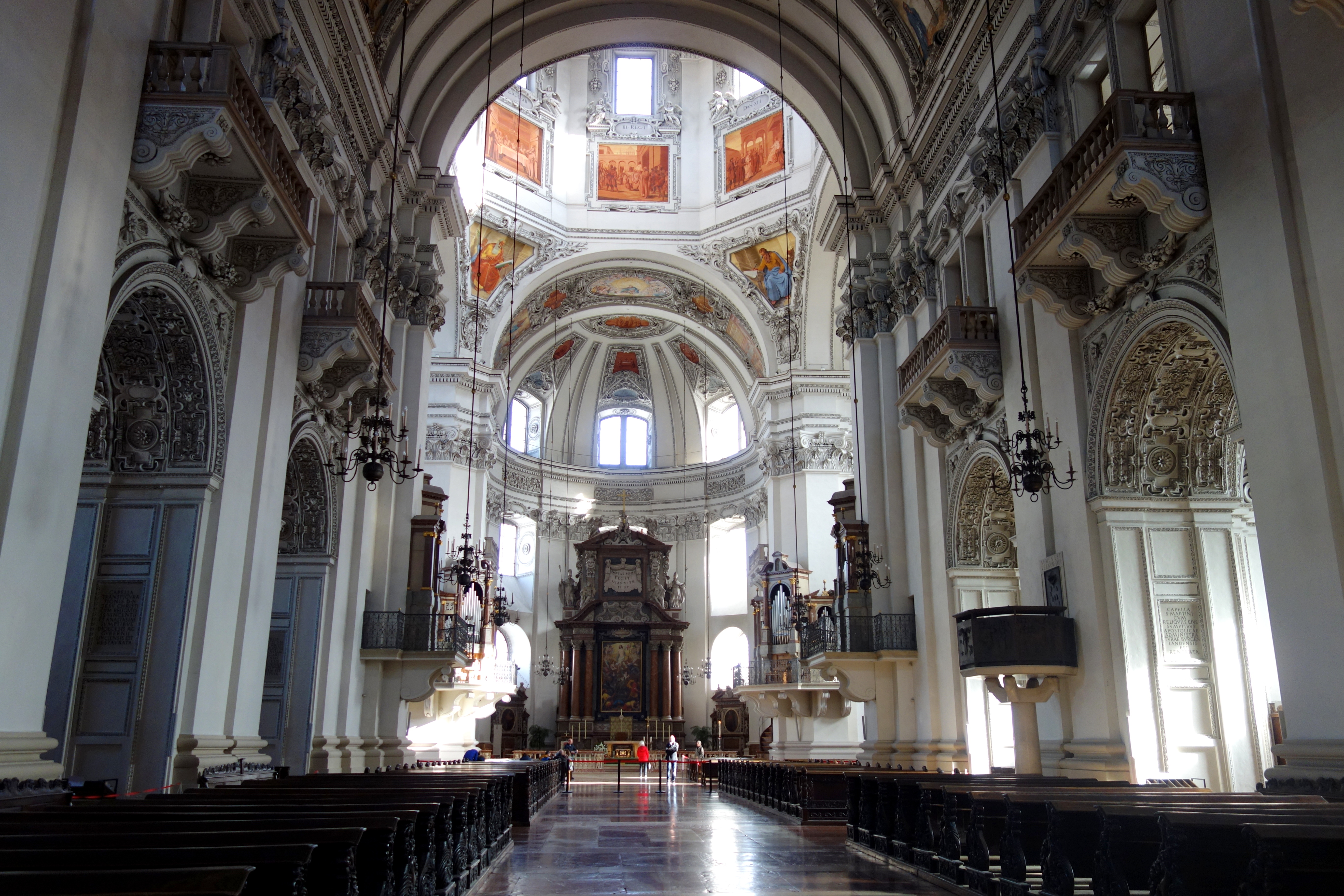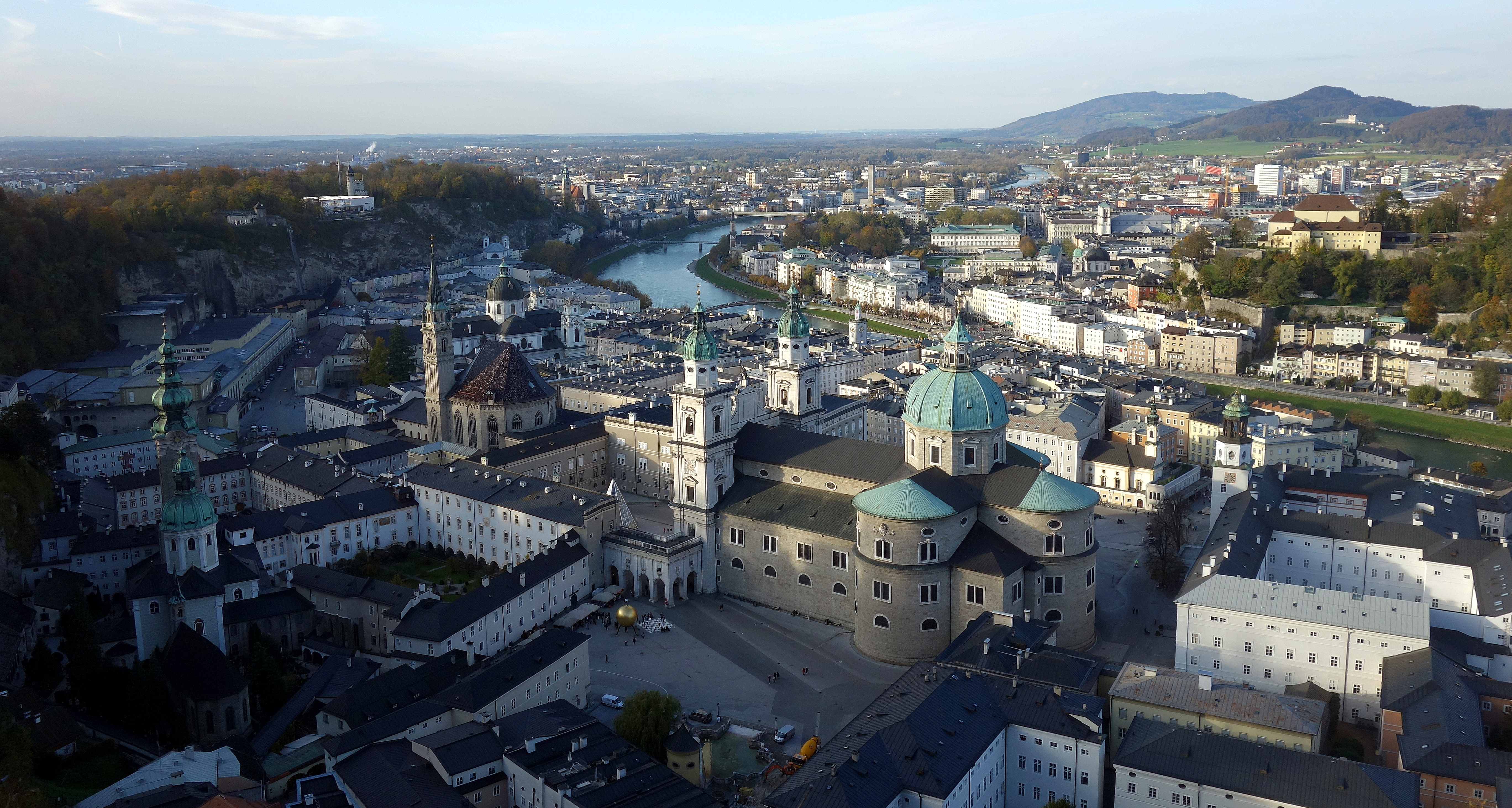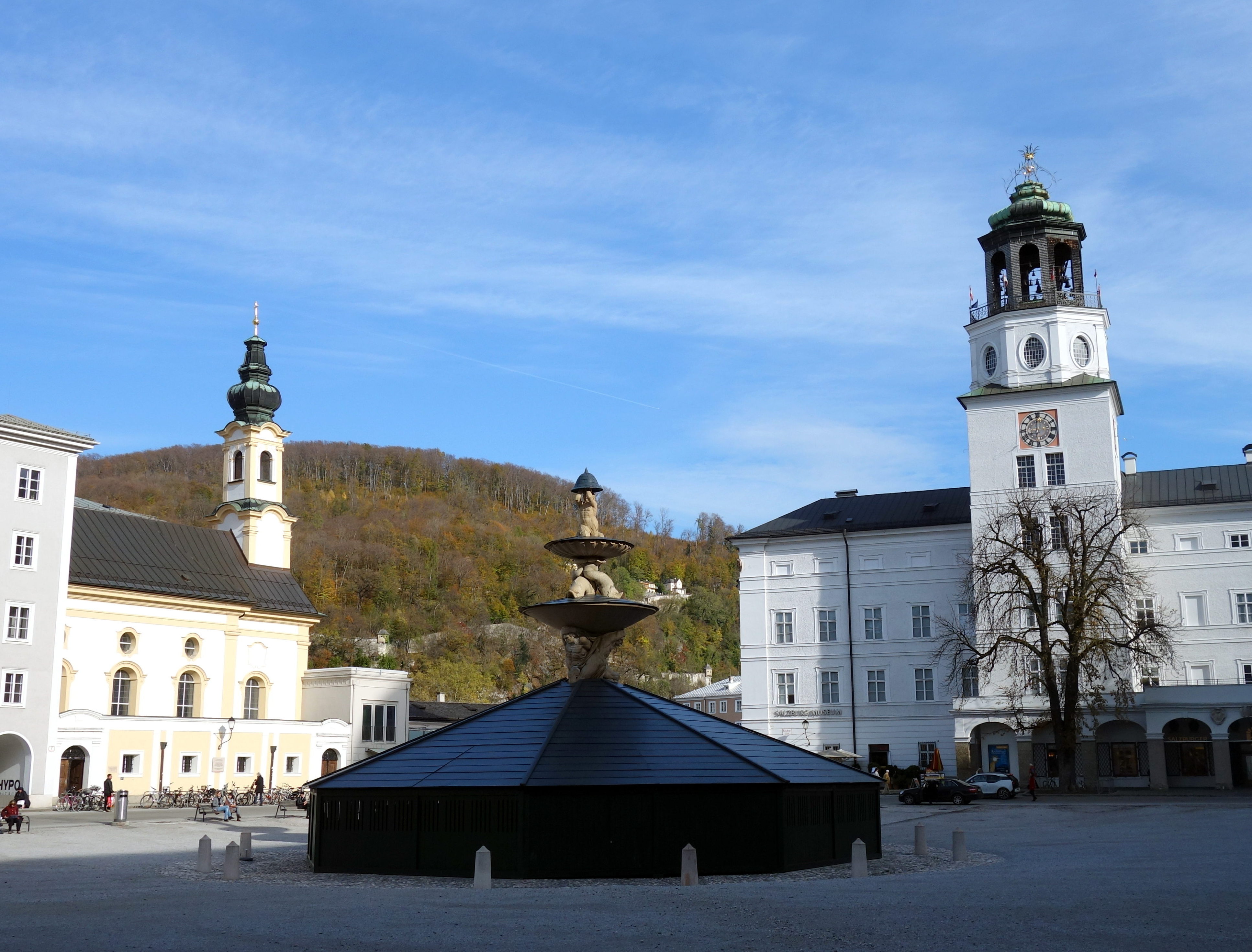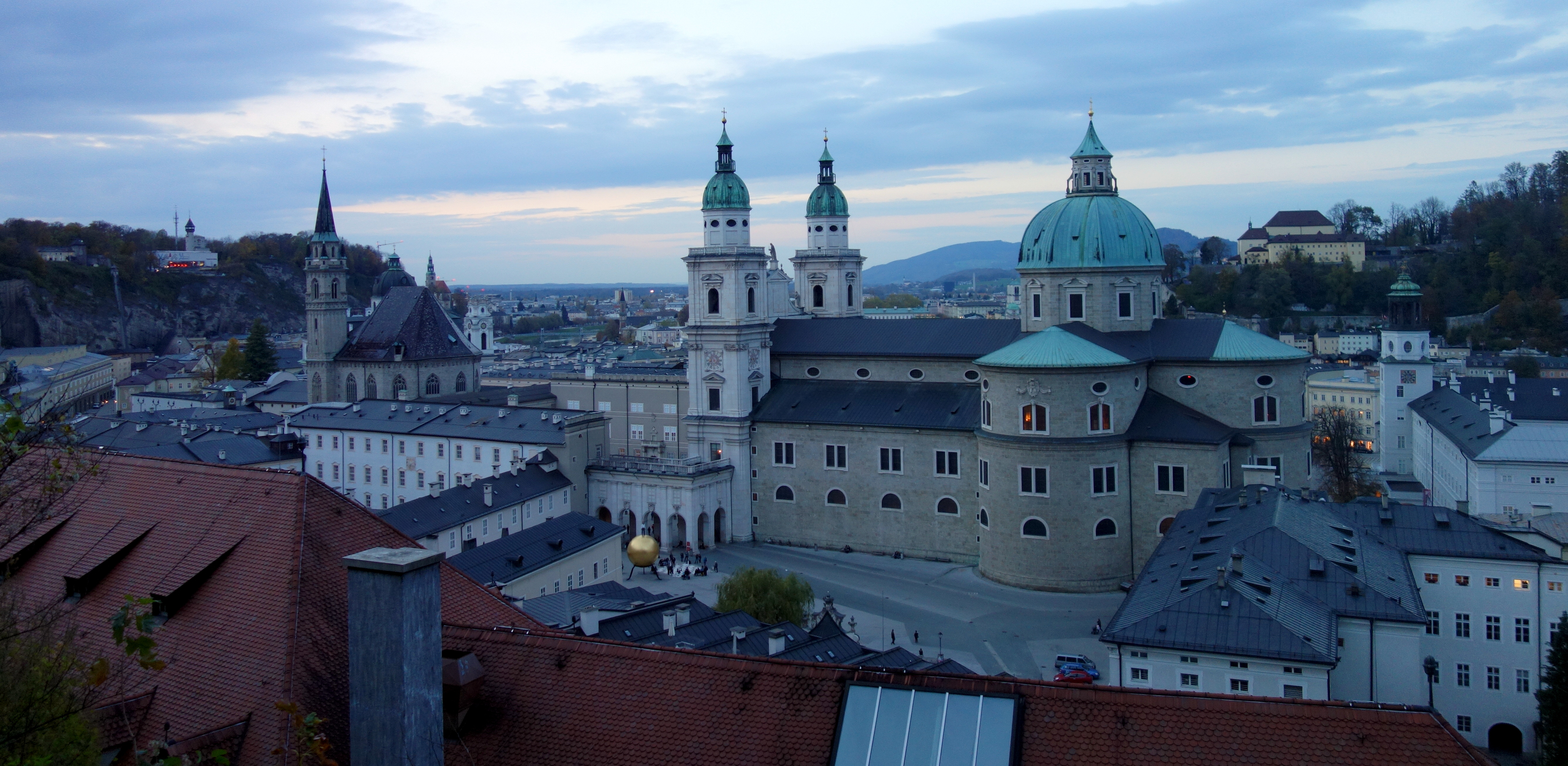 Je découvre une très jolie ville, de nombreux clochers d’églises, des petits ponts au-dessus de la rivière, des hommages à Mozart un peu partout, une immense cathédrale, une pyramide en verre comme au Louvre, des cours, des recoins…