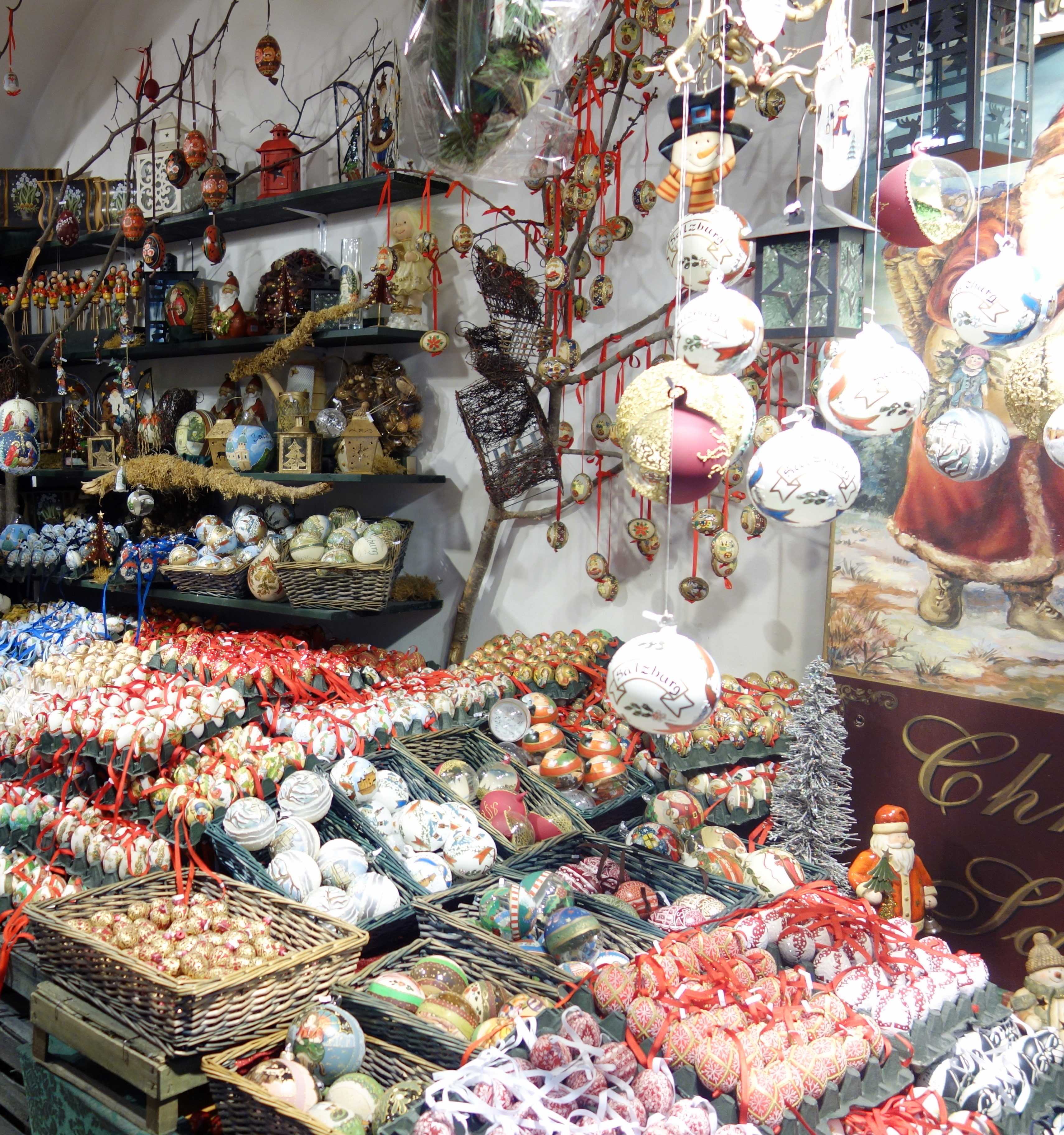 Le tour de Rick Steves m’emmène ensuite dans les ruelles de la vieille ville, ici, chaque magasin à sa propre enseigne en fer forgé, même McDonalds, même Zara ! Il faut se balader la tête en l’air pour apprécier cette spécificité, ce petit retour en arrière ! Il y a aussi de nombreux passages, des raccourcis sombres ou animés qui permettent de traverser d’une rue à l’autre sous les maisons, c’est très sympa ! Et les fameuses boutiques de boule de Noël, encombrées, colorées, c’est trop, presque flippant !