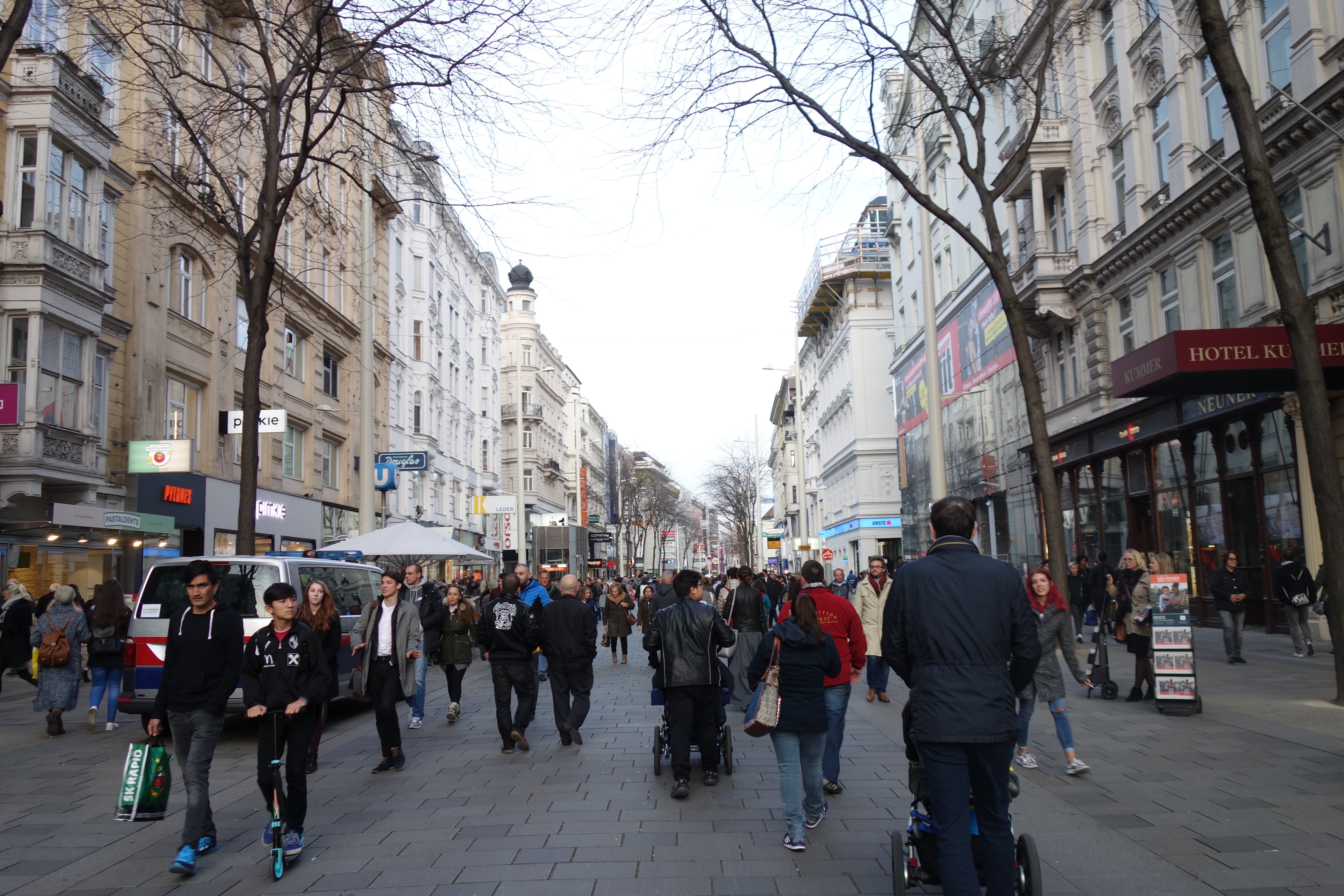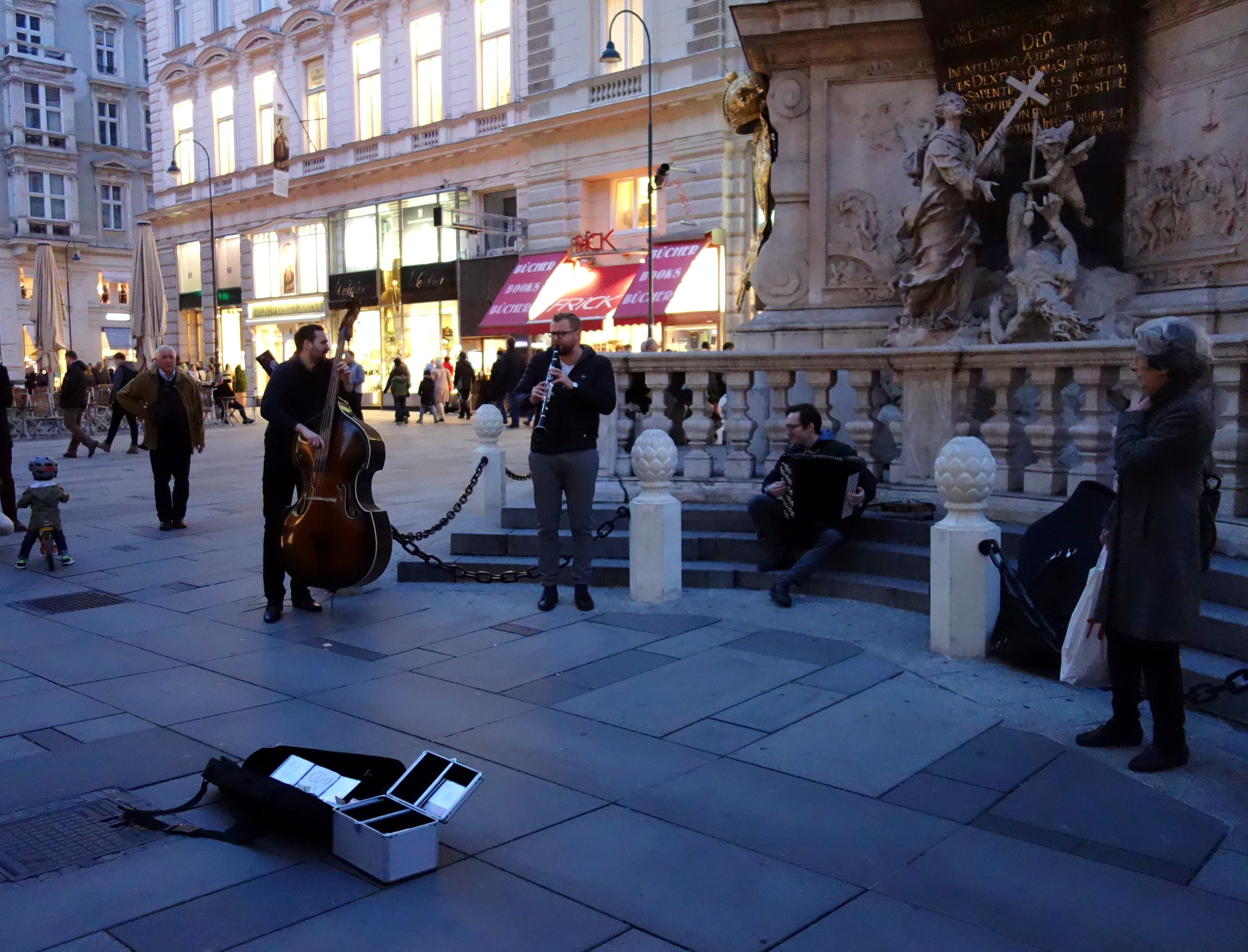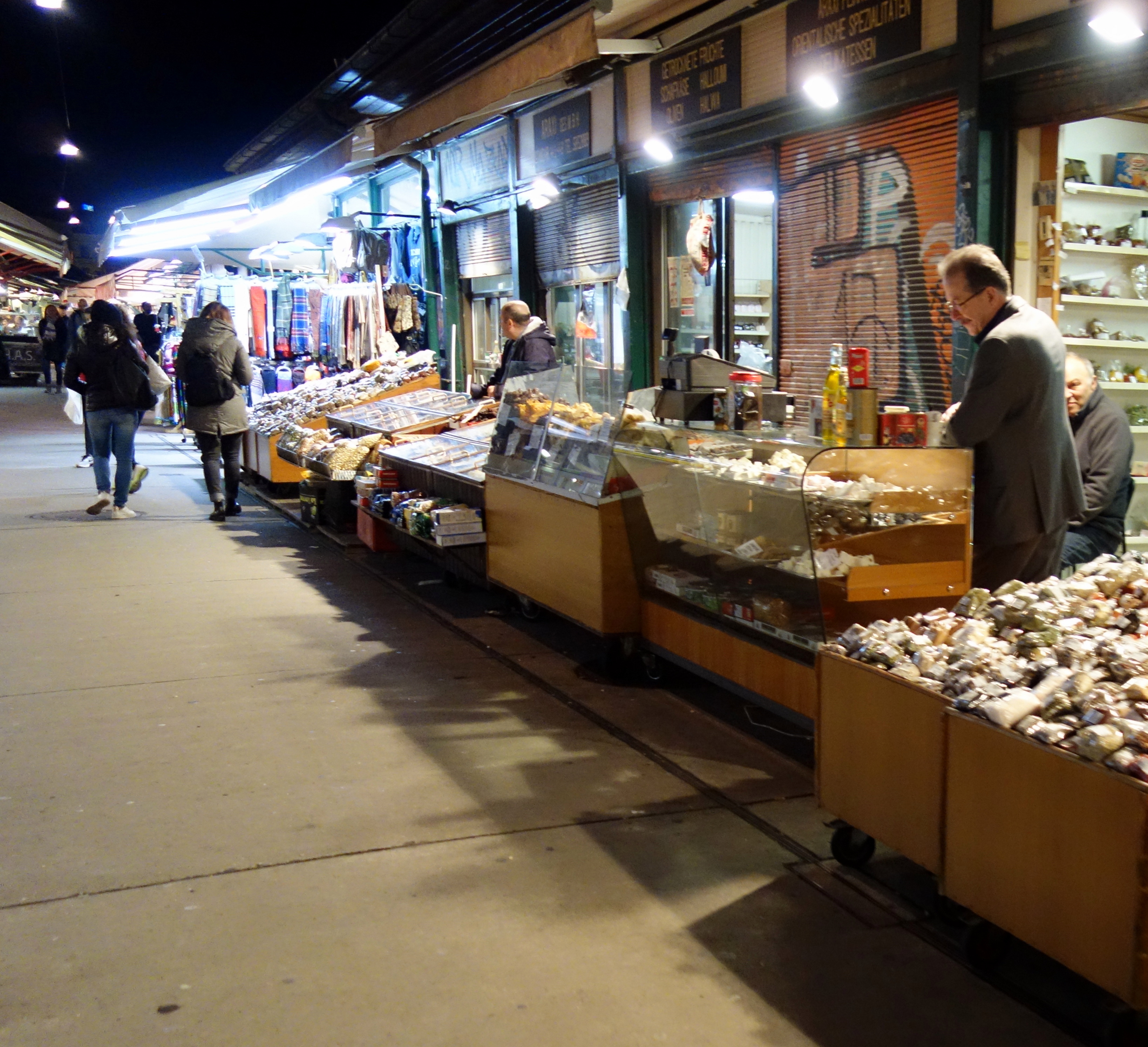 Après cette visite fort intéressante, je me promène un petit peu dans la ville alors que le soleil se cache. Je passe dans un supermarché un peu traditionnel, très classe, Julius Meinl (au rez-de-chaussée du bâtiment Wustenrot au bout de la place Graben) bien camouflé dans un grand bâtiment (merci maps.me pour l’info !). Il me rappelle le magasin Eliseevsky en Russie. Il y a des artistes de rue qui jouent de la musique, je prends le temps de les écouter, c’est beau ! J’observe les vitrines de Noël qui scintillent de mille feux, les sublimes monuments qui font le charme de cette ville éclairés la nuit, et je remonte en direction de mon auberge à travers le marché « Naschmarkt ». Une immense rue qui regorge de stands d’épices, d’olives, de fruits et légumes, souvenirs, de petits restaurants et bars, c’est vivant, coloré, très sympa !