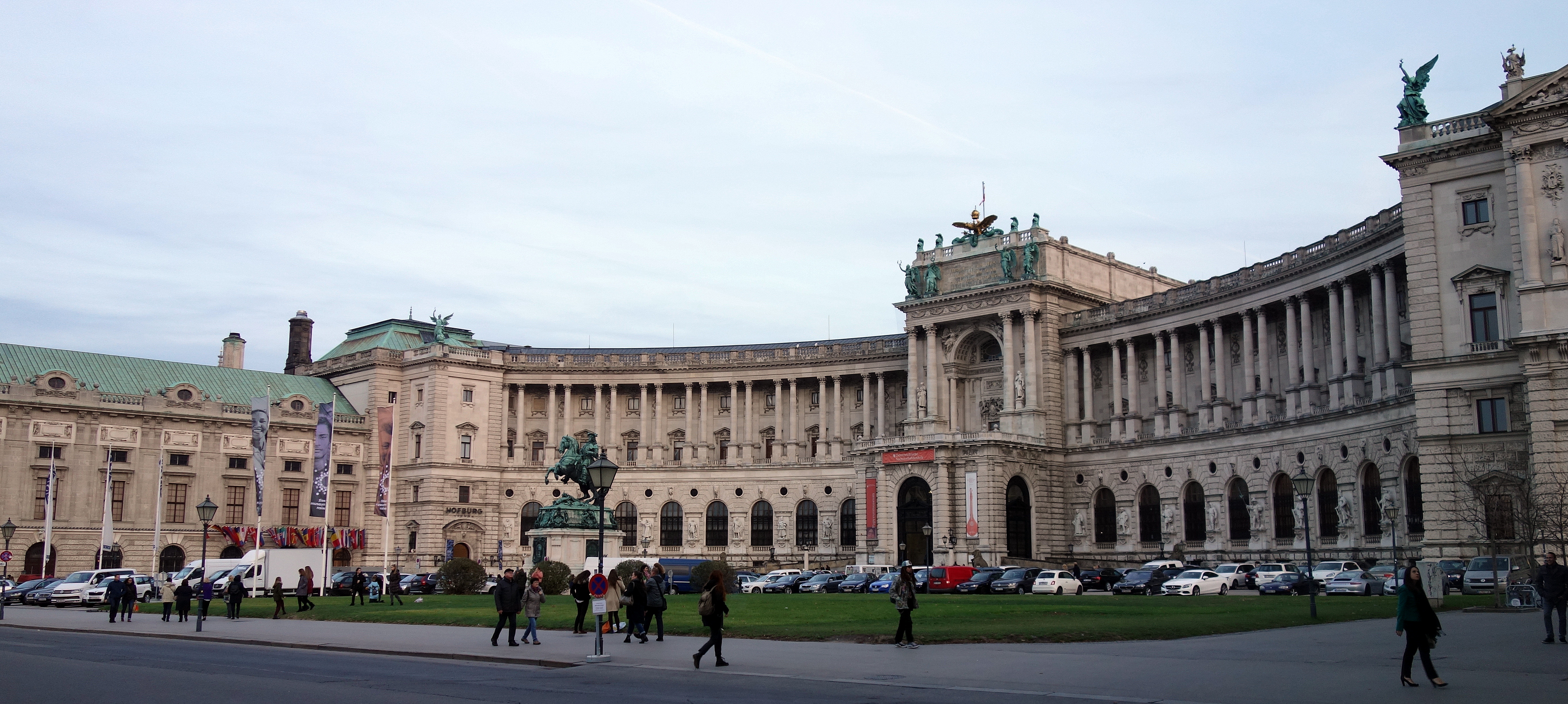 Je me fais à manger et repars (toujours à pied !) pour le tour de 14h. J’arrive juste à temps et je vois la guide s’éloigner en regardant sa montre, à 14h01 on n’était déjà plus au point de rendez-vous. Ils doivent vraiment perdre des clients comme ça…. Du coup, si vous êtes un peu en retard, le premier arrêt est à l’étage du musée Albertina, sur la terrasse, face à l’opéra. Arrivés là, on reste presque 10 minutes ! Ils feraient mieux de donner rendez-vous directement en haut… D’habitude, pour les autres tours que j’ai fait, le lieu de rendez-vous était toujours l’un des plus longs arrêts (introduction du tour, présentation générale du pays, de la ville…) ce qui permet aux “ponctuels de dernières minutes” (comme moi) de ne pas louper le départ 😉
