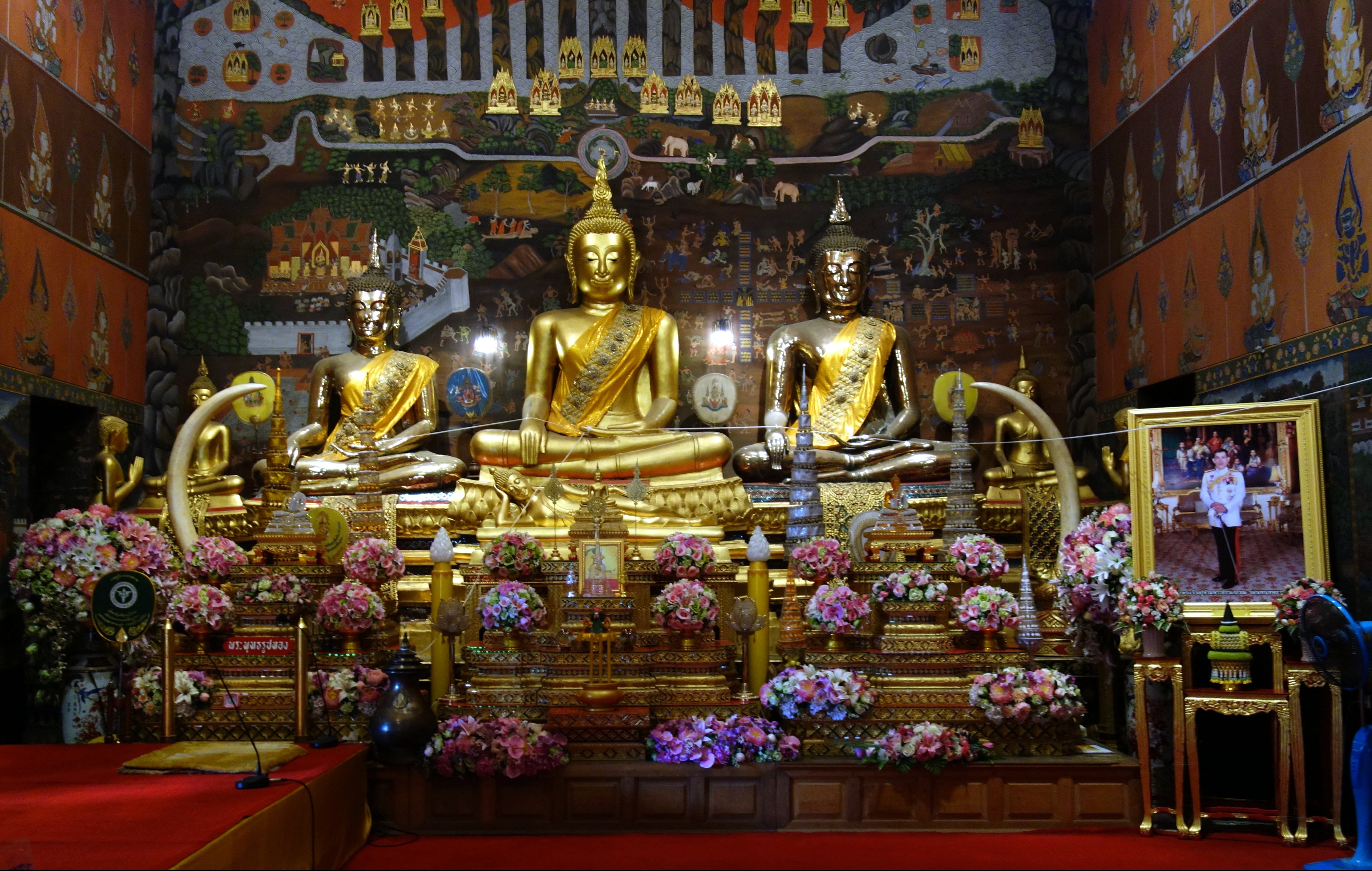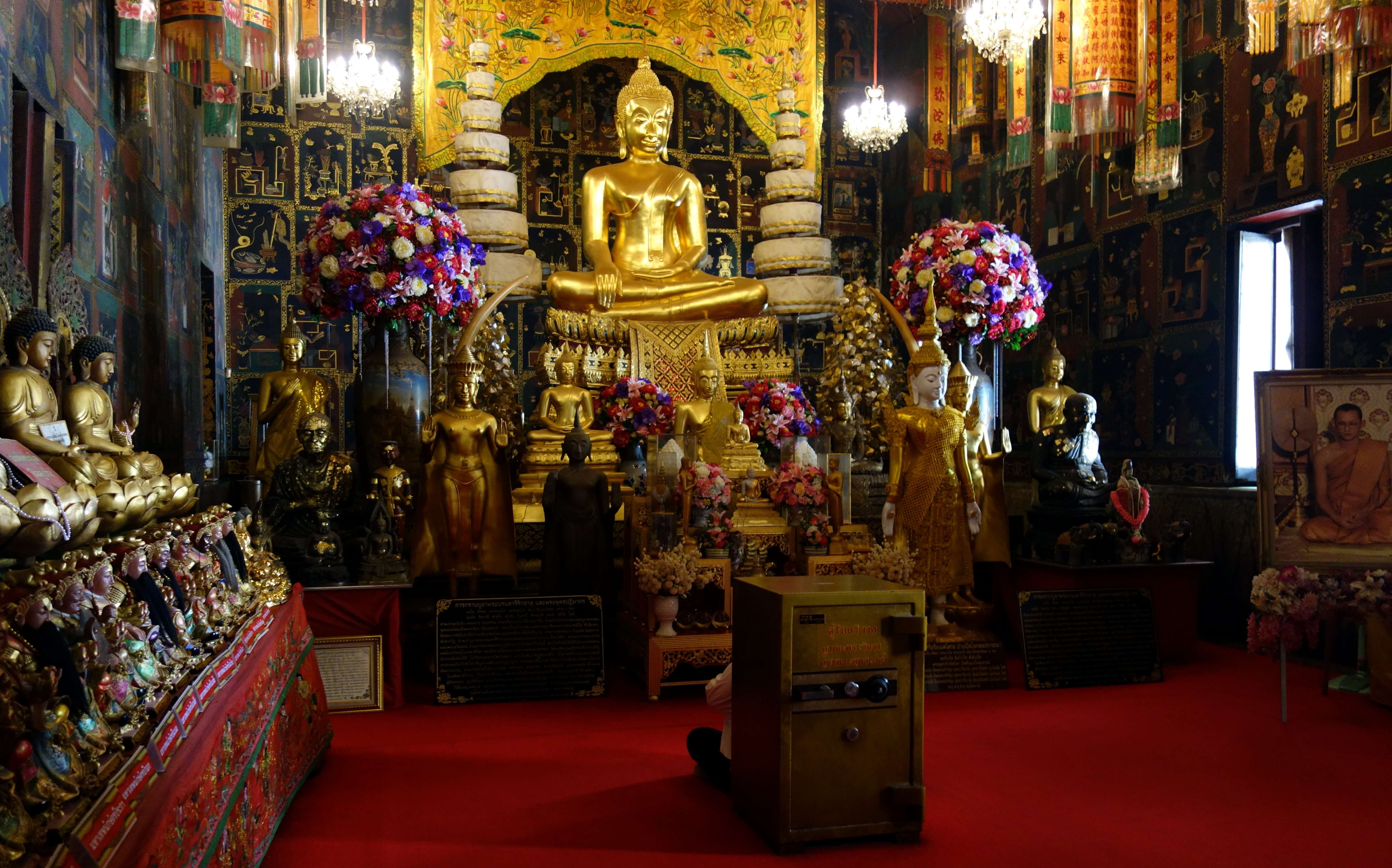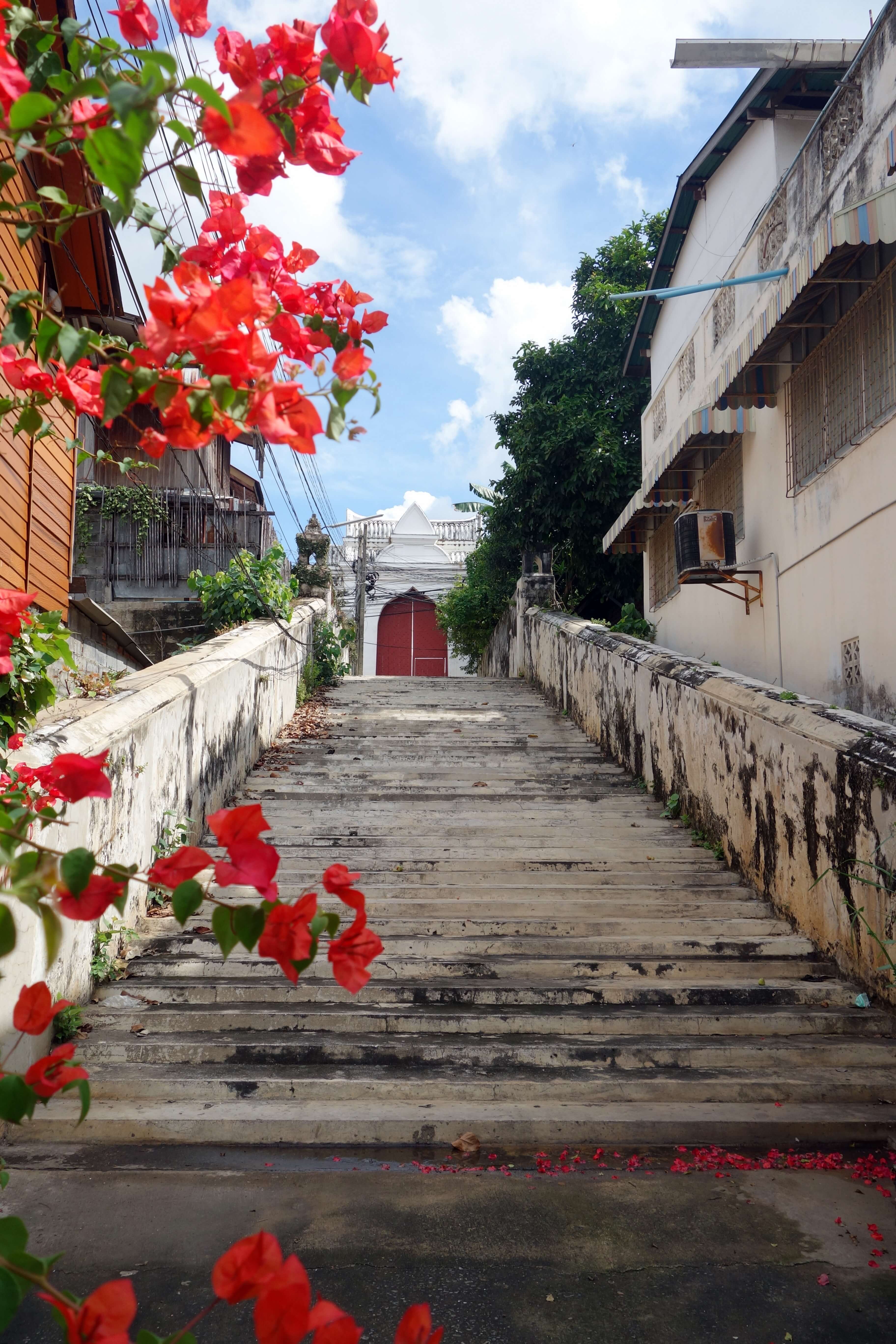 Le premier jour, je pars voir les temples en dehors de la ville avec le scooter. Scooter rose hihi! J’essaye de me perdre mais n’y arrive pas ! Je reste coincée dans la ville, impossible d’accéder à la campagne environnante je ne sais pas comment je me suis débrouillée… je vois quelques jolis temples (Wat Chai Thai Mongkol et le Wat Phanang Choeng) dans des styles très différents.