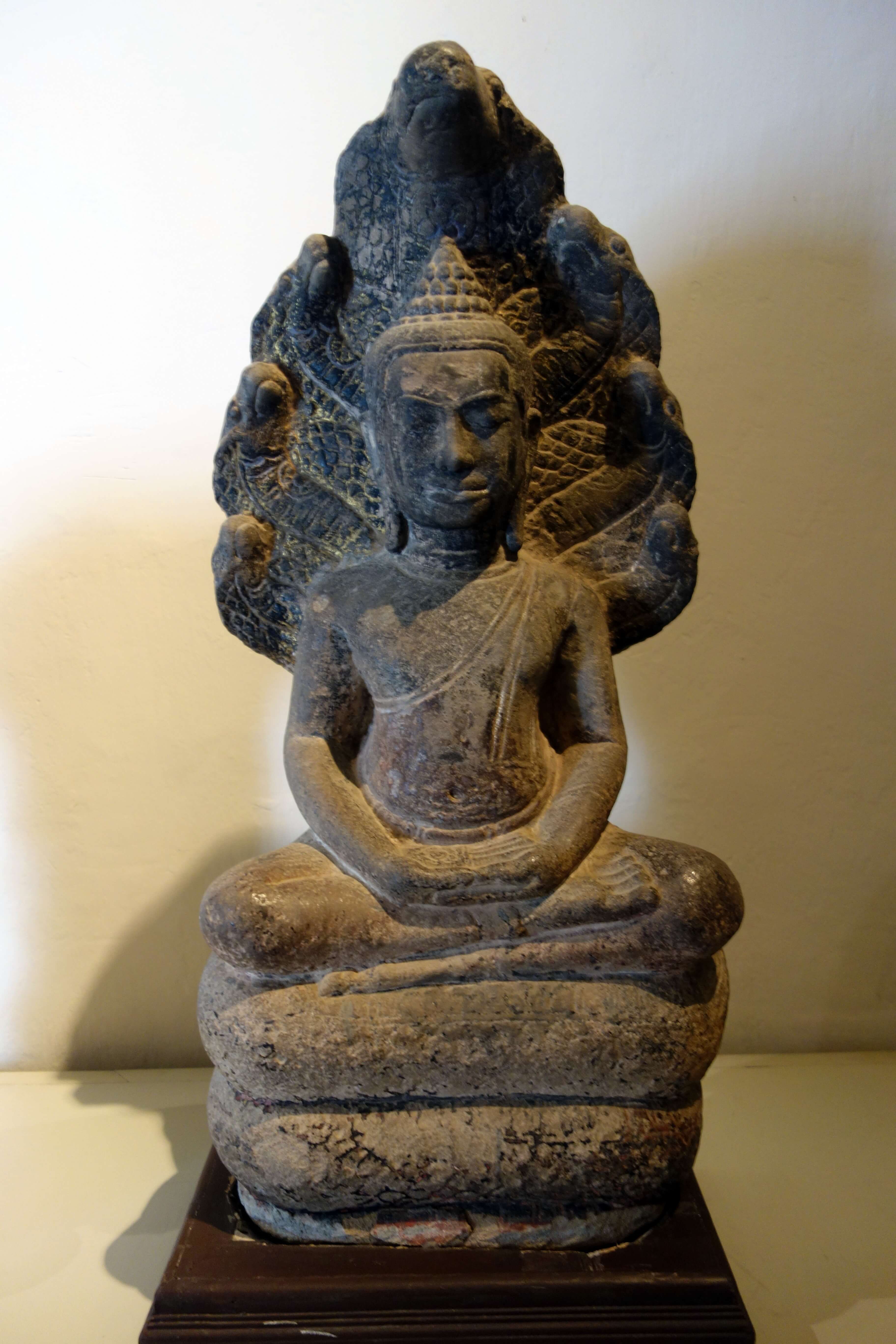 Le lendemain, je commence ma journée par la visite du musée de Lopburi. En période de deuil (suite au décès du roi), l’entrée est gratuite. Bon, il y a quand même une condition, je dois poser avec des policiers pour une photo ! Et tous les touristes doivent y passer !! Le musée est intéressant, des sculptures cham, des reconstitutions, des objets…