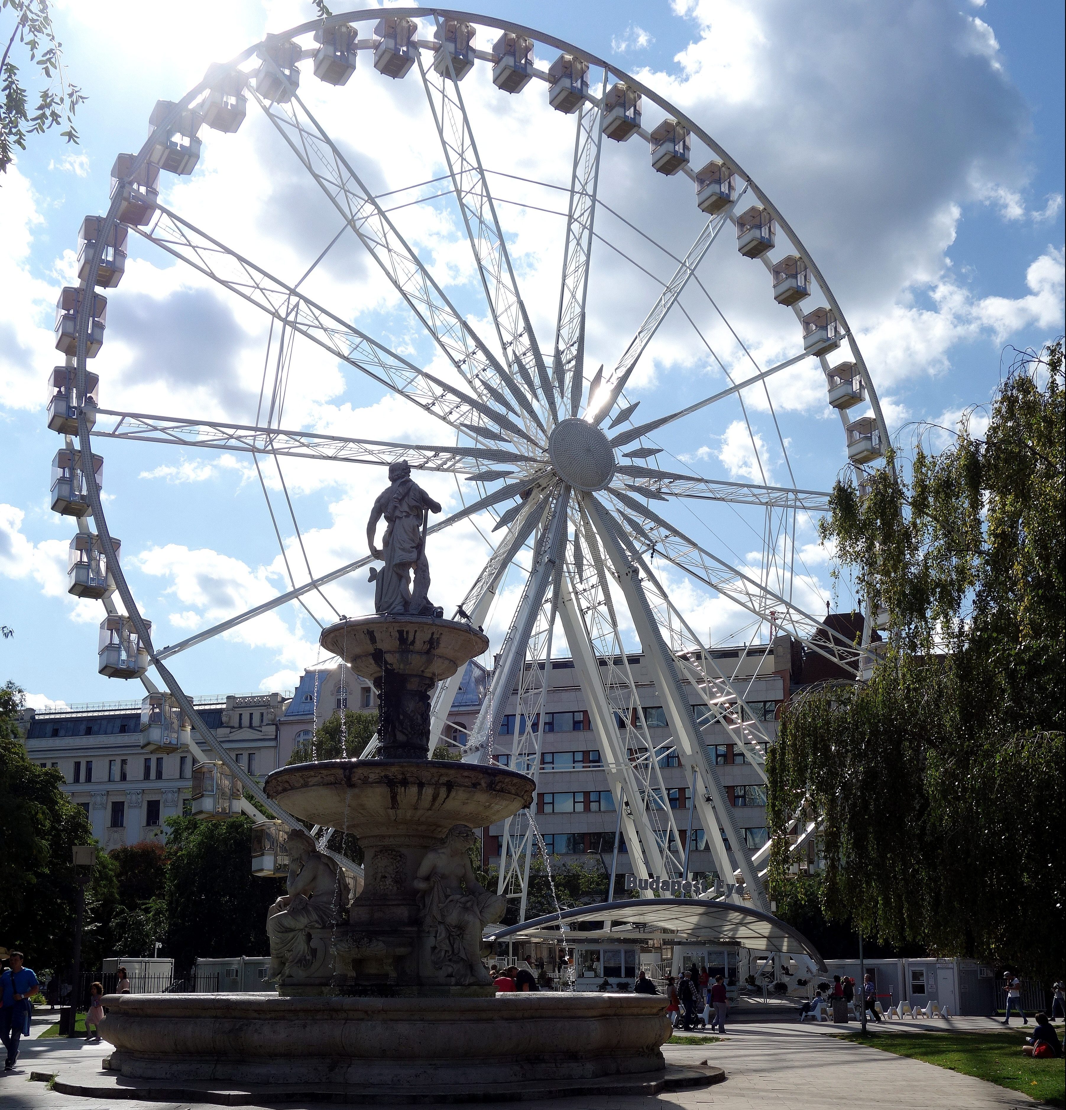 Je me suis mal organisée, j’ai oublié de réserver ma chambre à l’avance et l’auberge d’Avenue est pleine, sniff 🙁 Je quitte tout le monde un peu triste et marche 2km jusqu’à l’île Marguerite au milieu du Danube. L’île est trop mignonne, toute verte, bien entretenue, très vivante, on est samedi, il y a des familles partout, des jeunes avec des bières, de la musique… C’est hyper vivant ! Mon auberge est sympa car elle a des transats et des hamacs sur la terrasse. J’ai bien besoin de repos après ces 6 derniers jours mouvementés ! Je passe l’après-midi à bouquiner / somnoler au soleil. En fin d’aprèm, je pars marcher sur l’île. J’achète un langos, spécialité d’ici : un genre de beignet à churros plat (salé) sur lequel ils mettent de la crème et du gruyère, pas fondu… C’est bon, enfin c’est surtout gras, pas un truc exceptionnel non plus… Je me retrouve face au spectacle de la fontaine musicale, c’est trop biiiiien ! Toutes les heures, 4 musiques s’enchainent et un spectacle son et lumière est joué au milieu du parc. C’est gratuit et chaque heure est différente. Je suis allée voir celui de 20h, et mes musiques sont : Ed Sheeran, Shape of you ; Justin Timberlake, Can’t stop the feeling ; Steppenwolf, Born to be wild ; The Rolling Stones, 19th Nervous breakdown. Super sympa vraiment !