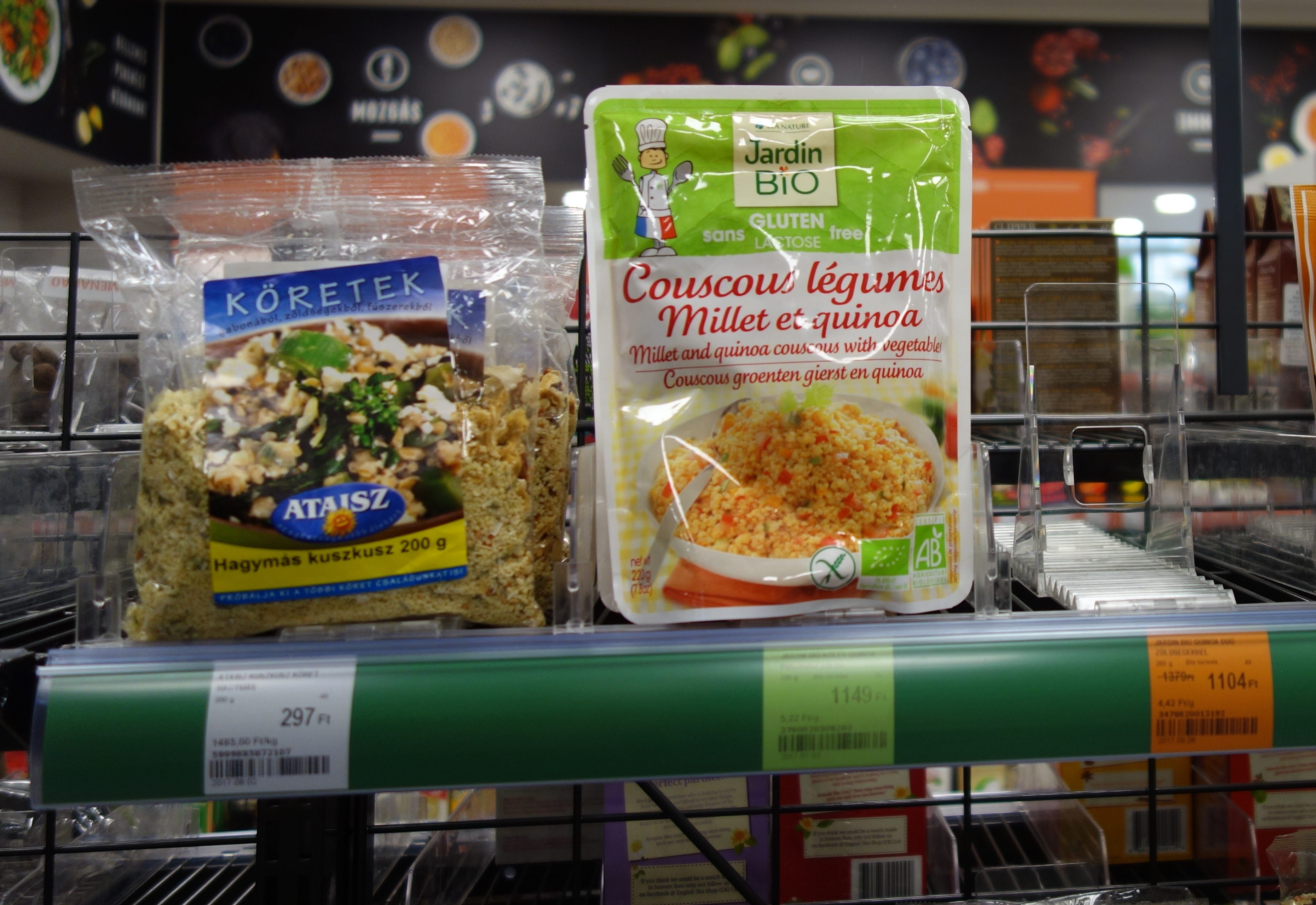 Je résiste à l’appel de la France mais rentre quand même dans un grand magasin bio (vegan, raw, sans gluten, sans sucre, sans lactose… tout y est), déformation professionnelle oblige, je regarde toutes les marques de thés, de sauces tomates… Tous les produits me rappelant mon année à Jardin Bio, et là, sans m’y attendre je me retrouve face à 2 produits que je connais bien !!! Mais qu’est-ce qu’ils font là ?! Même prix qu’en France, très cher pour la Hongrie …