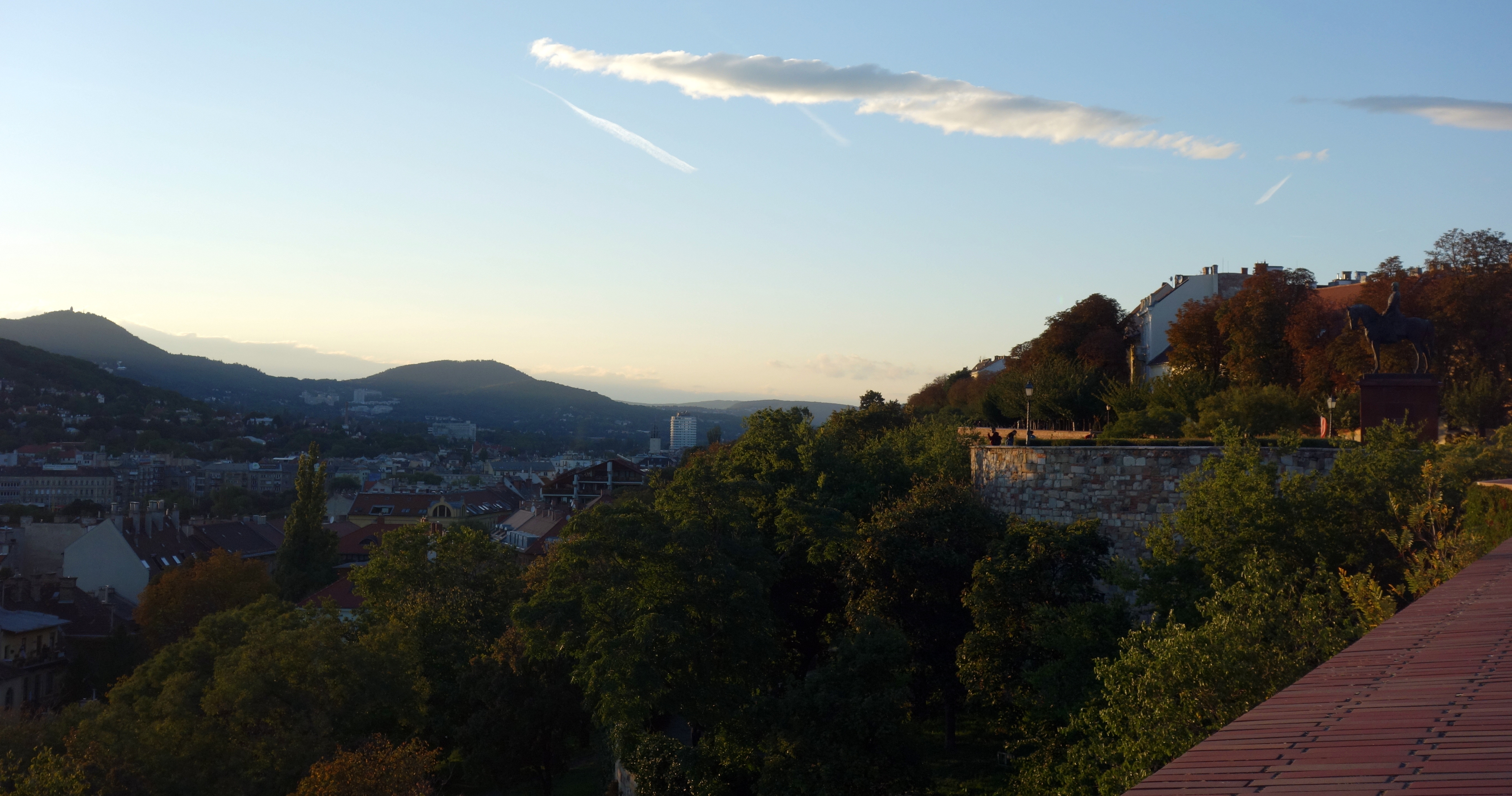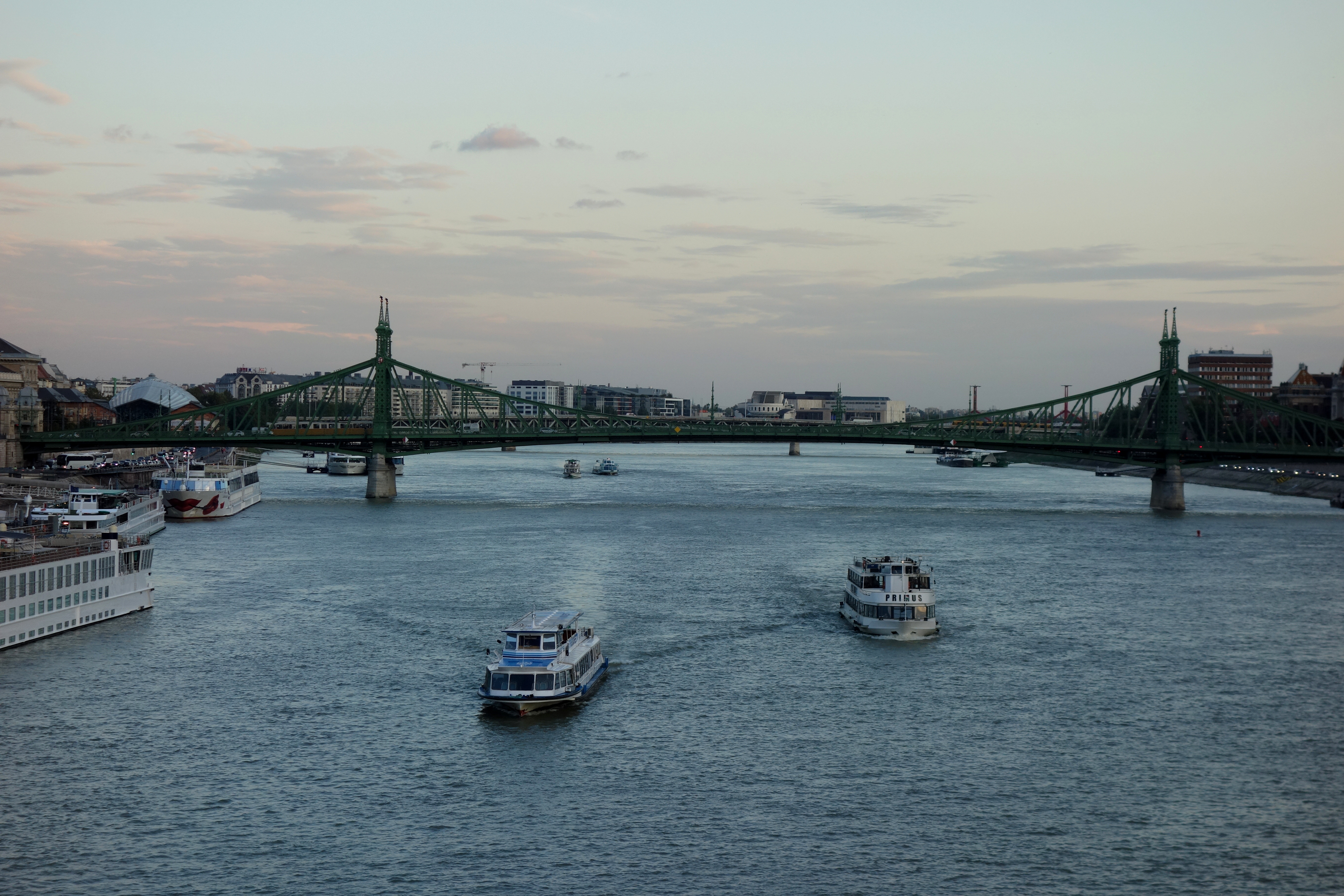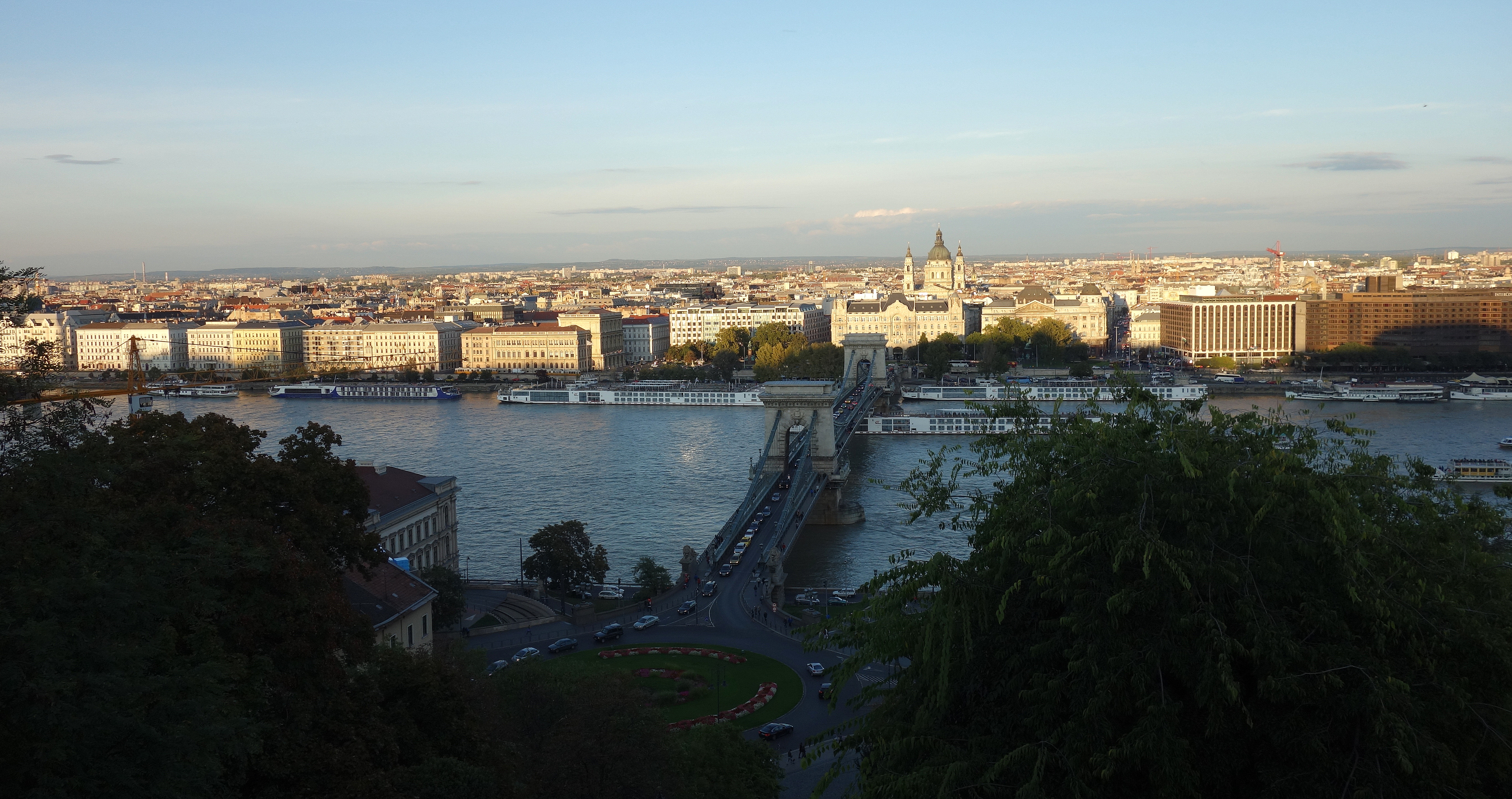 Puis je m’assois dans le tram côté fenêtre. Le trajet dure une grosse dizaine de minutes, la ville est éclairée par les premiers rayons du soleil, il n’y a personne dans les rues, j’aperçois la statue de la liberté, les thermes, les nombreux ponts… Je tombe immédiatement sous le charme du Danube qui sépare la ville en deux.