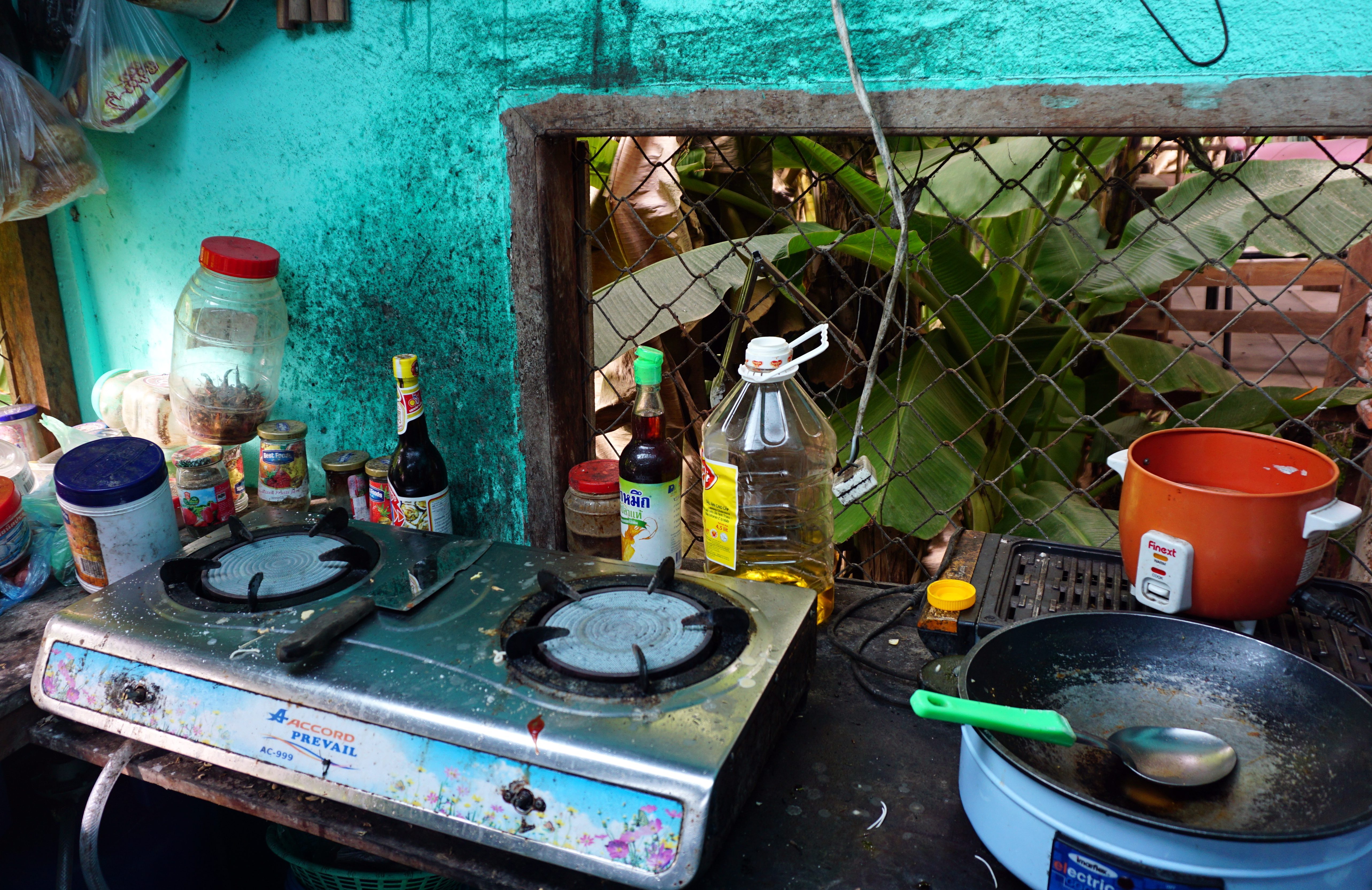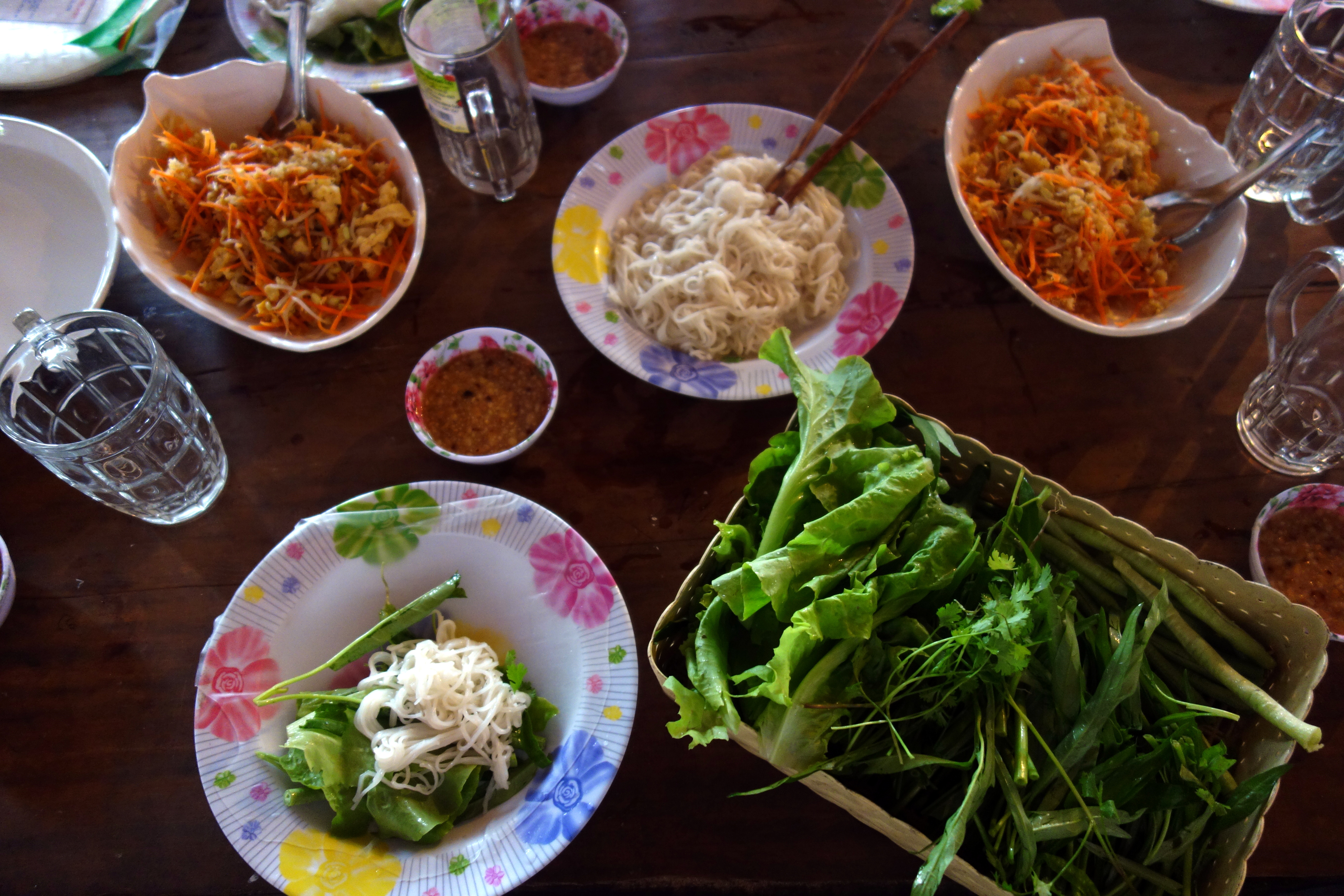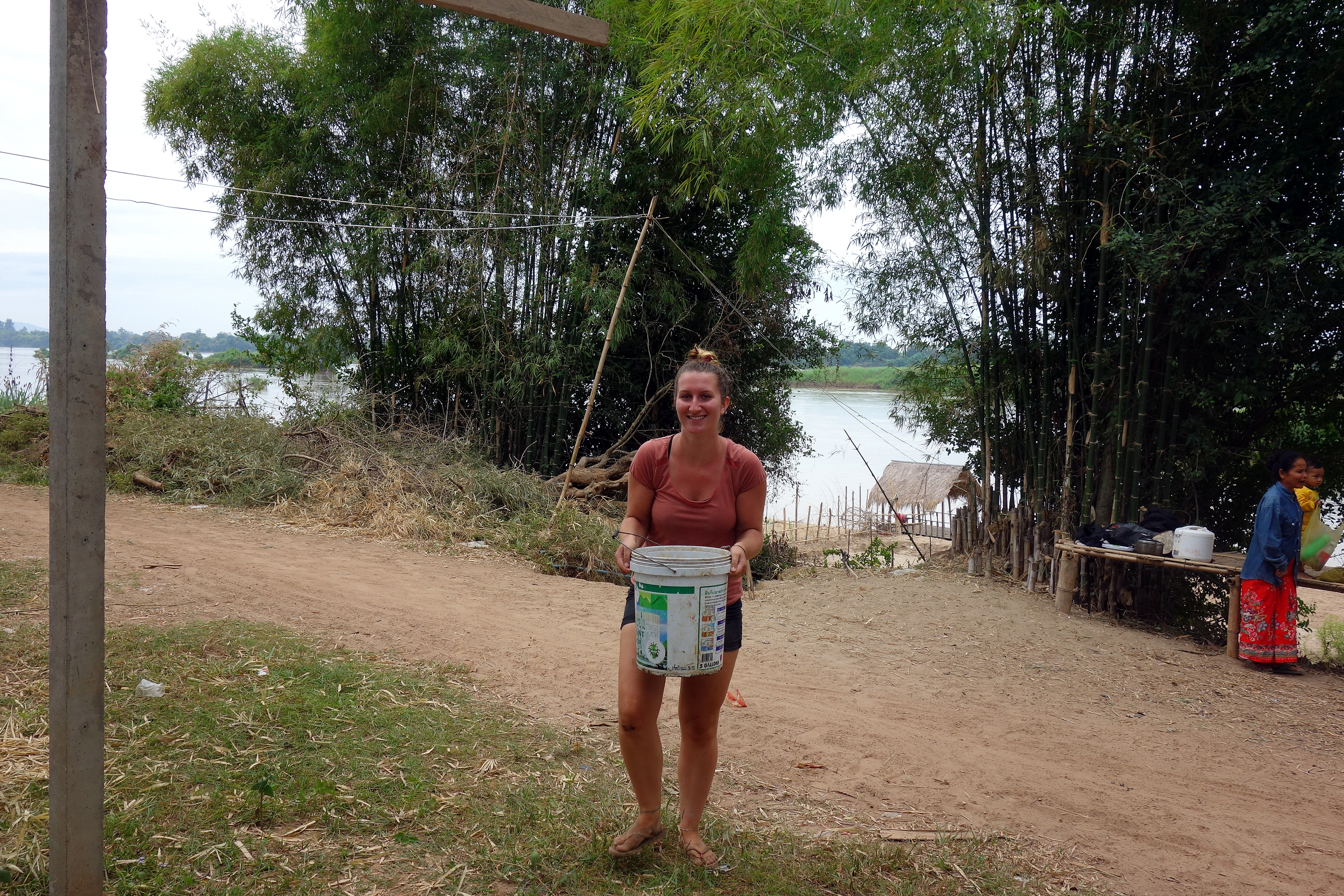 Au sein du restaurant/école/maison, on vit avec Vien, sa femme qui ne parle pas anglais et leurs deux enfants : Jamie (1 an et demi) et Candy (3 semaines !). C’est elle qui nous cuisine de bons repas ! Elle est toujours souriante malgré les nombreux Français qui vivent carrément dans sa maison et ses deux petits qui réclament son attention jour et nuit. On tente de l’aider au maximum, que ce soit en cuisine ou avec les enfants mais la communication reste compliquée …