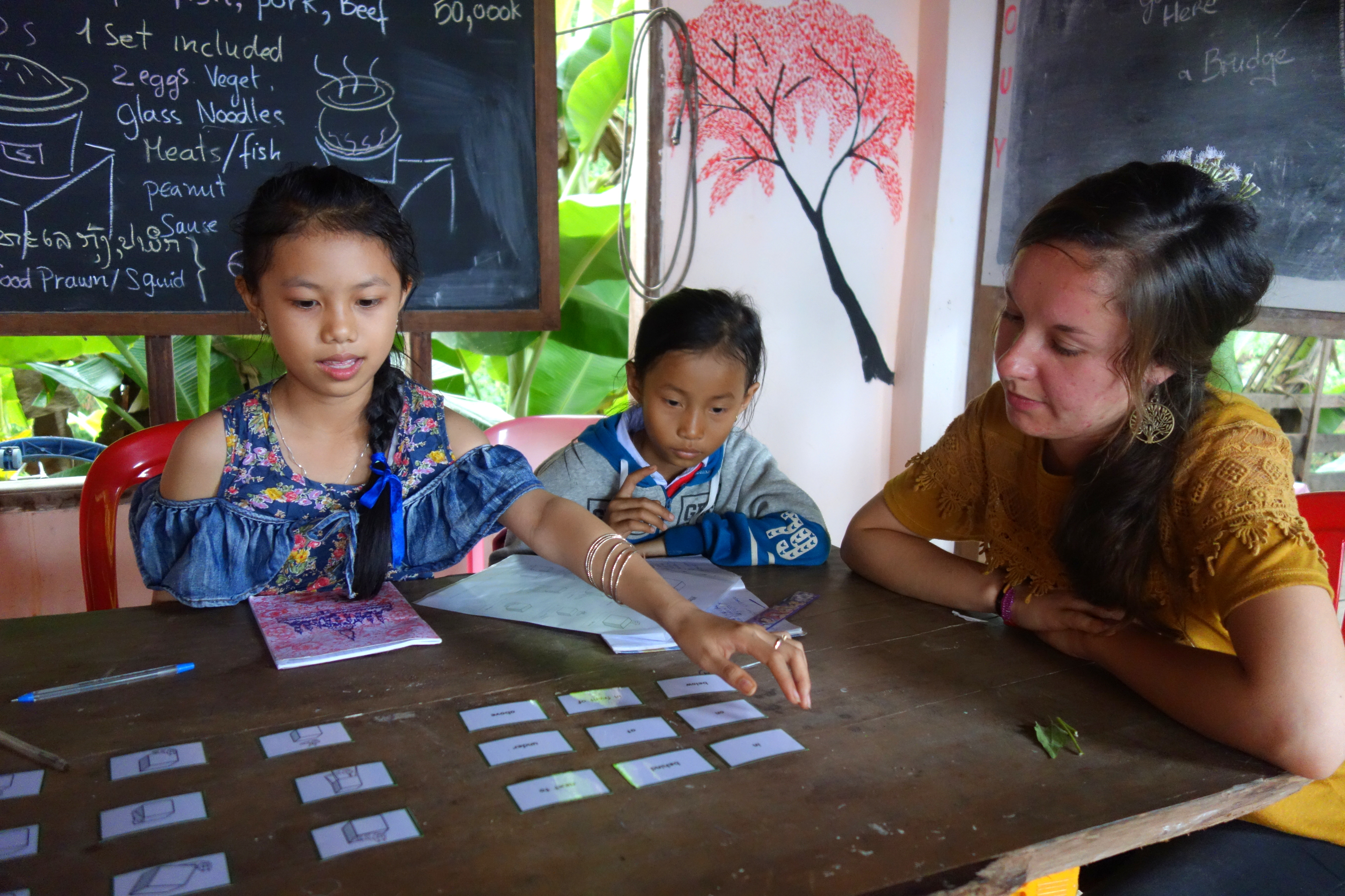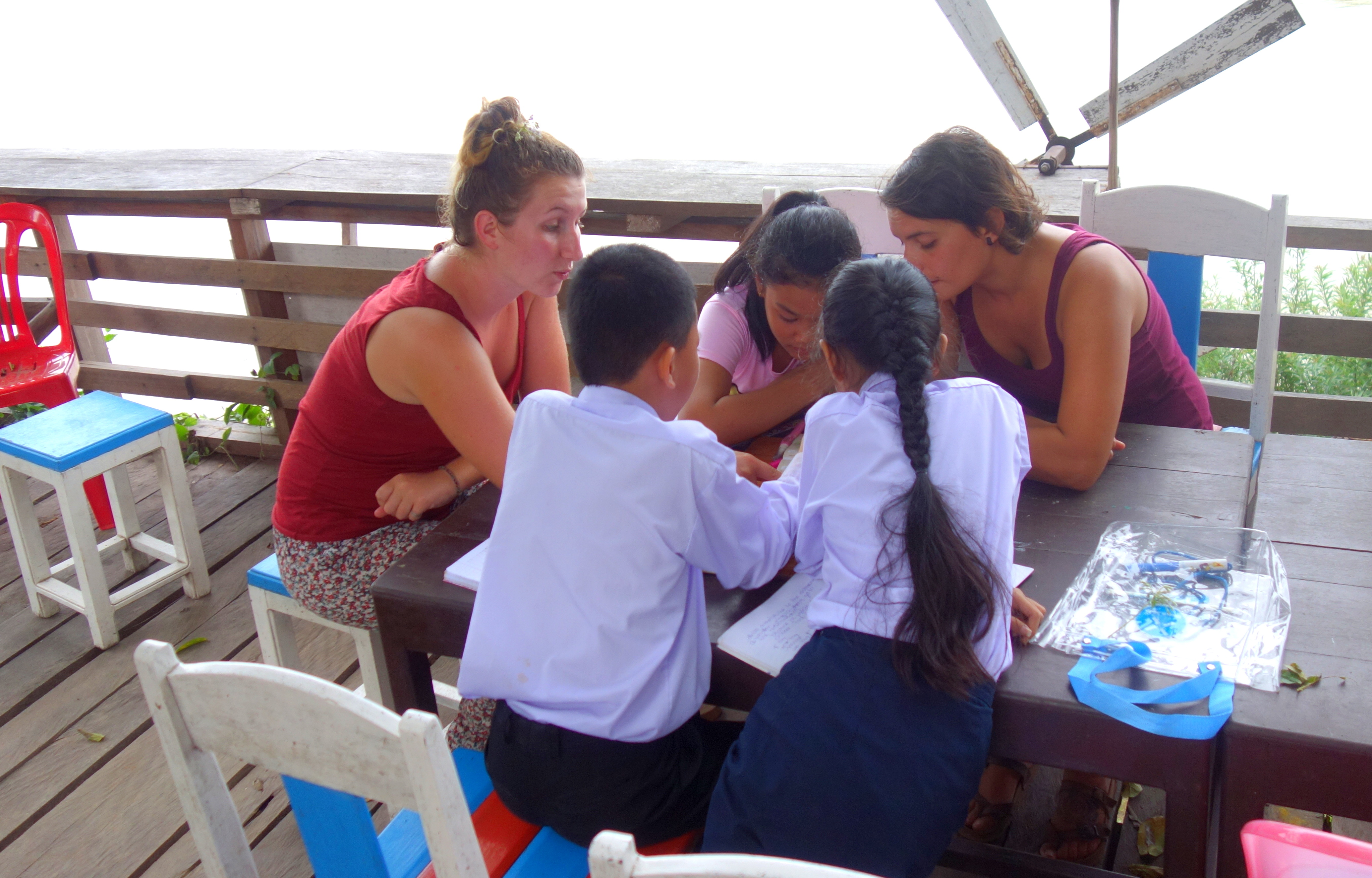 Bon la vérité, c’est qu’on n’a pas fait la moitié de la to do list, on n’a pas visité l’île, on ne s’est pas baignés ni dans la piscine ni dans le Mékong mais on a fait plein d’autres choses (vachement mieux !). ET on a fait le programme d’anglais, on a été des volontaires au taquet !