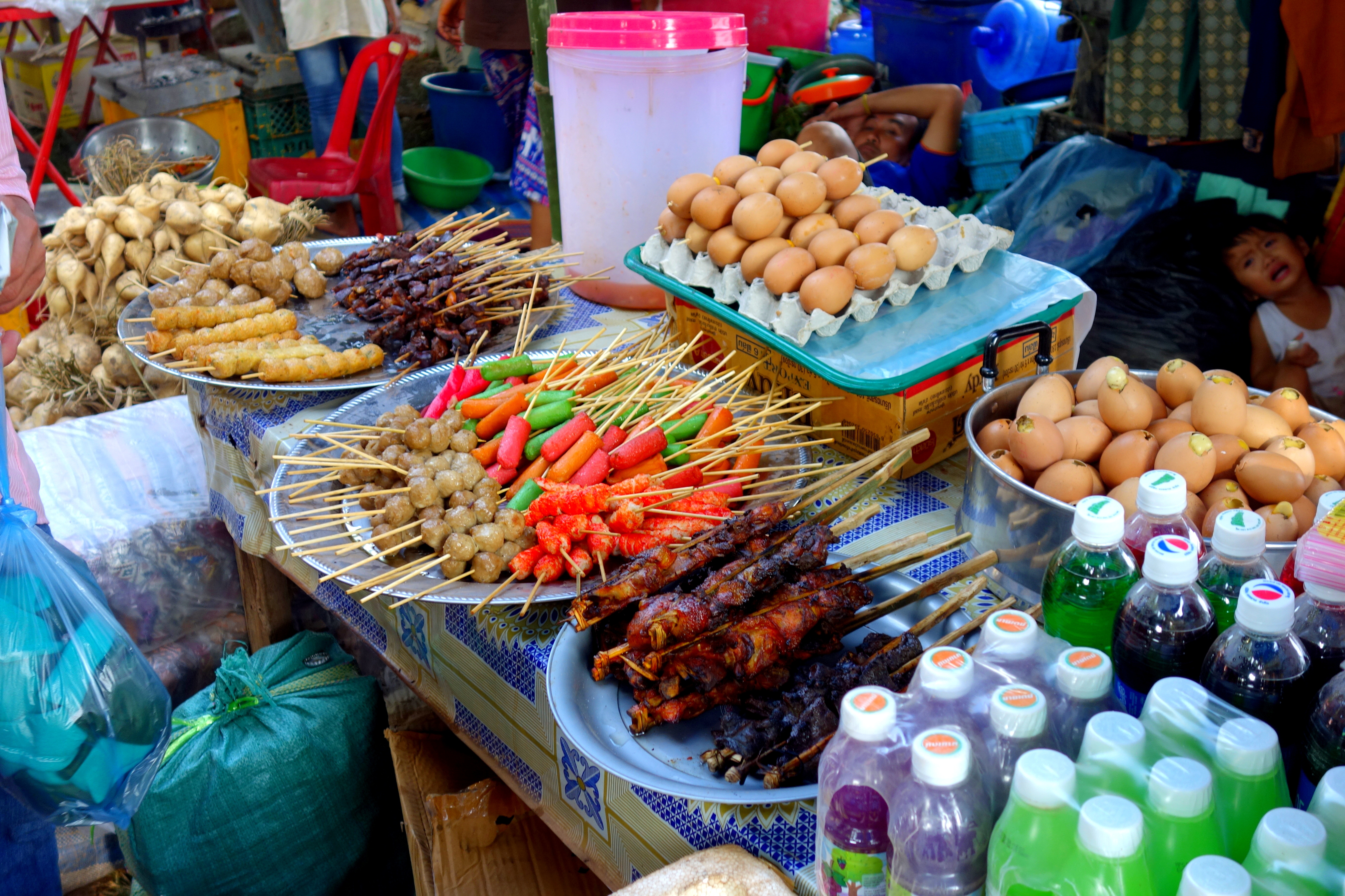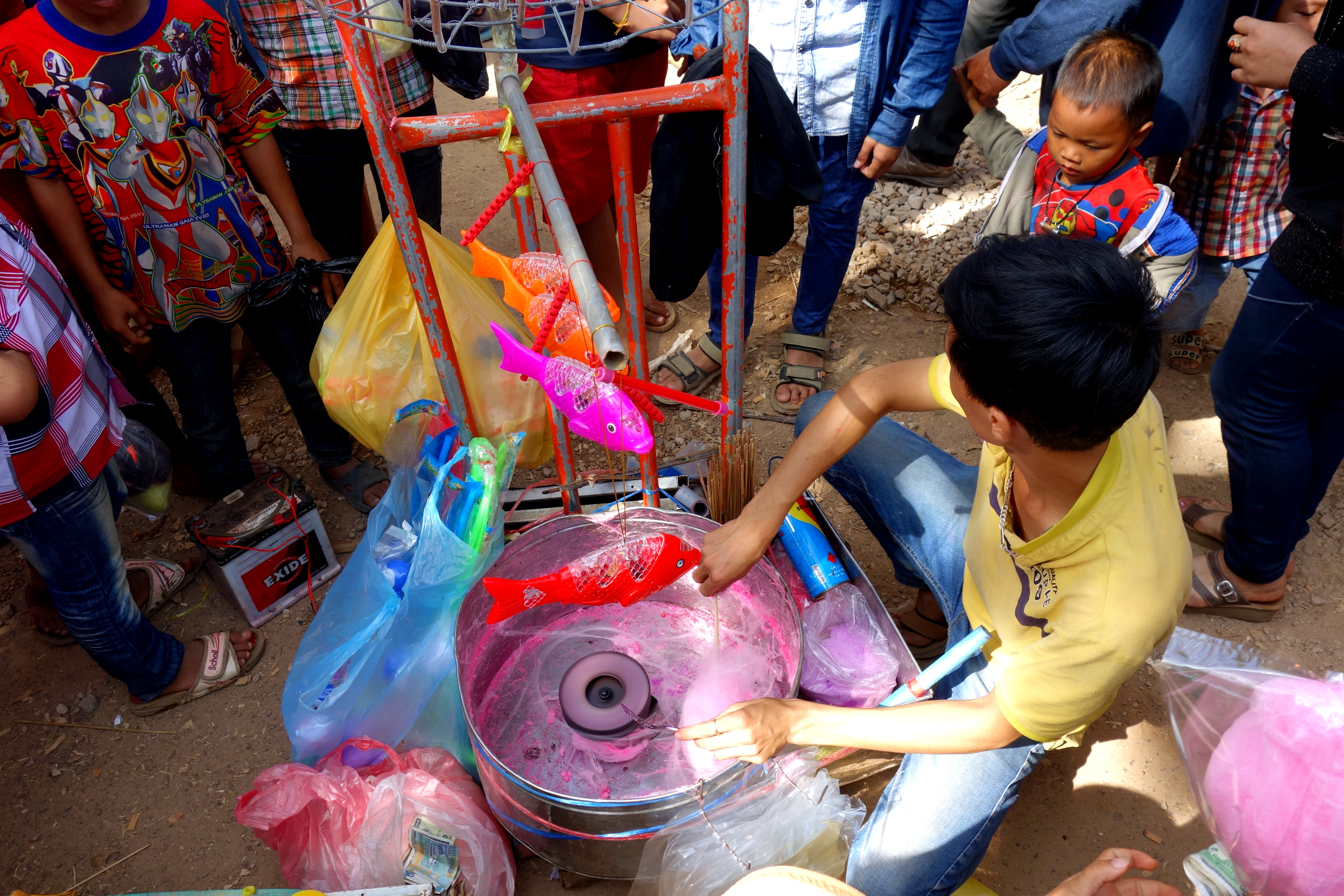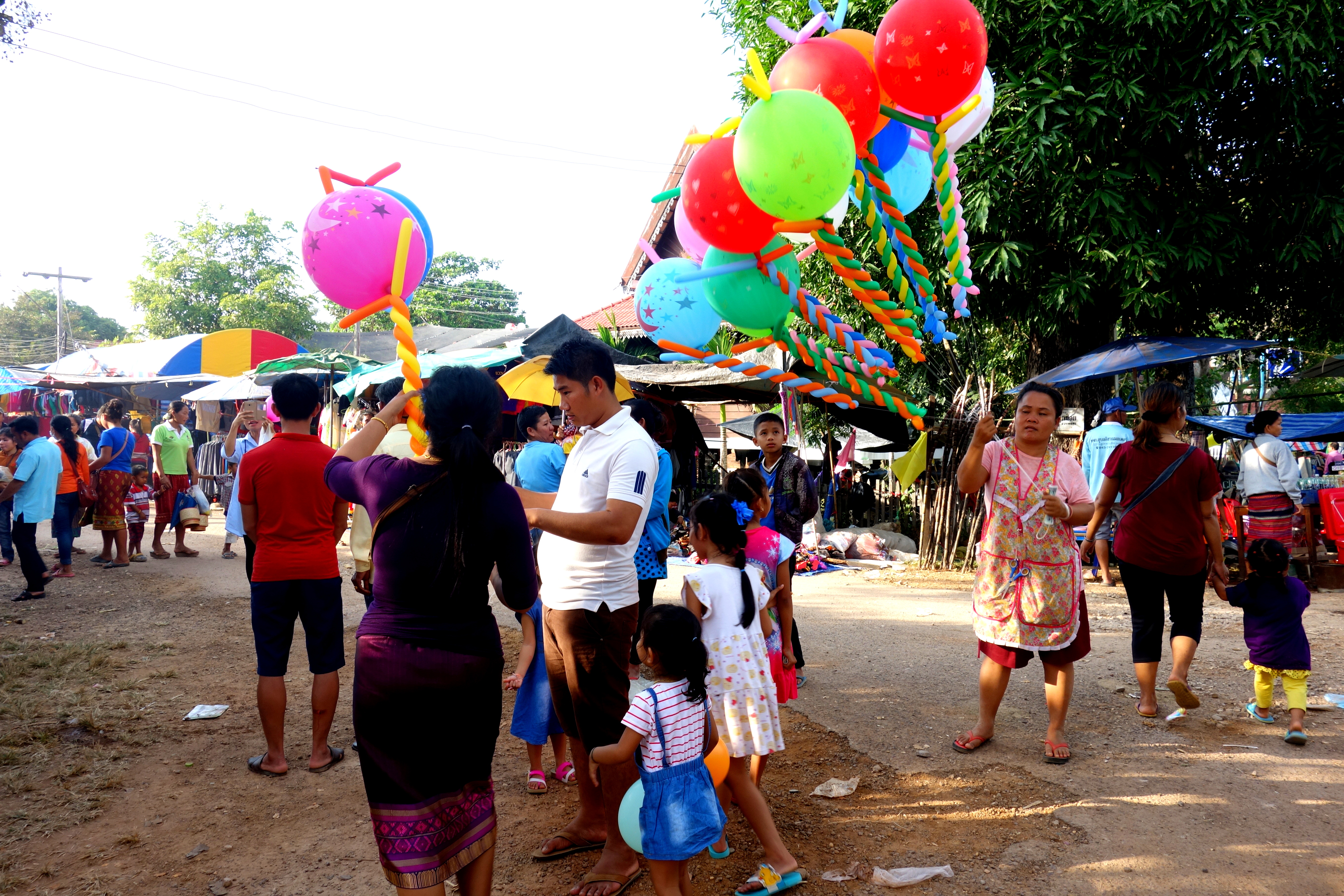 Sur la foire on retrouve des stands de fringues, de bouffe, des châteaux gonflables, des tirs à la carabine, des barbes à papa, des crêpes et bien sûr, la bière coule à flot !! Sur le marché, certains vendeurs viennent de Vientiane, la capitale du Laos qui se trouvent à plus de 700 km de là ! C’est complètement fou!