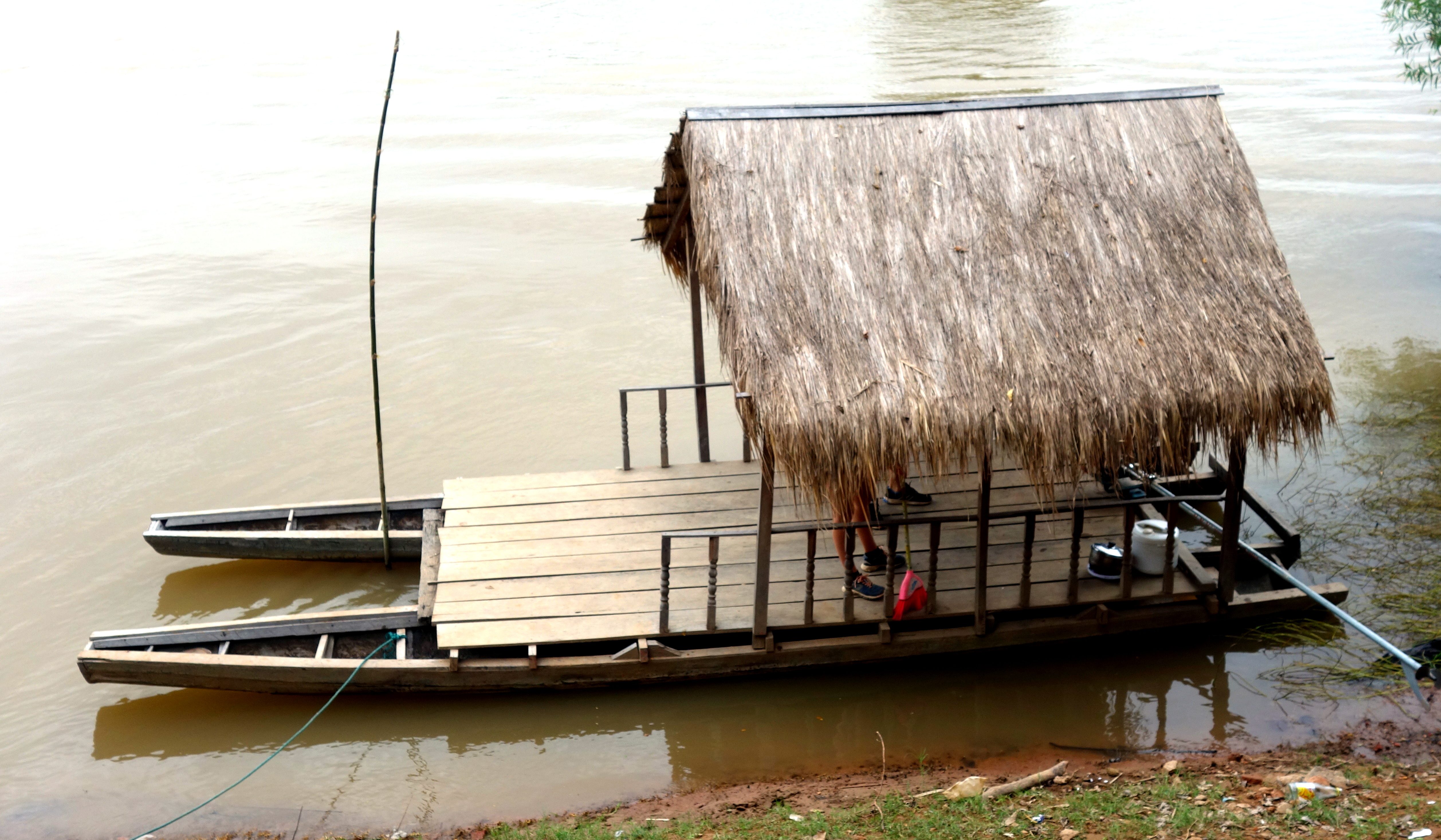 Je prends un bateau pour me rendre d’une île à l’autre. Je suis avec un couple qui descend après 10 minutes. Je fais donc toute la remontée du Mékong, pendant plus d’une heure, seule avec le chauffeur. Il tente d’engager une discussion mais son Anglais est limité et mon Lao inexistant (après 7 semaines, j’ai honte !!).