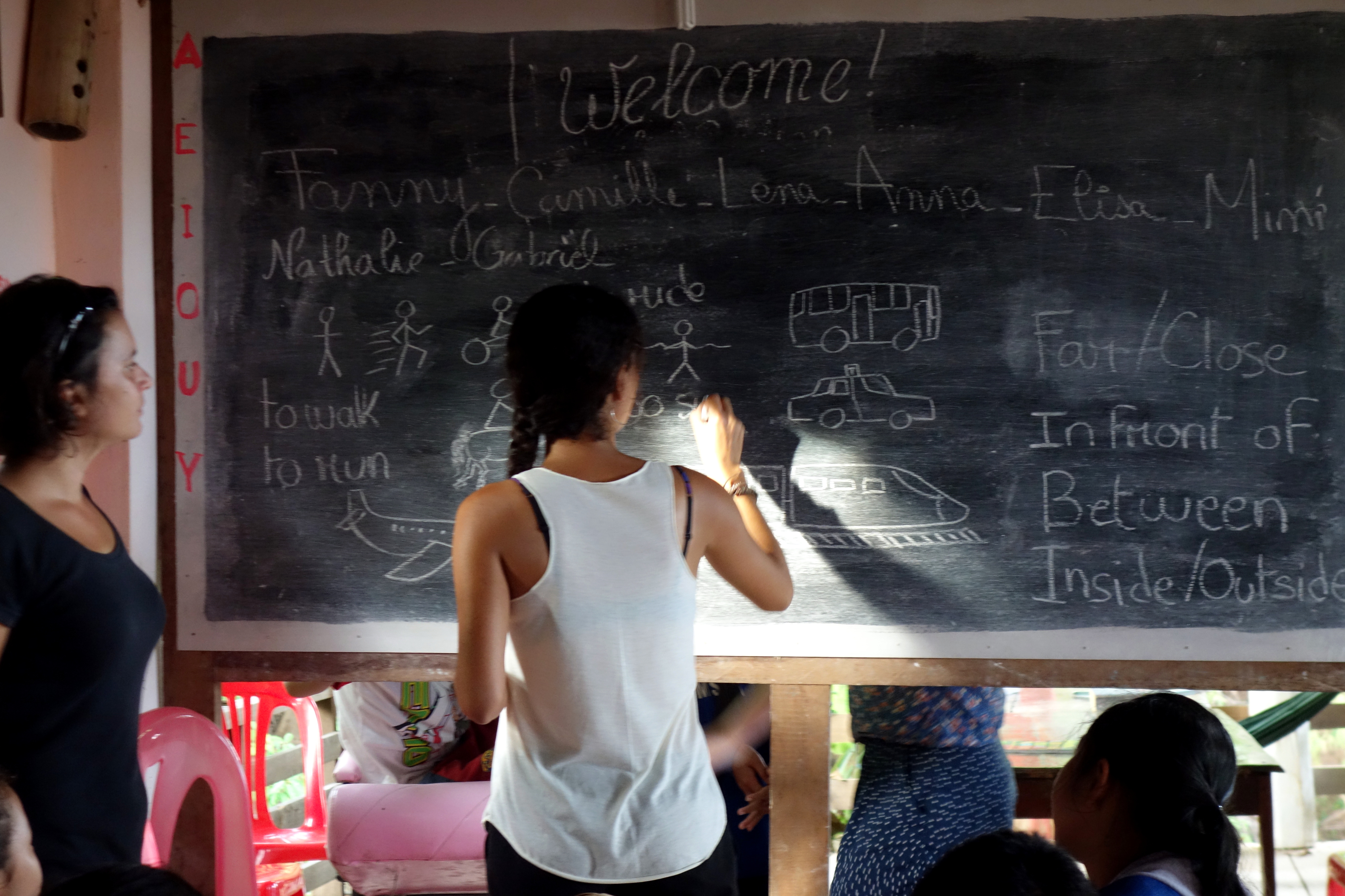 Les cours se sont globalement très bien déroulés : chaque jour, 2 ou 3 “teachers” prenaient le lead pour la partie en classe entière avec l’annonce du nouveau vocabulaire puis on se divisait en petits groupes de 3/4/5 élèves suivant les jours pour les activités. A la fin d’une séance, les enfants nous ont réclamés une dictée ! On ne s’y attendait pas !!