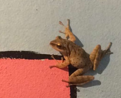 Après, on se repose dans le hamac en attendant que la douche se libère. Une seule douche (froide) pour tout le monde et on ne se douche pas seul, une petite grenouille est toujours là à nous observer …