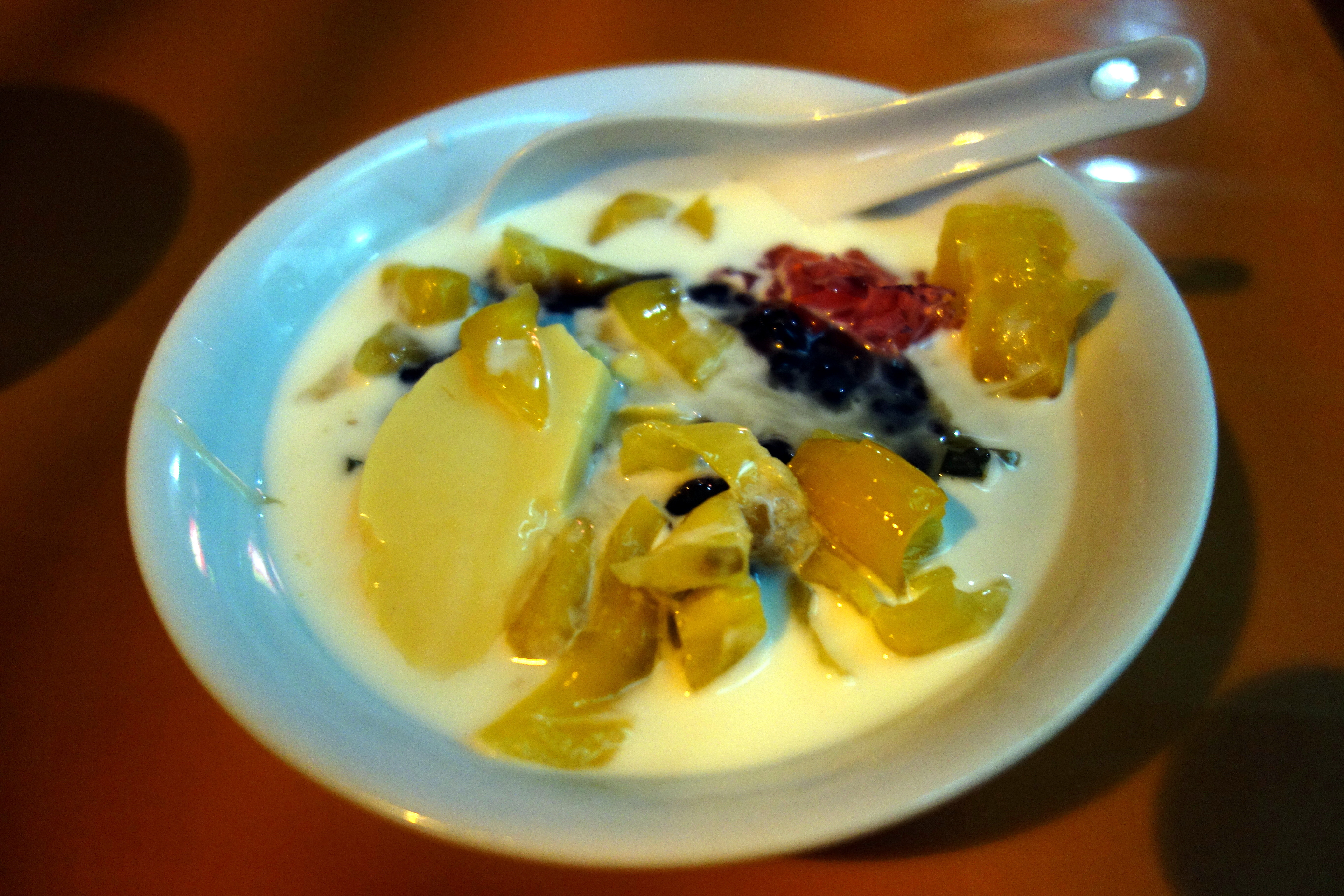 Le soir je vais manger un Chè (encore!), sauf que là ce n’est pas sur le trottoir mais dans un vrai restaurant. J’ai un bol, du yaourt, BEAUCOUP plus de choses dedans ! Bon c’est aussi le double du prix mais je me régale. A la terrasse du restaurant il y a 3 adolescentes encore vêtues de leur uniforme d’école. Je vois qu’elles me regardent en rigolant je leur fait un sourire et elles engagent la conversation. Elles se sont mises en tête de me faire goûter tout ce qu’elles ont commandé !! Donc après mon chè, petit dessert sucré, je me retrouve à goûter des boulettes de viande pimentée, une salade de papaye, un jus de fruit … elles sont adorables !