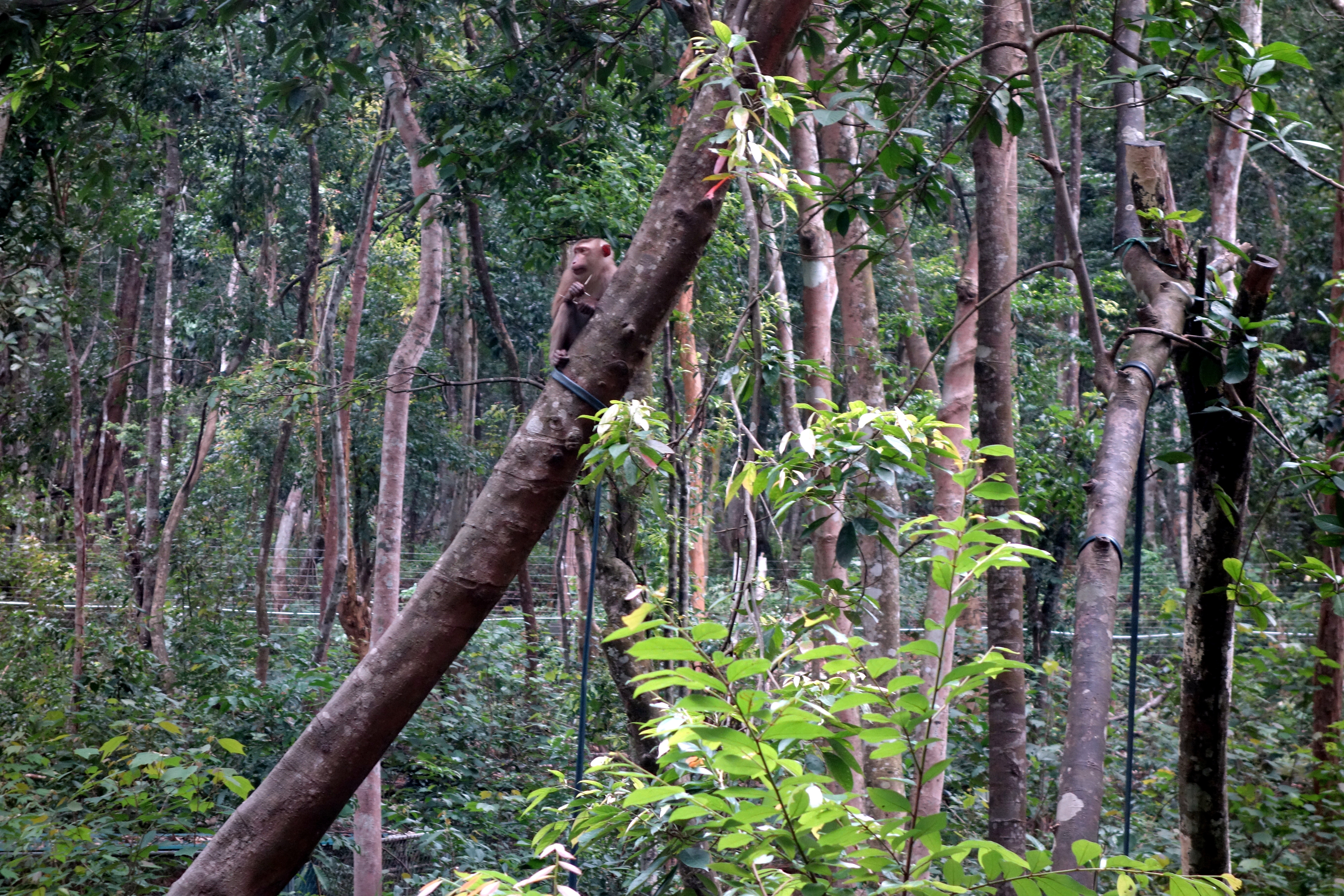 Il parle 3 mots d’anglais “close” “no” “water” hmm hmm, je comprends … si le chemin avait été dangereux je n’aurai honnêtement pas insisté mais là je ne risque rien ! Je fais une tête toute triste, tente de le supplier, je lui dis juste “2 minutes” que je veux “juste regarder” j’utilise tout mon vietnamien pour le convaincre. Ça marche pas… Et là, chose que je n’ai jamais faite et que je n’aurai jamais cru faire : je lui propose de l’argent ! Je lui dis en vietnamien “combien ? Je vous donne de l’argent et je peux y aller” il m’a regardé choqué et m’a dit “no no free, ok” et il m’a fait signe d’y aller ! Du coup il m’a accompagnée jusqu’à la cascade me faisant même la conversation sur le chemin, bon conversation limitée à mes 3 mots de vietnamiens et ses 3 mots d’anglais mais on se comprend. Il m’explique que normalement l’eau est plus basse, on peut traverser la source de la cascade et se mettre au dessus. Ça a l’air sublime mais là avec le courant c’est impossible. Il patiente gentiment et on finit par rentrer, il me propose de me montrer les animaux, on se dirige vers la réserve et il appelle les singes qui viennent me voir ! C’est génial !! J’ai bien fait de pleurer un peu haha. En ressortant, je croise le propriétaire qui parle mieux anglais, il me propose de revenir quand je veux, juste que j’appelle avant pour m’assurer que les conditions soient meilleures. Ils sont tous adorables dans ce lieu et me saluent chaleureusement, alors qu’avouons le, j’ai sacrément fait ma chieuse !