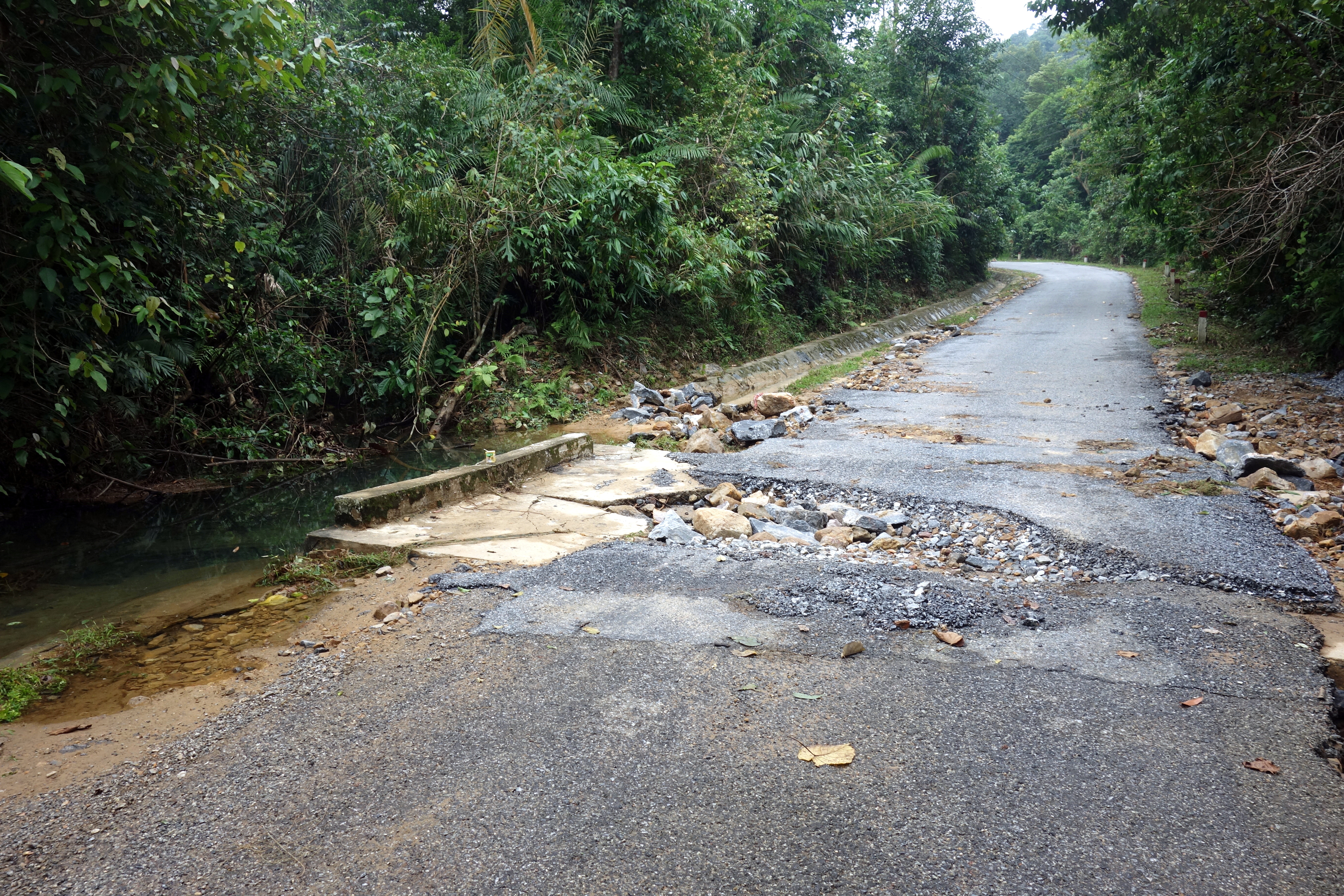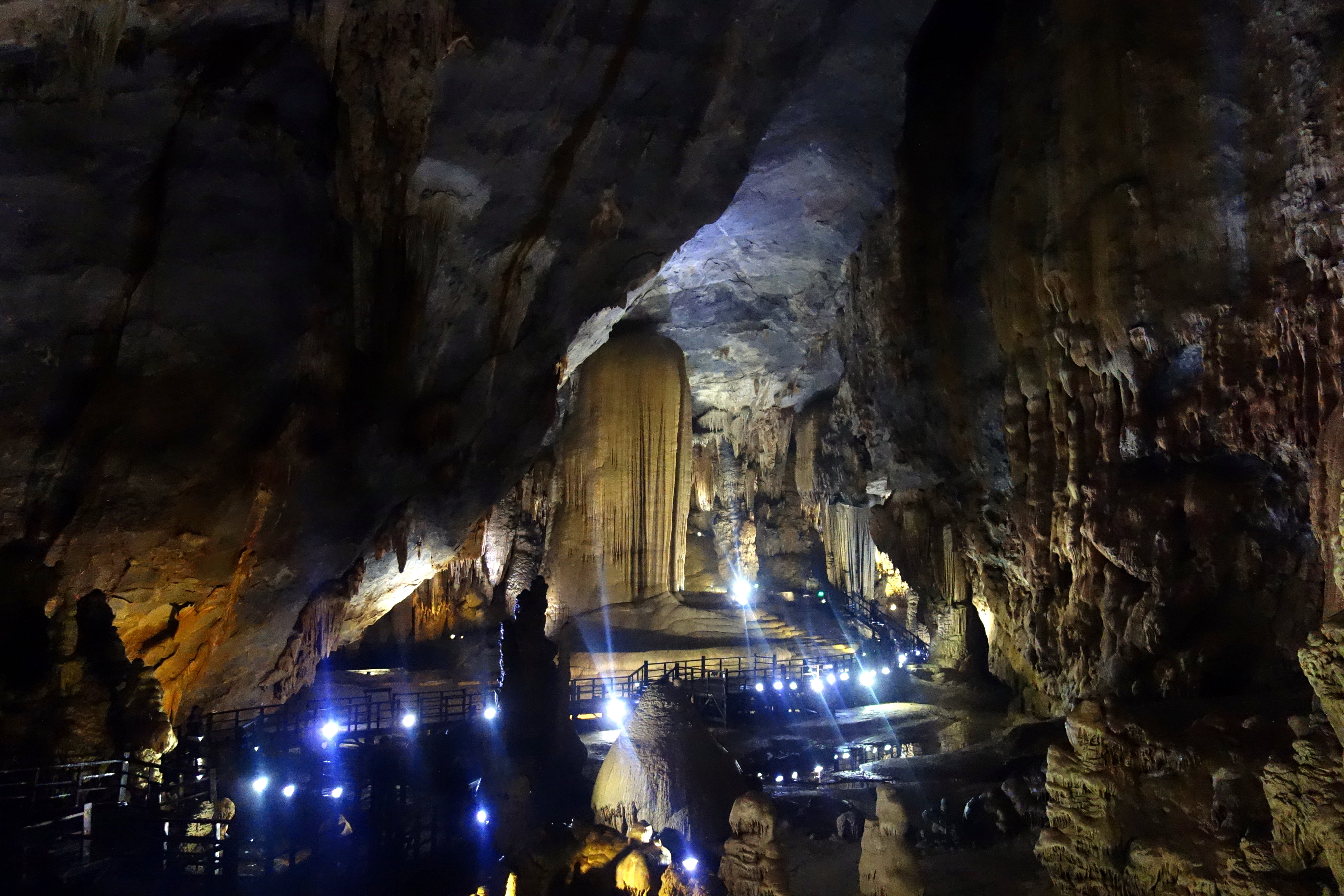 Je suis les panneaux jusqu’à Phong Nha et finit par m’arrêter a un restaurant pour leur demander un plan. La serveuse est très gentille elle me dessine la carte me disant quand même que ce n’est pas “safe” que je dois faire bien attention et revenir vite. Je suis ses indications et ne rencontre aucun soucis, la route est parfaitement dégagée, quelques pierres sur la route par endroit liées aux éboulement provoqués par la pluie mais le ciel est dégagé et je croise d’autres touristes sur la route (trouillardes les Viet je disais ?).