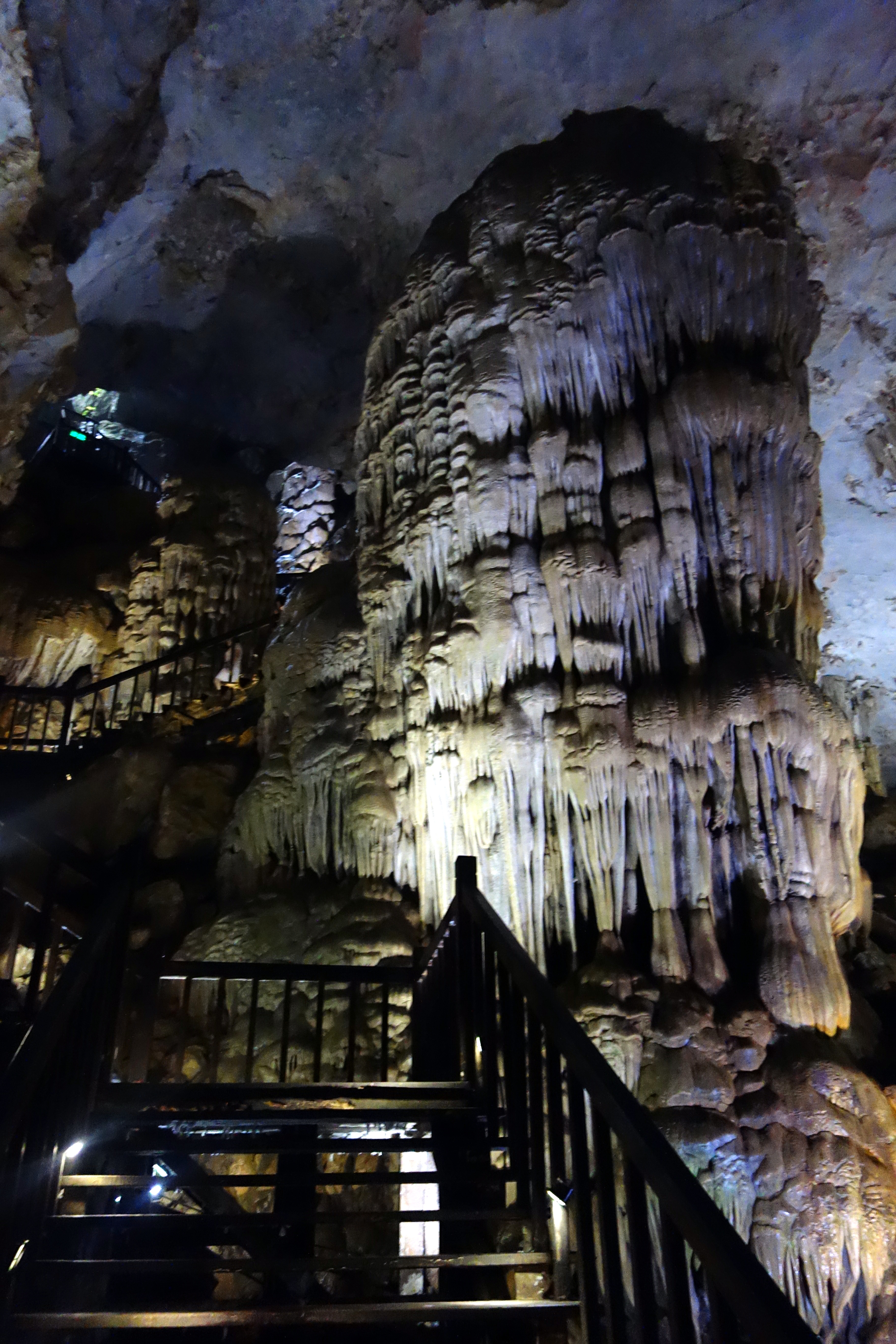 Je me dirige ensuite vers la Paradise Cave, c’est la seule qui est ouverte après les inondations. La plus longue grotte de la région : 31 km de long ! 200m au dessus du niveau de la mer. 10€ l’entrée ça fait mal. Ha mais en plus on paye 10€ pour marcher 1,5 km et grimper jusqu’à l’entrée bon ok… c’est parti ! Je me crois un peu à Rocamadour (la bonne lotoise!) en montant jusqu’à la grotte, le chemin serpente tel un chemin de croix. Arrivée en haut je suis claquée (déjà!) et à l’intérieur de la grotte on peut encore avancer sur 1,5km à l’intérieur : tout en escalier !!
