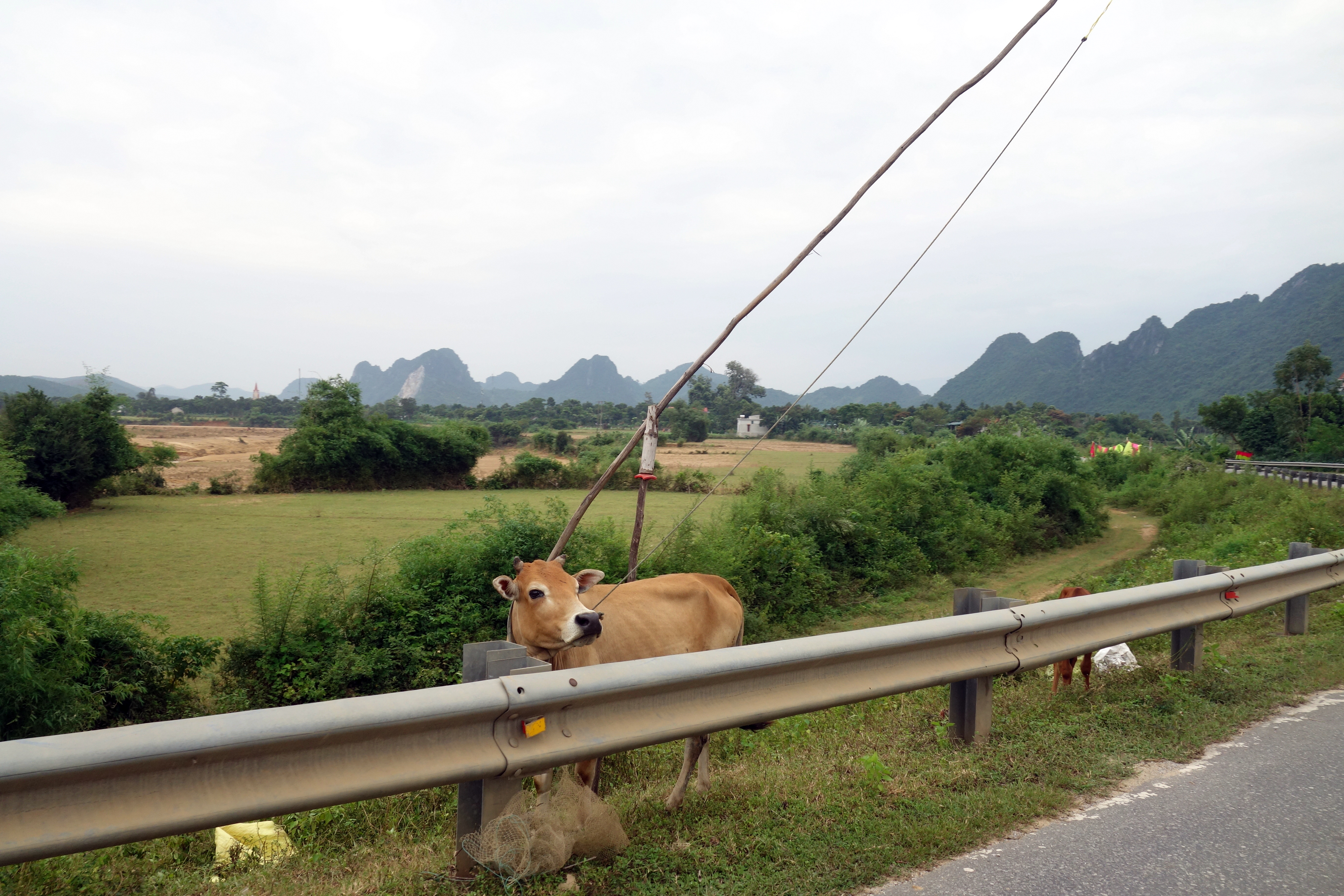 Le lendemain, je loue un scooter : 150 000 VND la journée, ça fait mal sachant que je payais 50 000 par jour à Hué (et le scoot était vachement mieux en plus!) puis je me mets en route. Je suis agréablement surprise, je ne me retrouve pas coincée dans les inondations, seules les rizières sont sous l’eau mais les routes et les villages sont aux sec. Cependant, on voit la trace des coulées de boue, les arbres arrachés, les grillages couchés… je culpabilise de venir faire du tourisme alors que les habitants sont en difficulté…