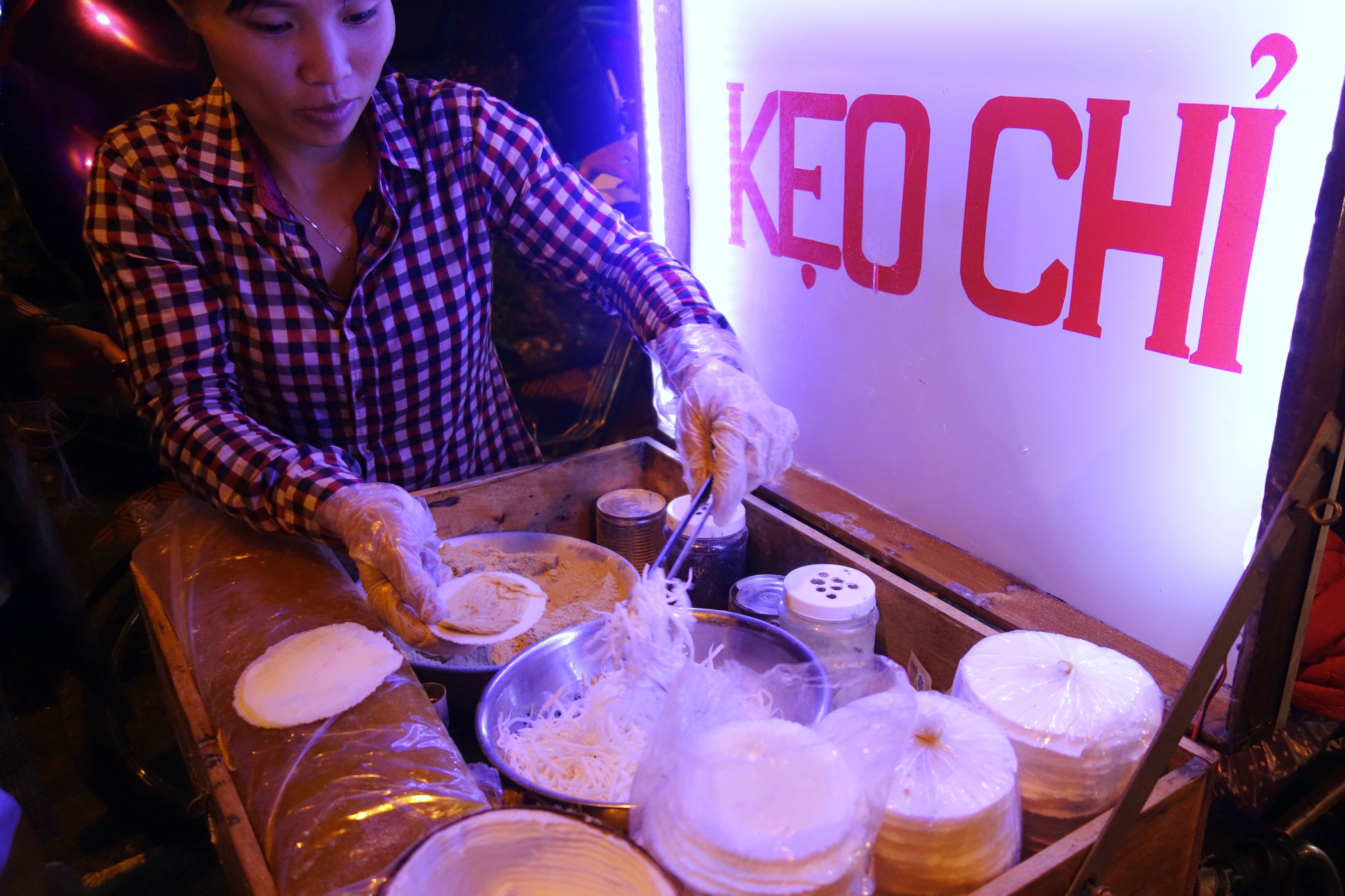 Le lendemain matin, la mère de Giang ouvre son restaurant de street food, sur le trottoir devant la maison, elle n’est pas en vacances pendant le Tết et a même plus de clients car moins de concurrence … réveil à 6 heures pour l’aider à faire le service. Je me rends utile du mieux que je peux. Les clients sont surpris de me voir servir ou débarrasser et encore plus quand je leur réponds “de rien” ou que j’arrive à comprendre des messes basses et que je réponds “je suis française !” Je vois que je les bluffe ! Bon, c’est tout ce que je comprends mais quand même ! 😉