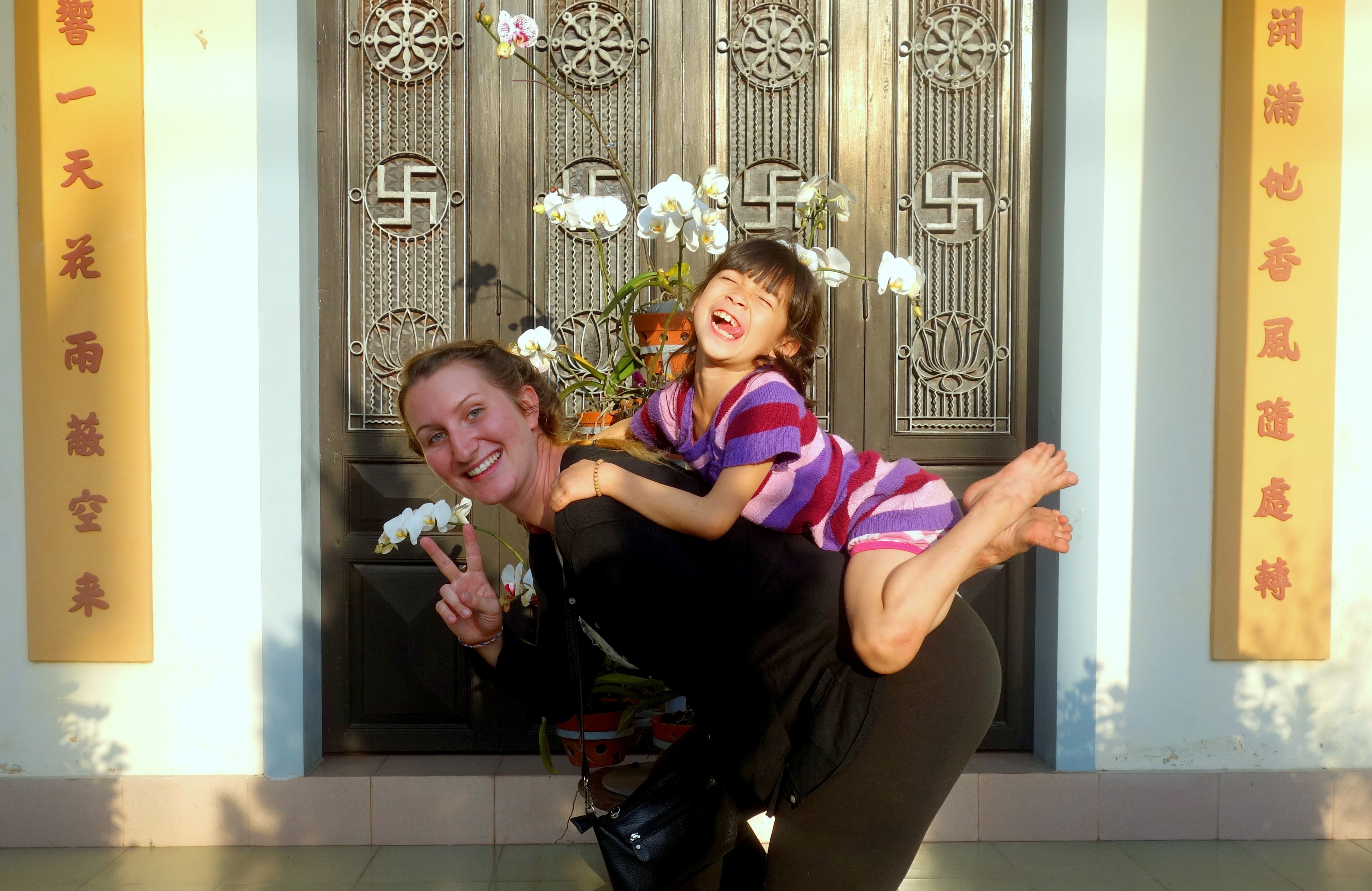 Pendant la période du Tet, les vietnamiens raffolent des photos. Ils se rendent donc au parc ou à la pagode en beaux habits pour se faire prendre en photo. Après le repas, je me rends avec les enfants dans la pagode en face de la maison pour prendre des photos. La séance shooting se passe à merveilles, les enfants sont adorables…