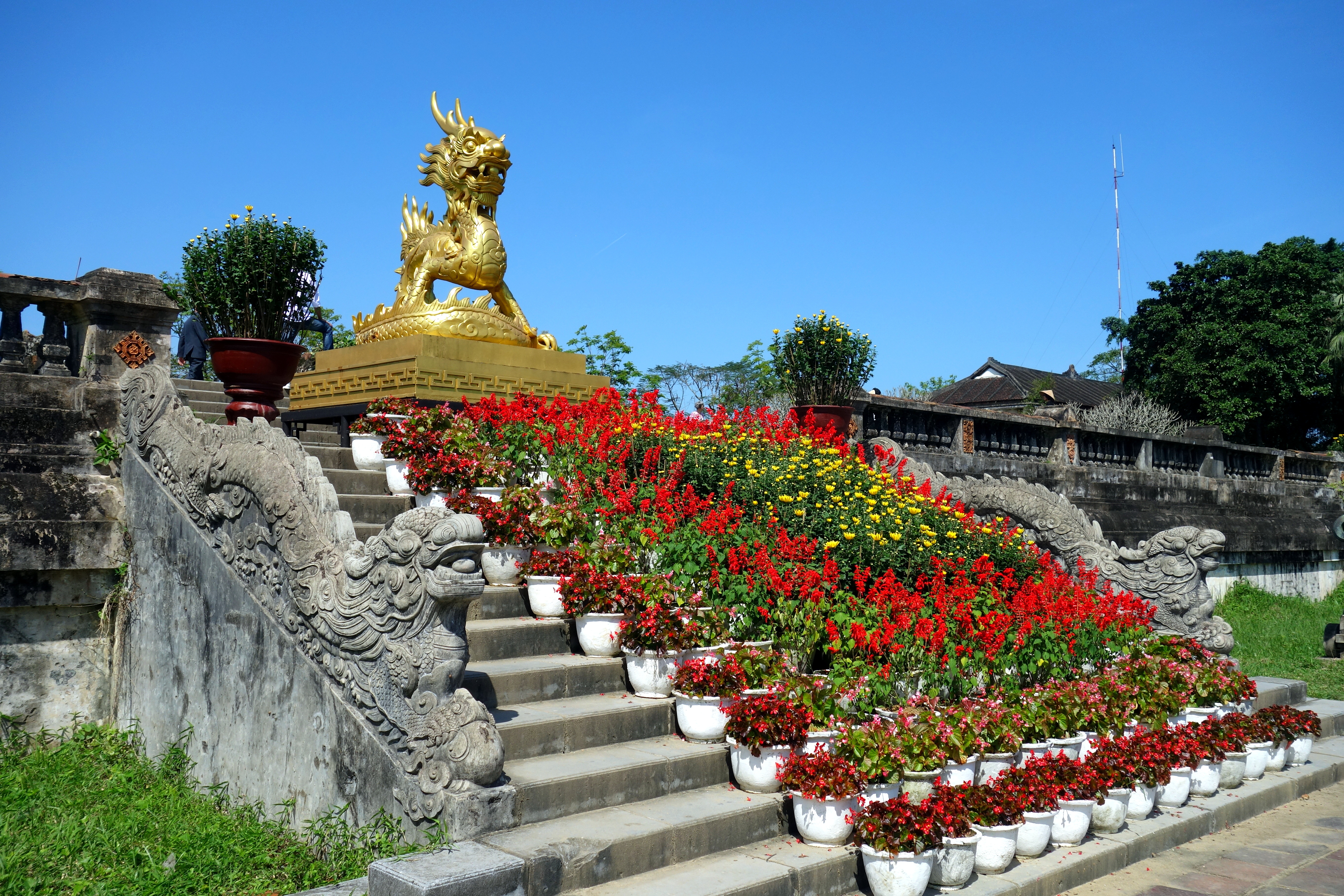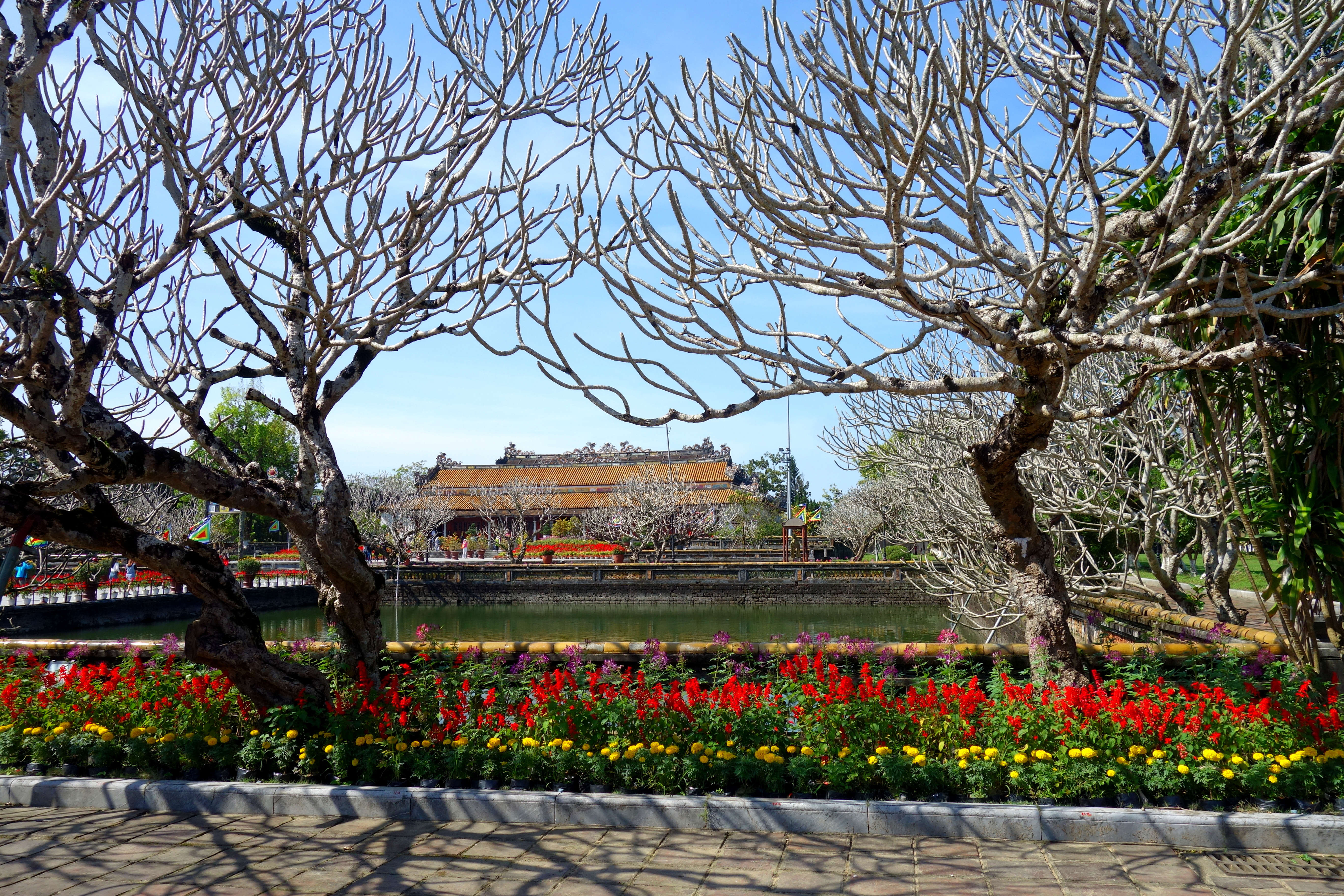 Le lendemain, premier jour de l’année, je suis invitée l’après-midi chez Tam et sa famille. Je choisis de visiter la cité impériale de Hué le matin car je n’y suis pas allée depuis mon retour en Asie. La visite est gratuite ce jour-là pour les Vietnamiens qui viennent prendre des photos dans le parc. Il fait très beau, c’est idéal pour visiter ! D’ailleurs, en parlant du temps, il pleuvait depuis une semaine et la légende veut qu’il fasse beau à partir du Têt car c’est également le début du printemps, ça n’a pas manqué !
