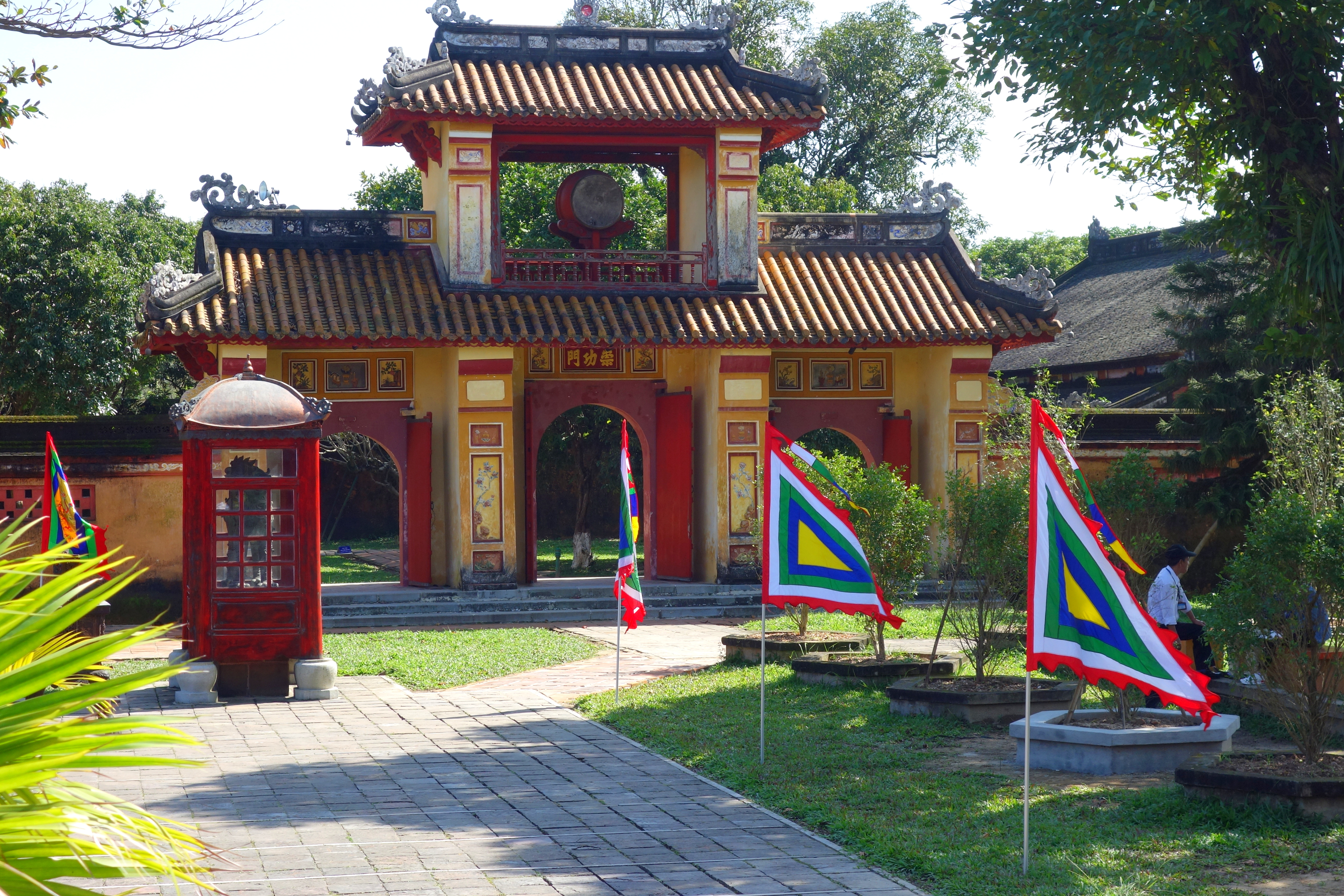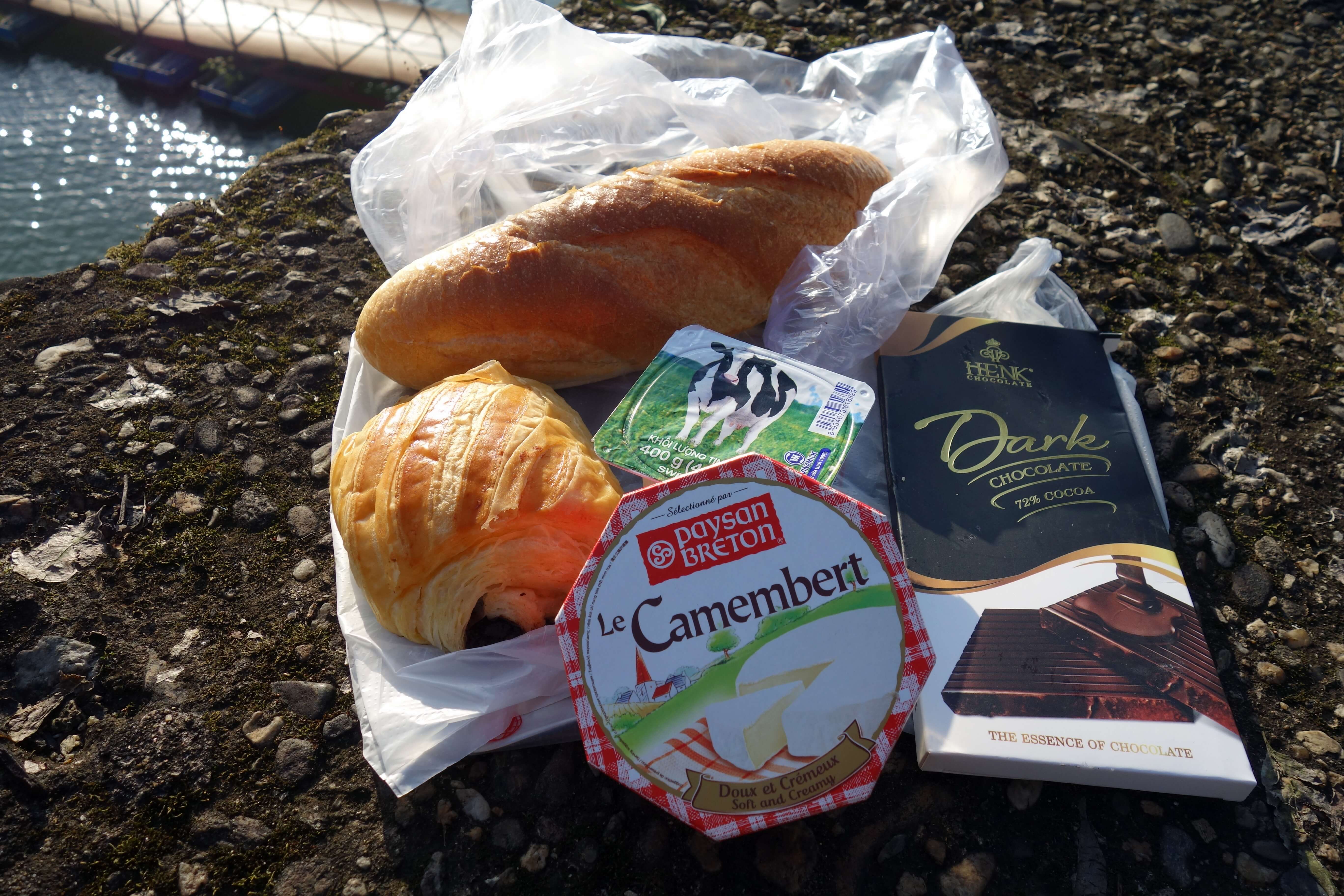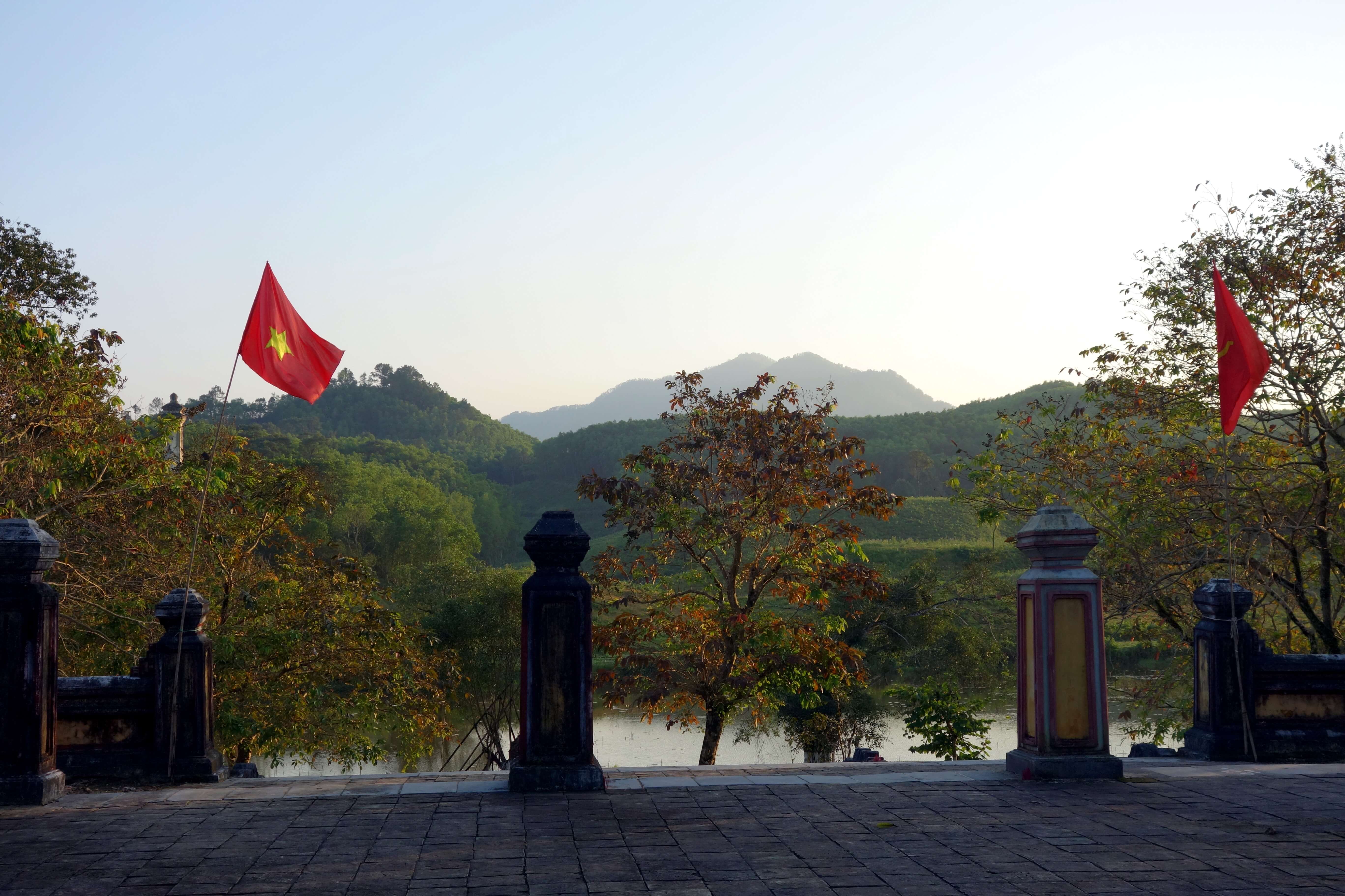 Enfin, une de mes dernières visites sur Hué qui me tenait à cœur est la visite du tombeau de Gia Long. J’emmène avec moi du camembert et du chocolat acheté au Big C avec du bon pain de la Boulangerie Française de Hué. Je vais me régaler !! Je m’arrête sur la route au niveau d’un pont rouge au dessus de la rivière. Un moment de bonheur….