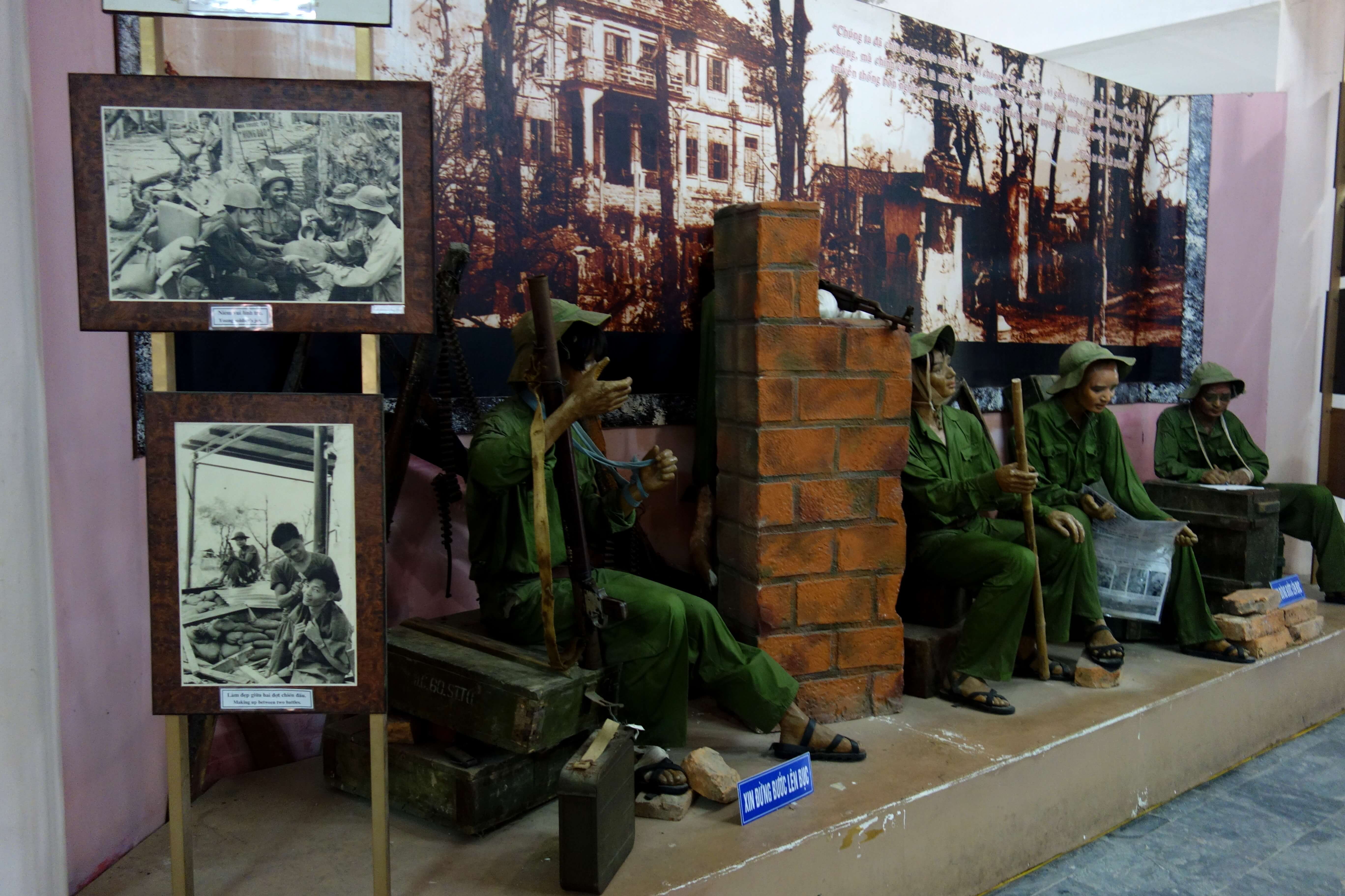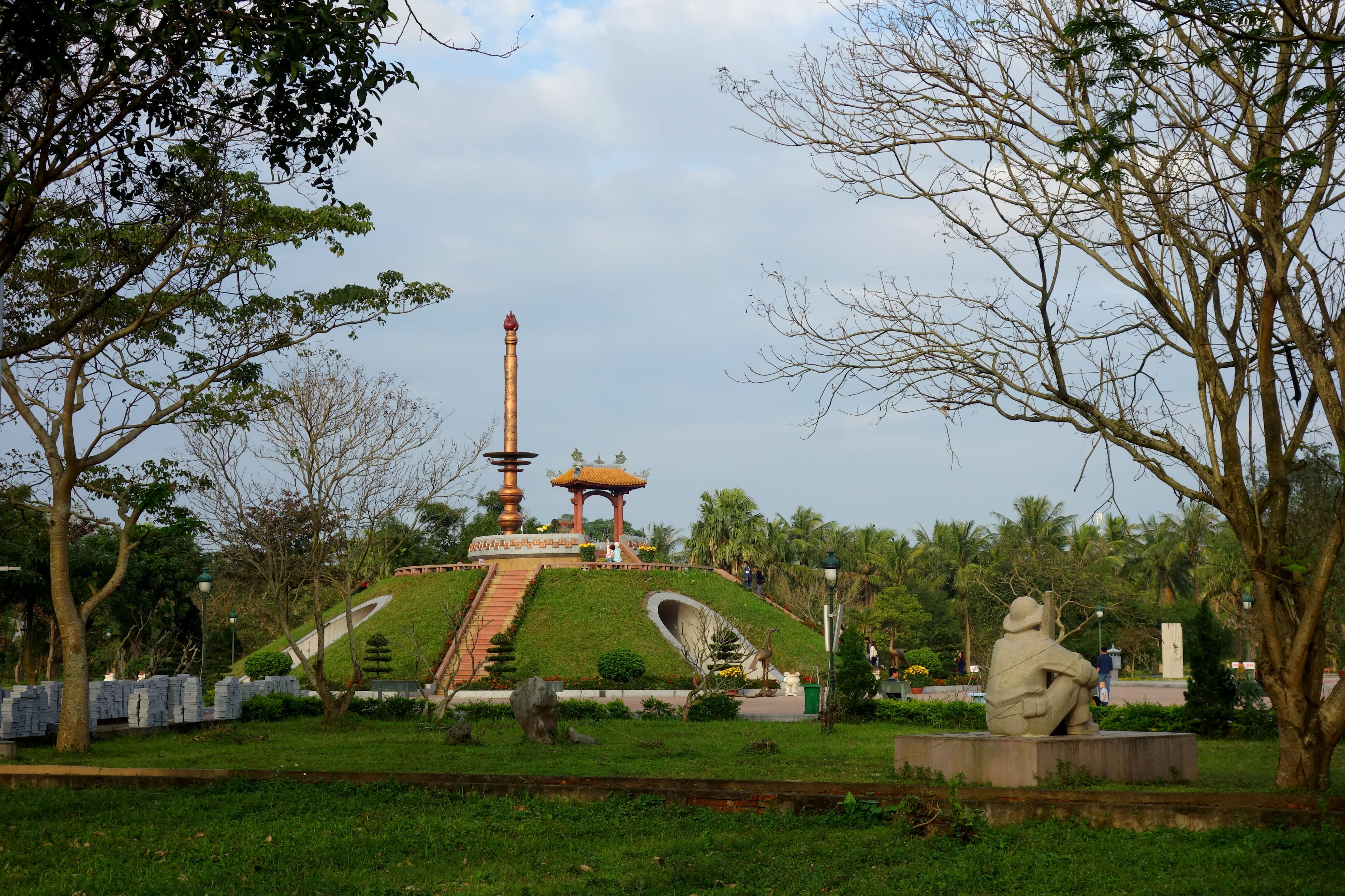 Ensuite, elle m’emmène visiter le monument aux morts de la ville de Quang Tri ainsi que le musée qui l’accompagne. Elle m’explique que ce parc, il y a à peine 50 ans, était un village qui fut totalement détruit ! Les bombardements ont duré 90 jours et ont tué des milliers de personnes.