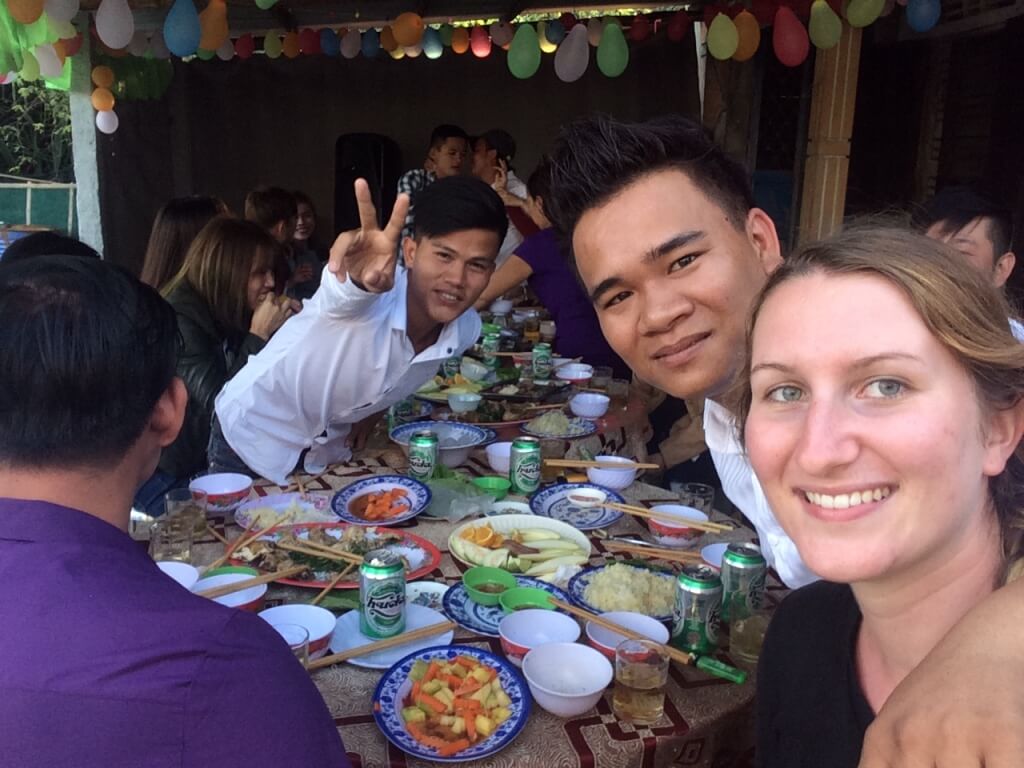 À l’arrivée, Giang vient me chercher et m’amène chez elle où je rencontre ses parents, son frère et ses amis. On boit des bières en mangeant des amandes, il n’y a que Giang pour traduire en anglais alors ça crée de drôles de situations !