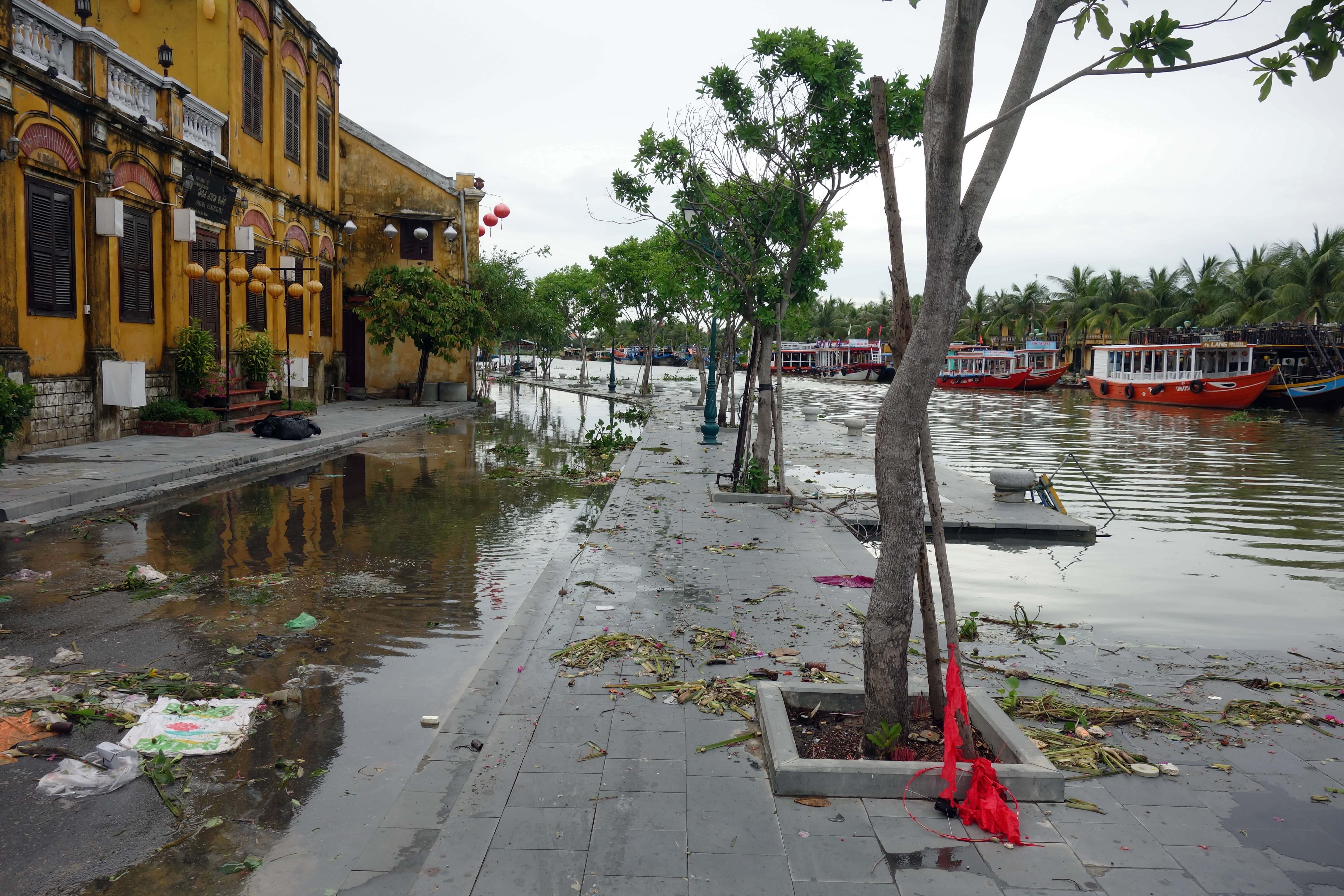 Je finis par me retrouver seule. Il est 6h30. Rien n’est ouvert. C’est là qu’on reconnaît la ville pour touristes, quand tout le Vietnam se réveille à 5h du matin, Hoi An dort jusqu’à 8h. Je me promène et regarde les dégâts faits par la montée des eaux suite au gros orage de la veille.